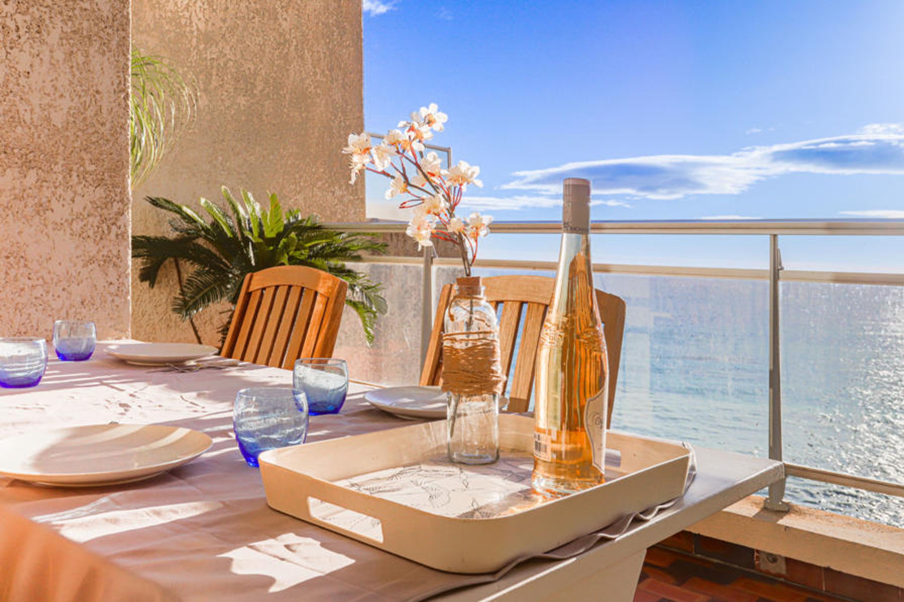3-room apartment 75 m2 on 2nd floor, south facing position. Simple and practical furnishings: living/dining room with satellite TV, flat screen, video and DVD. Exit to the terrace. 1 room with 1 french bed (160 cm), shower/WC. Exit to the terrace. 1 room with 2 beds (80 cm), shower/WC. Exit to the terrace. Kitchen (4 hot plates, oven, dishwasher, microwave, freezer, electric coffee machine). Air-conditioning. Terrace 16 m2 partly roofed, south facing position, small terrace 6 m2 partly roofed, south facing position. Terrace furniture, deck chairs. Very beautiful panoramic view of the sea, the resort and the bay. Facilities: washing machine, iron. Internet (WiFi, free). Parking. Please note: smoke alarm. 06104001530GQ