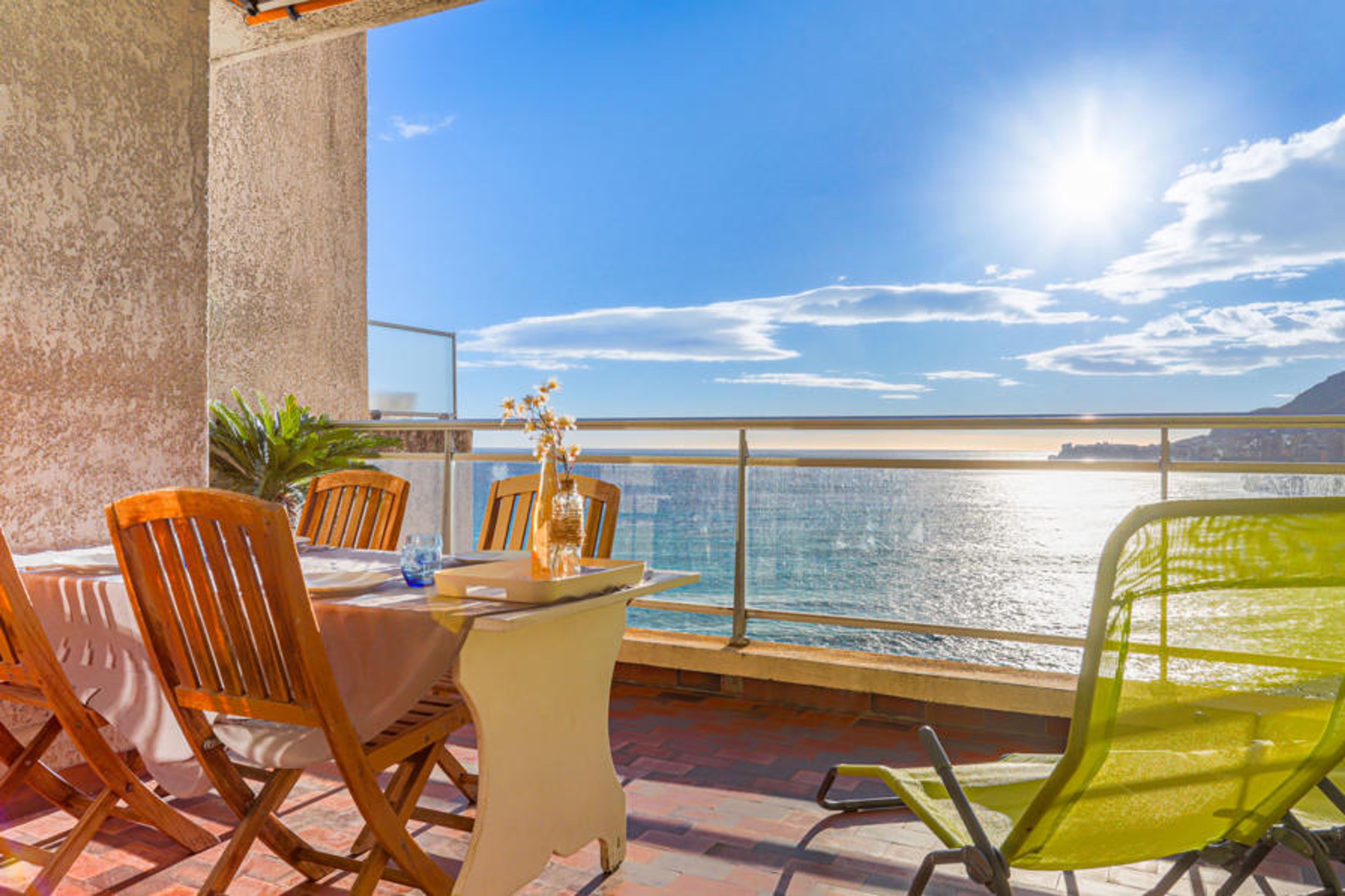 This 2 bedroom apartment with shared pool is located in Menton and sleeps 4 people. It has air conditioning, sea views and a terrace. The apartment is within walking distance of a beach.