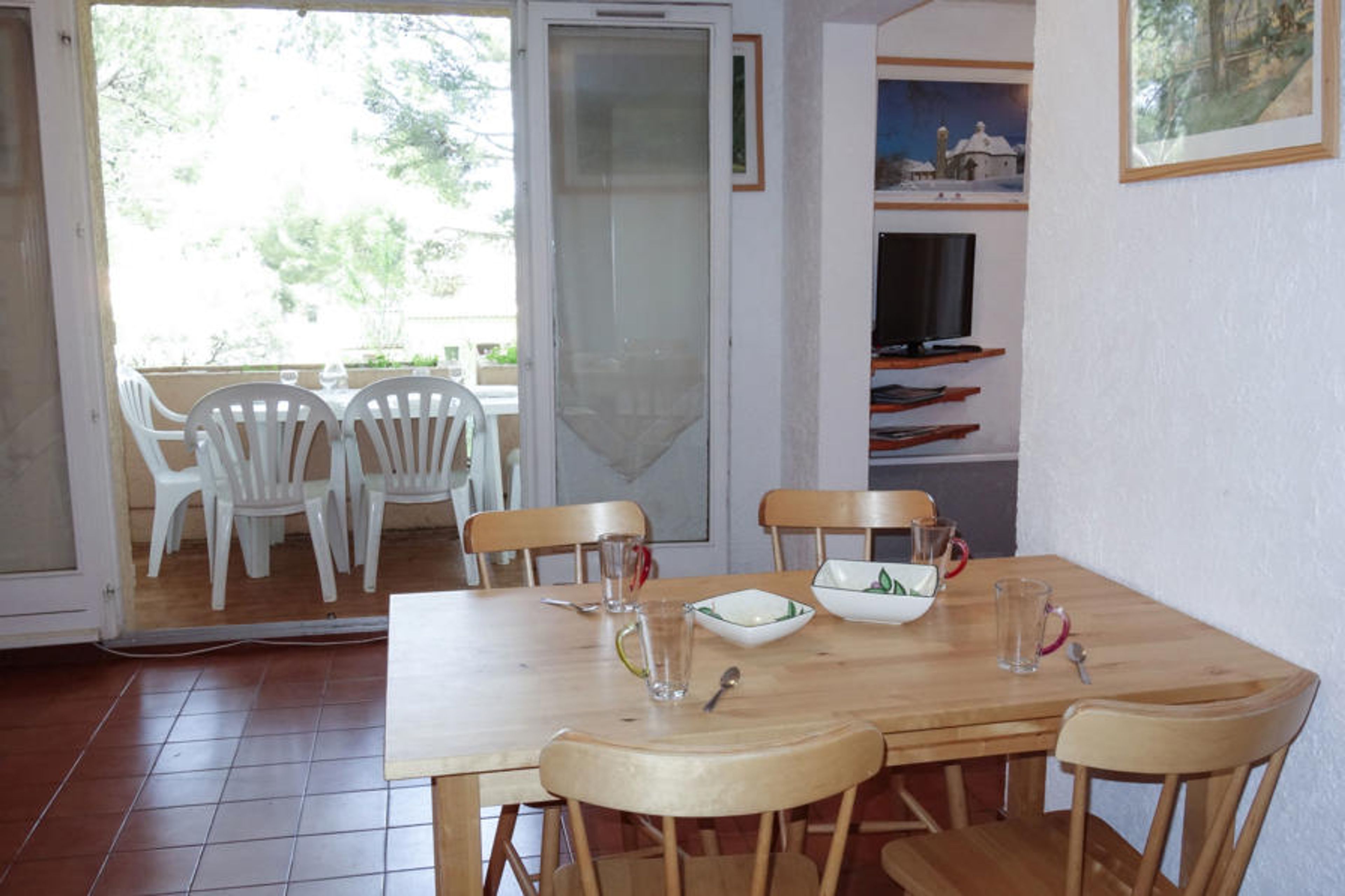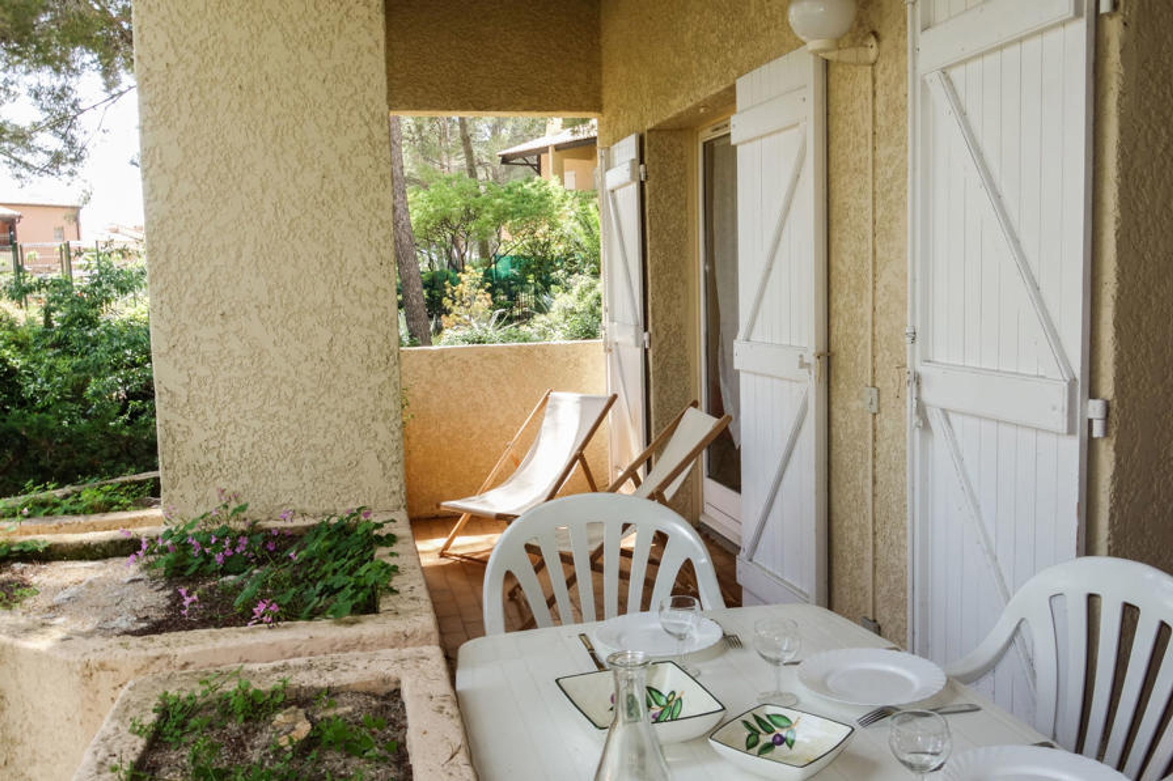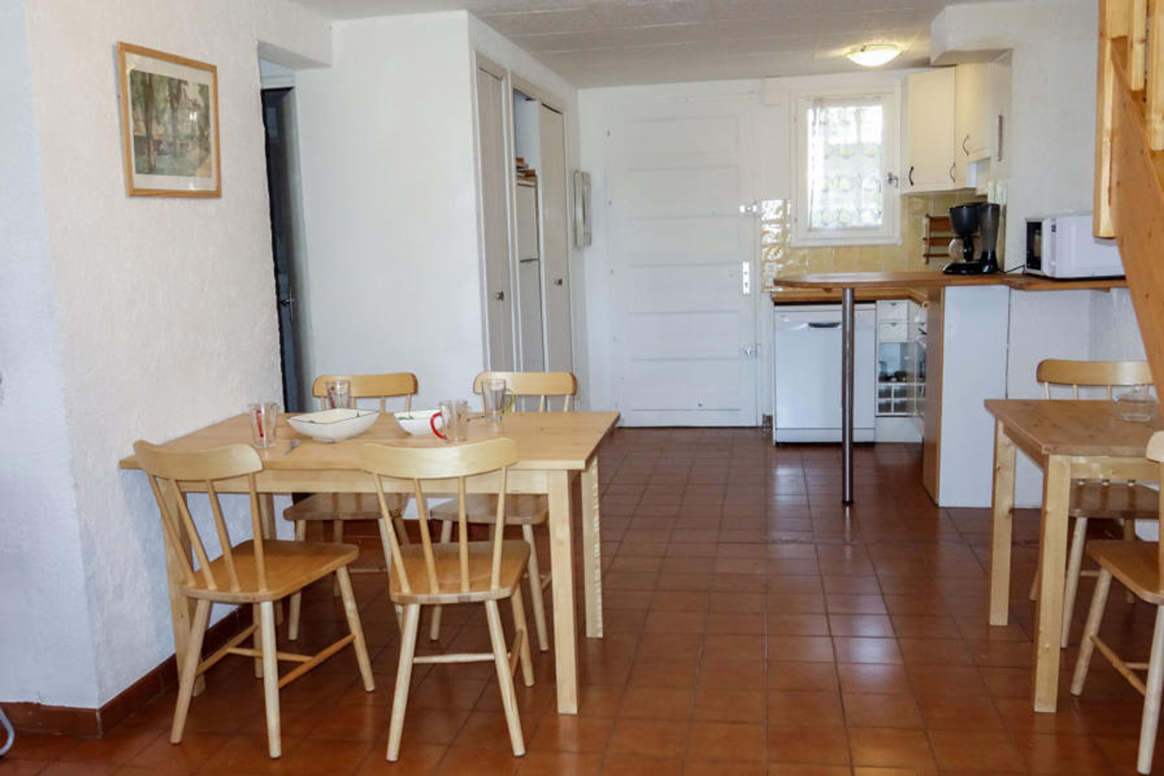 3-room apartment 46 m2 on 1st floor. Beautiful furnishings: living/dining room with 1 pull-out bed (2 pers. 2 x 80 cm, length 190 cm), TV (flat screen). Exit to the terrace. 1 room with 2 beds (80 cm, length 190 cm). Kitchenette (oven, dishwasher, 4 induction hot plates, toaster, kettle, microwave, freezer, electric coffee machine). Shower, sep. WC. Electric heating. Upper floor: (steep stair) large gallery with sloping ceilings, ceiling height 85 - 190 cm with rooflight with 2 beds (80 cm, length 190 cm). Terrace 10 m2, roofed, south-east facing position. Terrace furniture. View of the garden. Facilities: washing machine, iron. Internet (WiFi, extra). Parking space n 14. Please note: TV only FR. Smoke alarm. Instead of an enclosed bedroom, some sleeping areas are located in an open-plan area (gallery, alcove, etc.). 83009 000001 QR