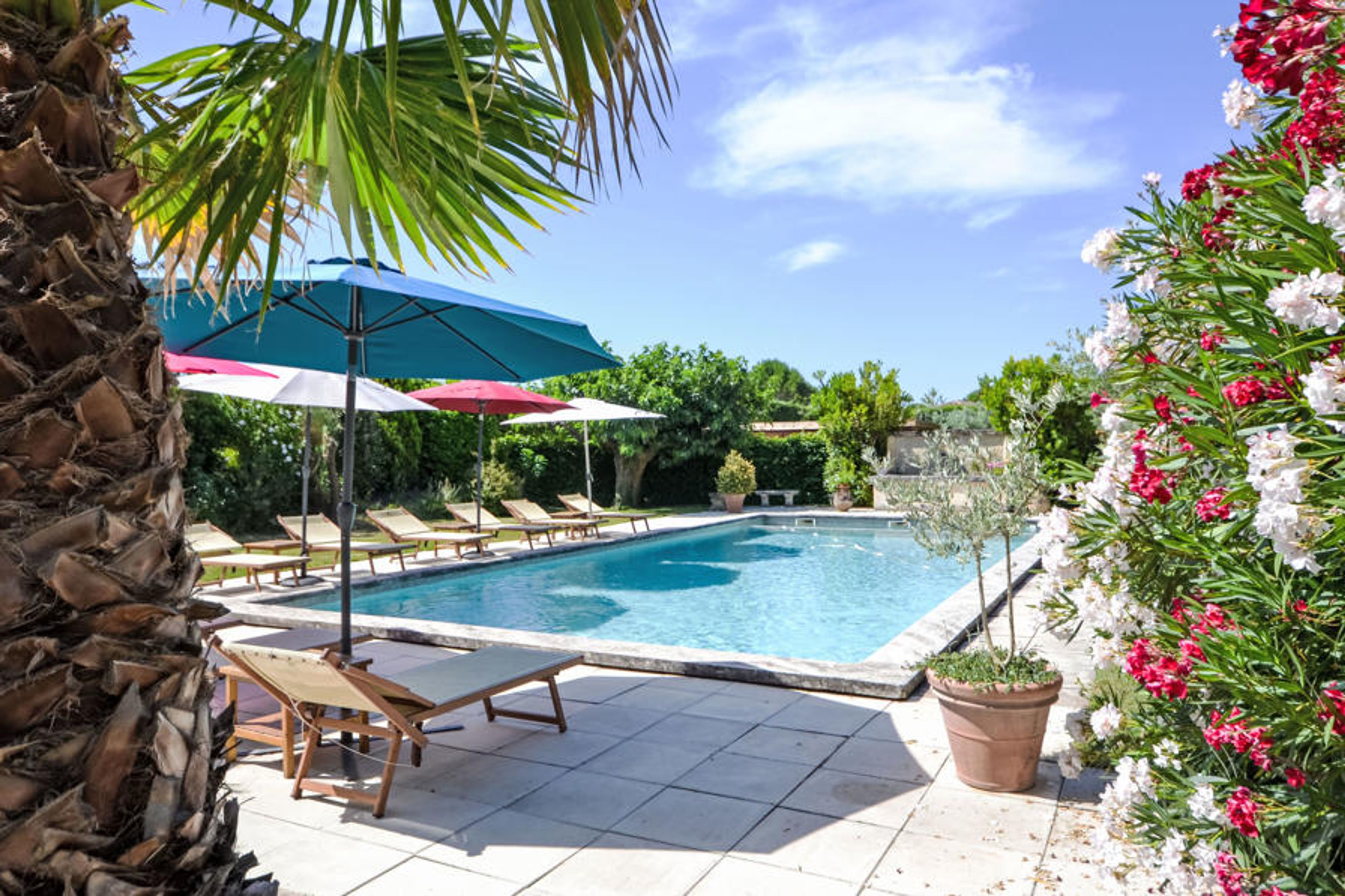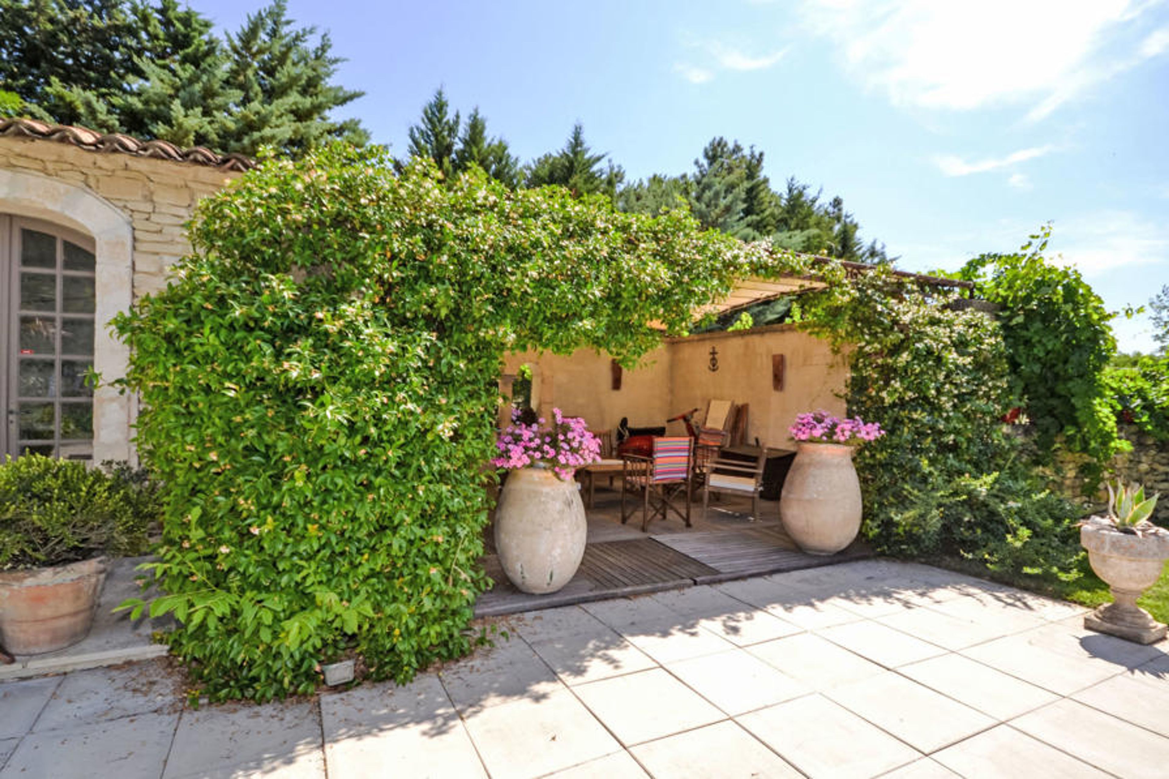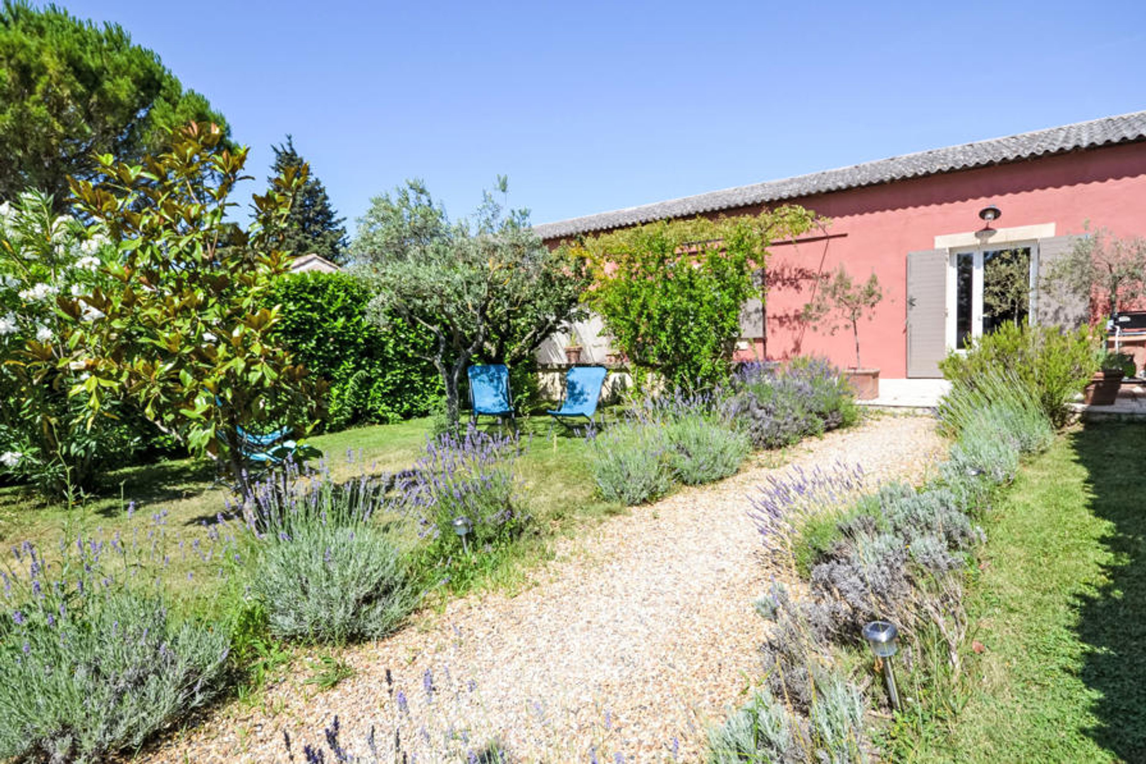 Lagnes 4 km from l'Isle sur la Sorgue: Old manor house consists of 4 terraced houses, one of which is occupied by the caretaker mas "L'Olivier". Outside the resort. For shared use: property 2'000 m2 (fenced), swimming pool fenced (13 x 6 m, depth 150 cm, seasonal availability: 01.Apr. - 30.Oct.). Terrace. In the house: WiFi. Parking on the premises. Shop 4 km, grocery 4 km, supermarket 4 km, restaurant 4 km, bus stop "Pont du canal" 2.2 km. Please note: car recommended. Shared: Pond with a fountain.