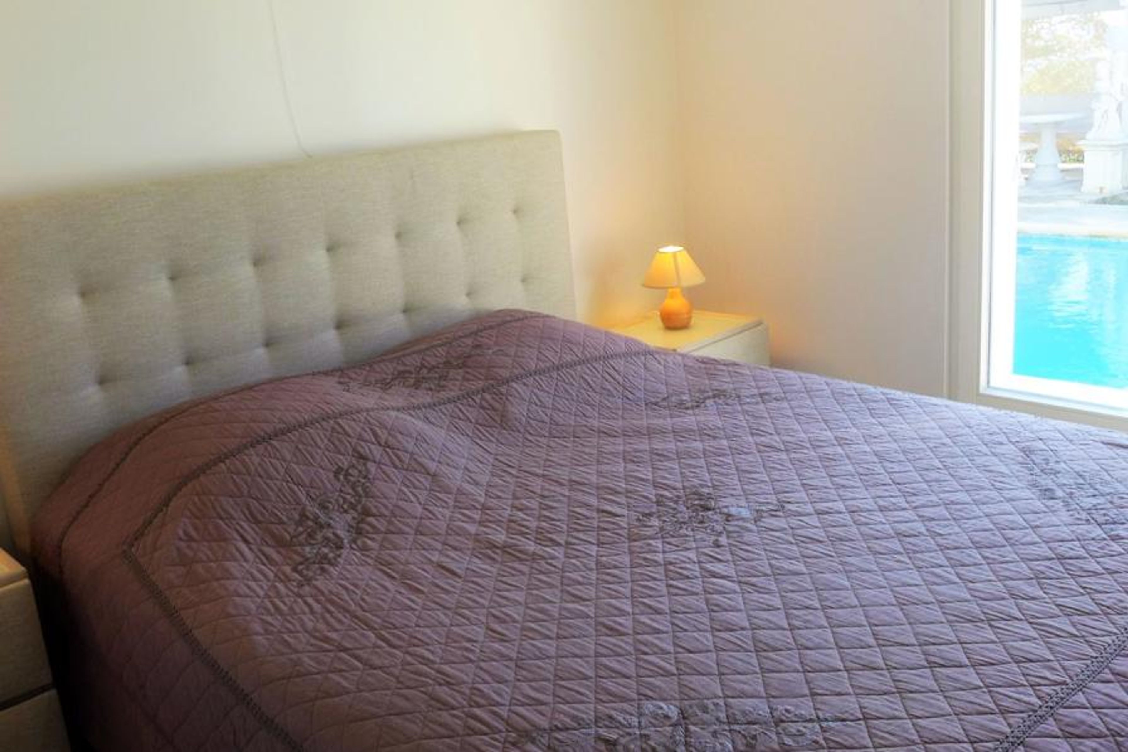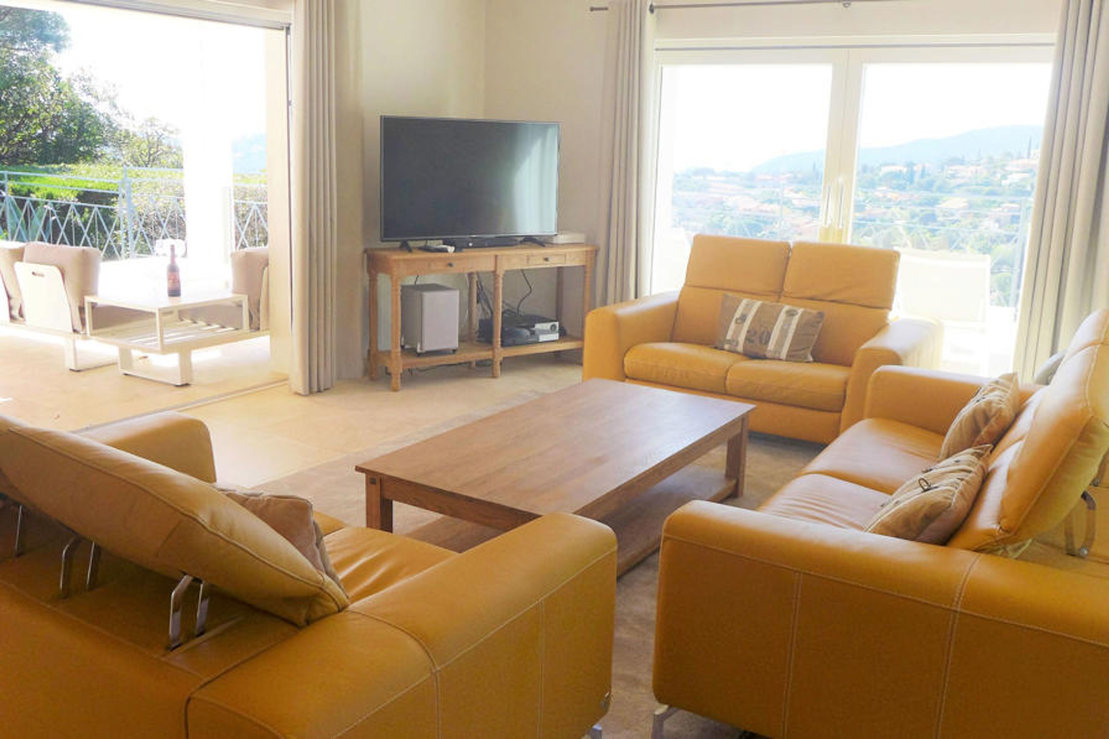 5-room house 140 m2, south facing position. Spacious, fully renovated in 2016, comfortable and modern furnishings: large living/dining room with panoramic window with satellite TV (flat screen), hi-fi system. Exit to the terrace, to the swimming pool. 1 room with 1 double bed (160 cm, length 200 cm), shower/WC and double hand-basin. 1 room with 1 double bed (160 cm, length 200 cm). Exit to the swimming pool. 1 room with 1 double bed (160 cm, length 200 cm), bath/WC and hand-basin. Exit to the swimming pool. 1 room with 1 double bed (160 cm, length 200 cm), hand-basin and shower/WC. Open kitchen (oven, dishwasher, 3 induction hot plates, toaster, kettle, freezer, electric coffee machine, Capsules for coffee machine (Senseo) extra, combination microwave). Exit to the terrace, to the swimming pool. Shower/WC, sep. WC, double hand-basin. Electric heating, air-conditioning. Large terrace 30 m2. Terrace furniture, barbecue, deck chairs (4). Beautiful view of the sea and the valley. Facilities: washing machine, iron, hair dryer. Internet (WiFi, free). Parking (fenced 4 cars). Please note: TV only FR. Smoke alarm.