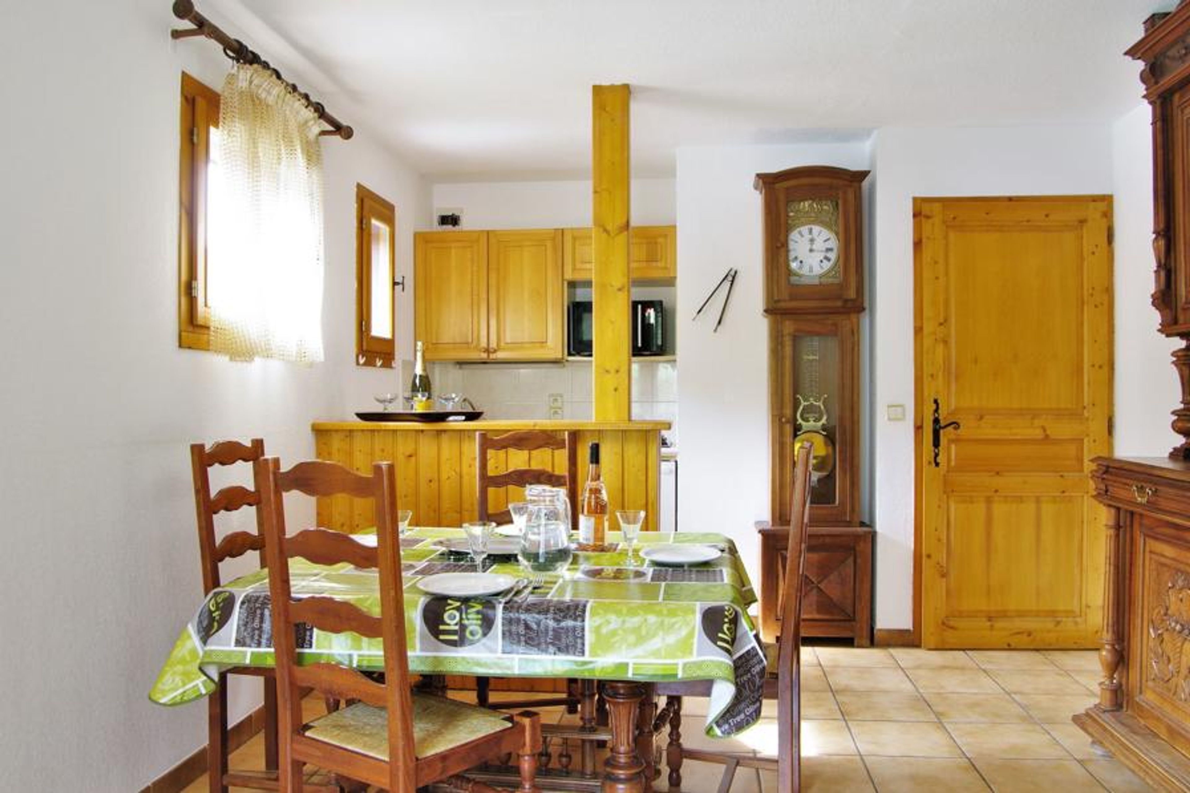 3-room apartment 45 m2 on 1st floor. Living/dining room with TV. 1 room with 1 french bed (140 cm, length 190 cm). 1 room with 2 beds (90 cm, length 190 cm). Kitchenette (mini-oven, dishwasher, 3 induction hot plates, kettle, electric coffee machine). Bathroom, sep. WC. Electric heating. 2 small balconies, south-west facing position. View of the mountains. Facilities: Internet (WiFi, extra). Parking space n 4. Please note: maximum 1 pet/ dog allowed. TV only FR. Smoke alarm. 74143000294ZN