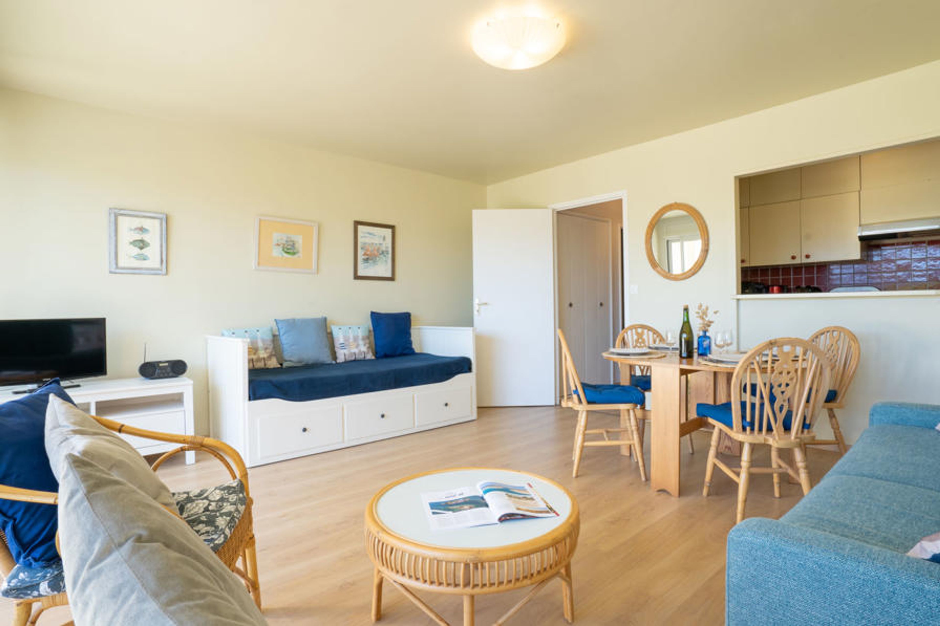 This 1 bedroom apartment is located in Quiberon and sleeps 2 people. It has a terrace, parking and a garden. The apartment is within walking distance of a beach.