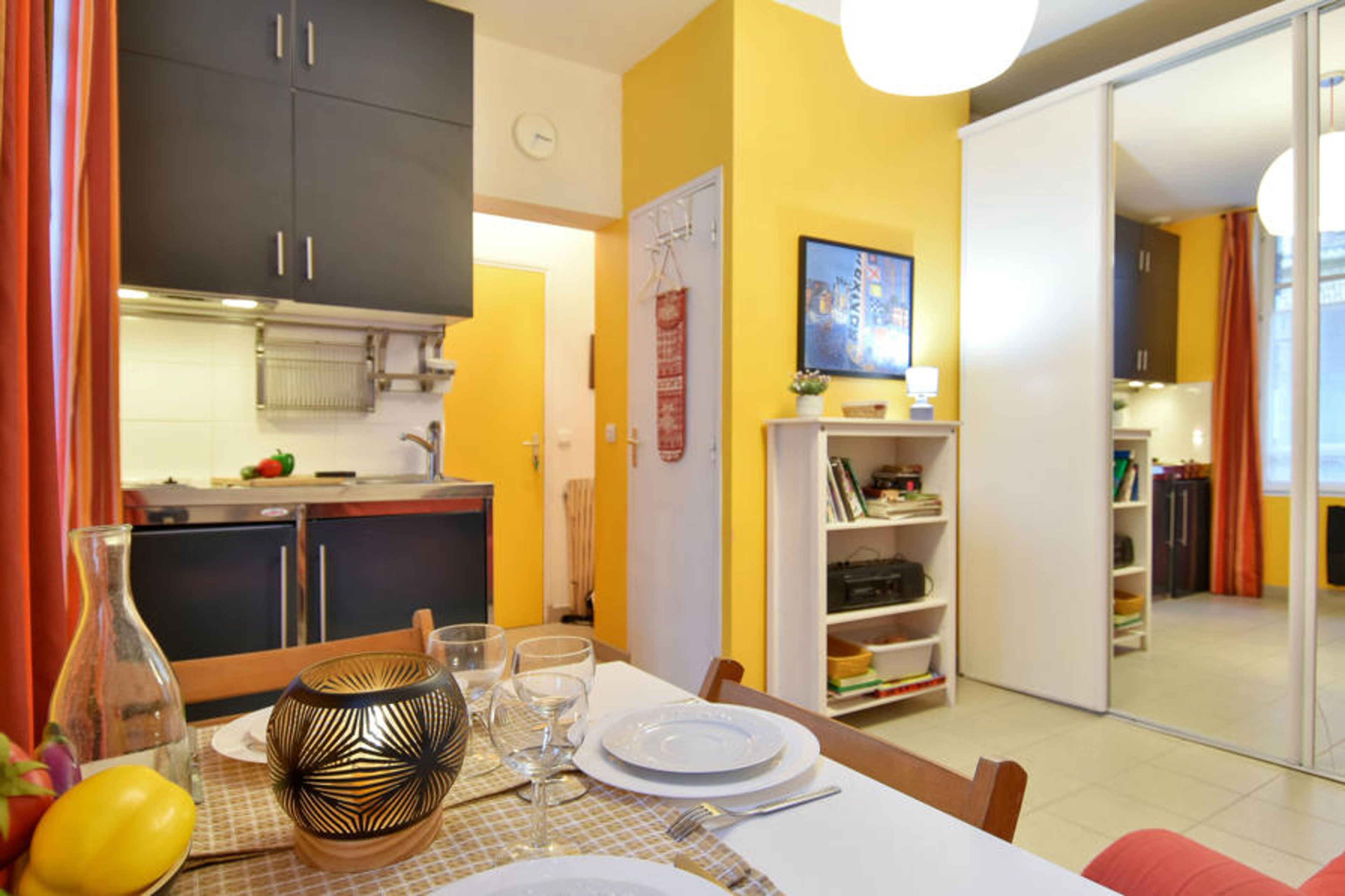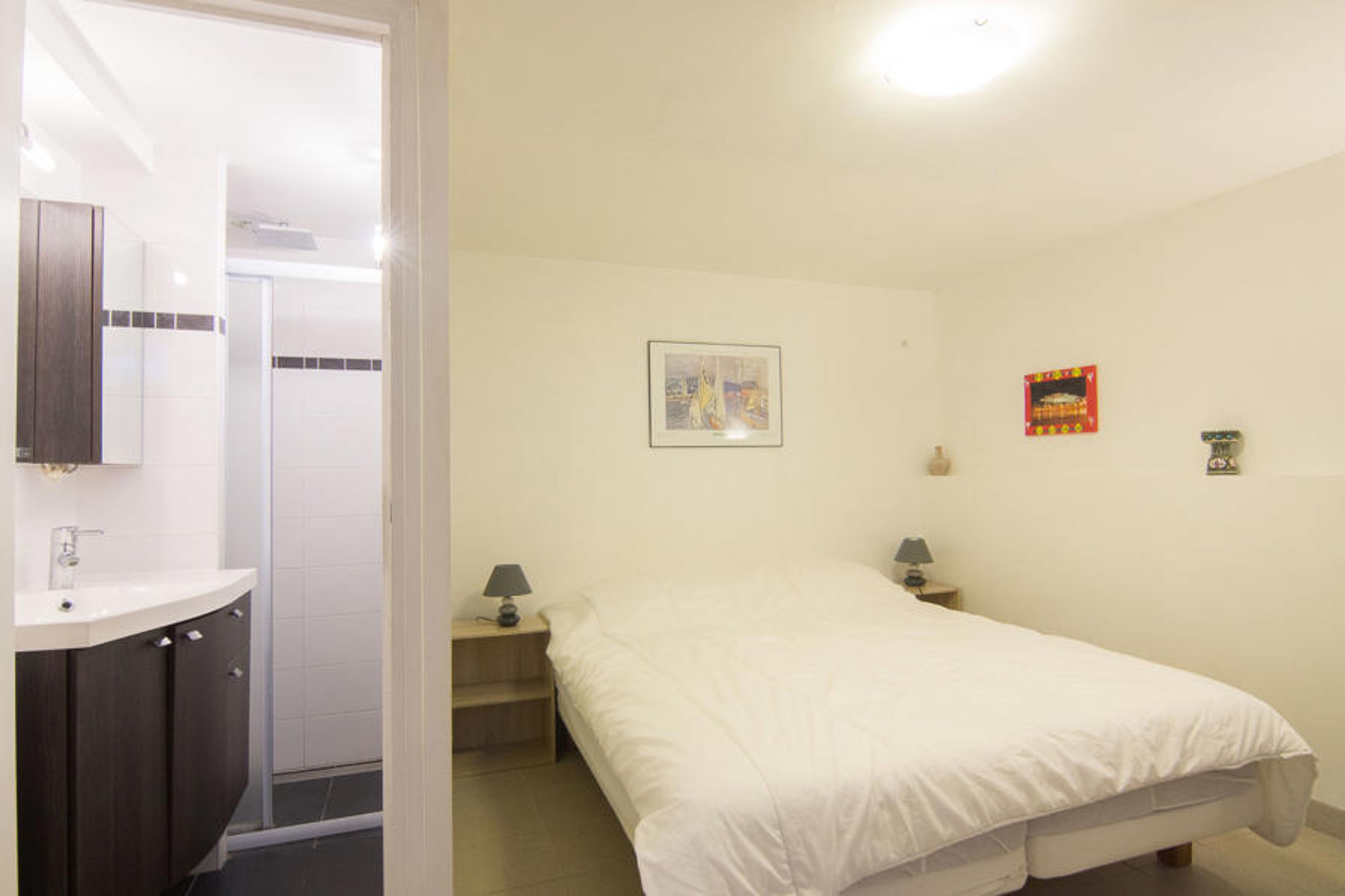 2-room maisonette 30 m2, on the mezzanine. Small living room with TV (flat screen). Kitchenette (2 hot plates, oven, dishwasher, toaster, kettle, microwave, electric coffee machine). Sep. WC. On the lower ground floor: 1 room with 1 sofabed (60 cm, length 180 cm), 1 french bed (2 x 80 cm, length 200 cm). Shower. Electric heating. Facilities: washing machine, dryer. Internet (WiFi, free). Please note: non-smokers only, no parking. Smoke alarm. FR18042661