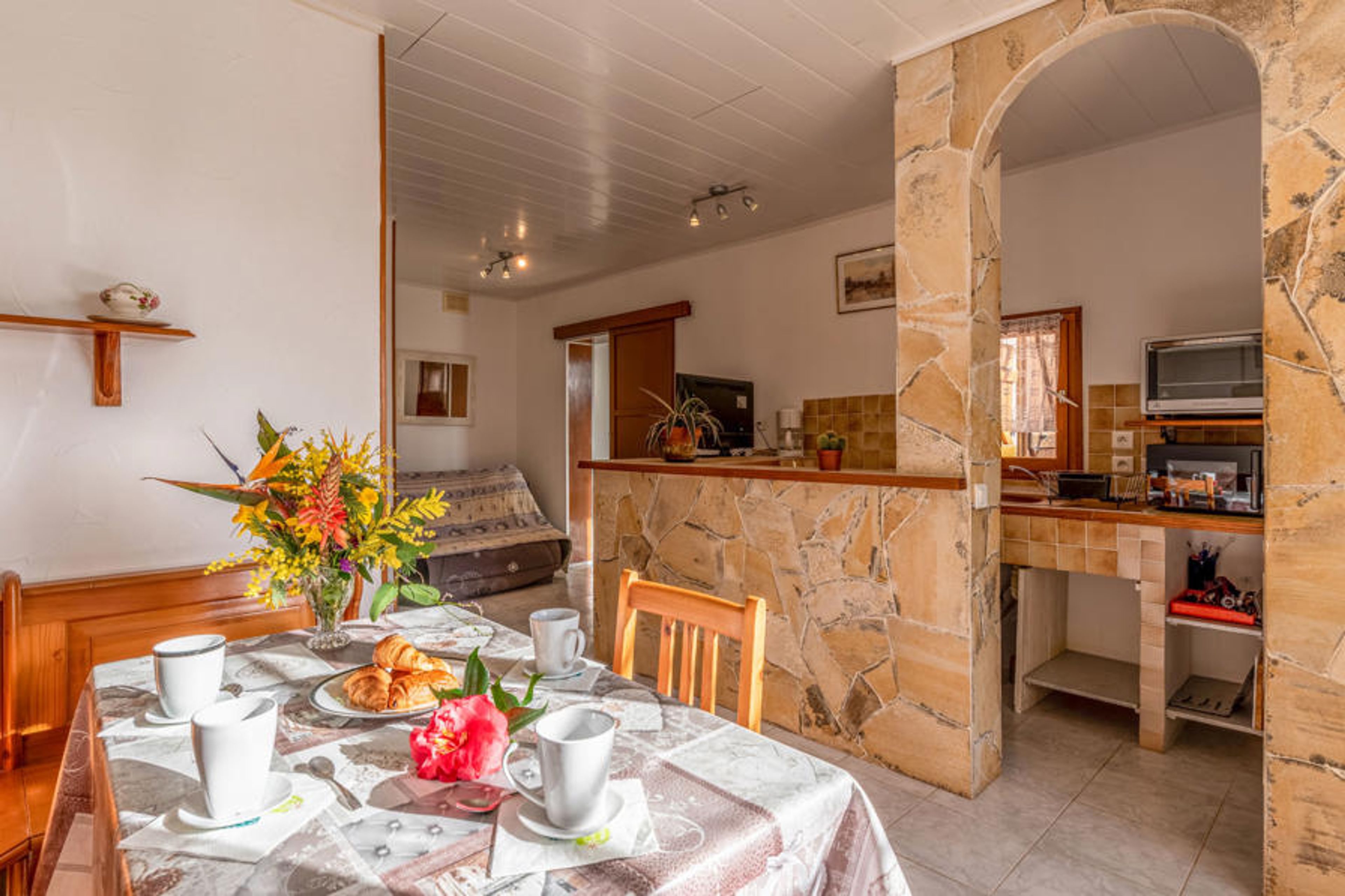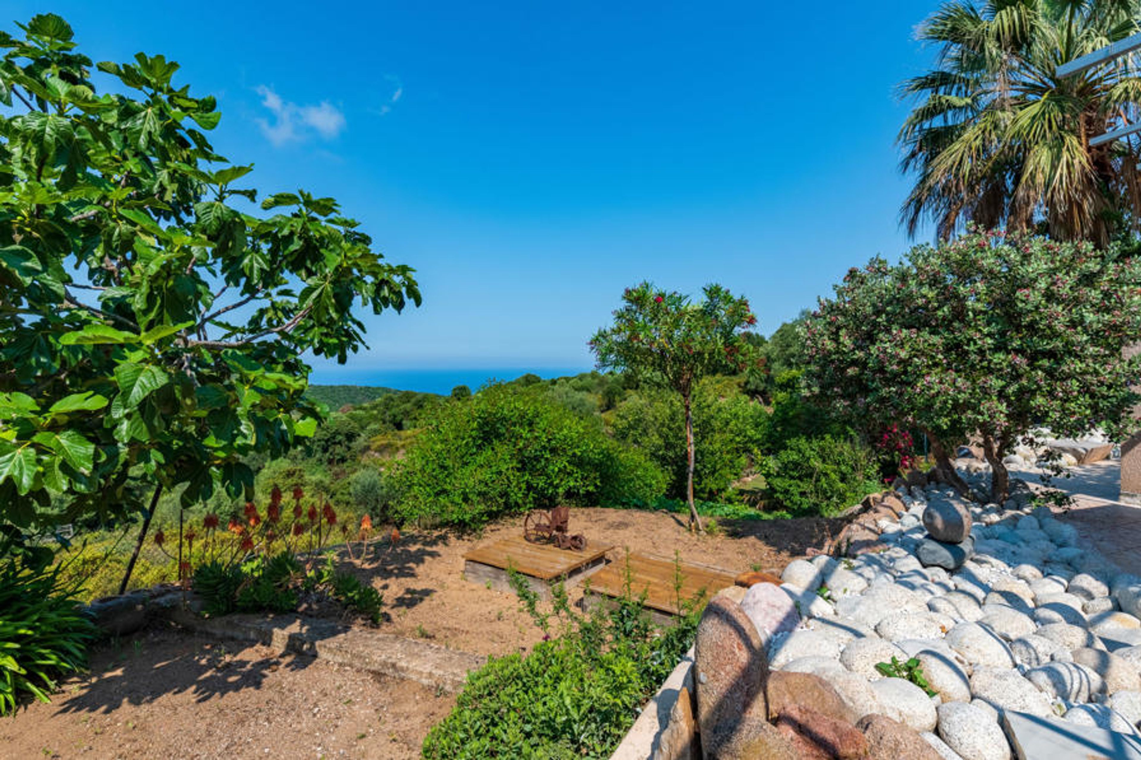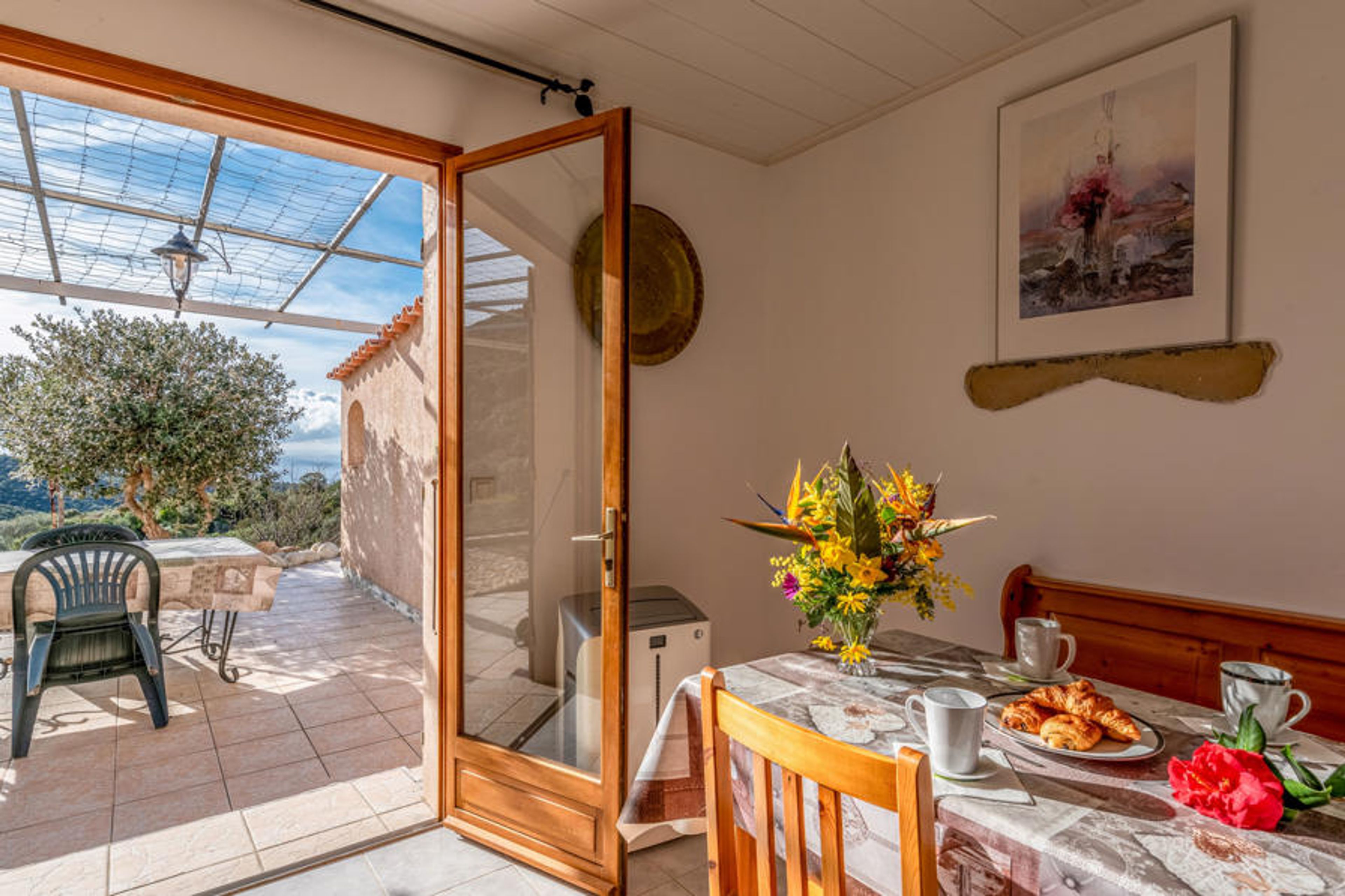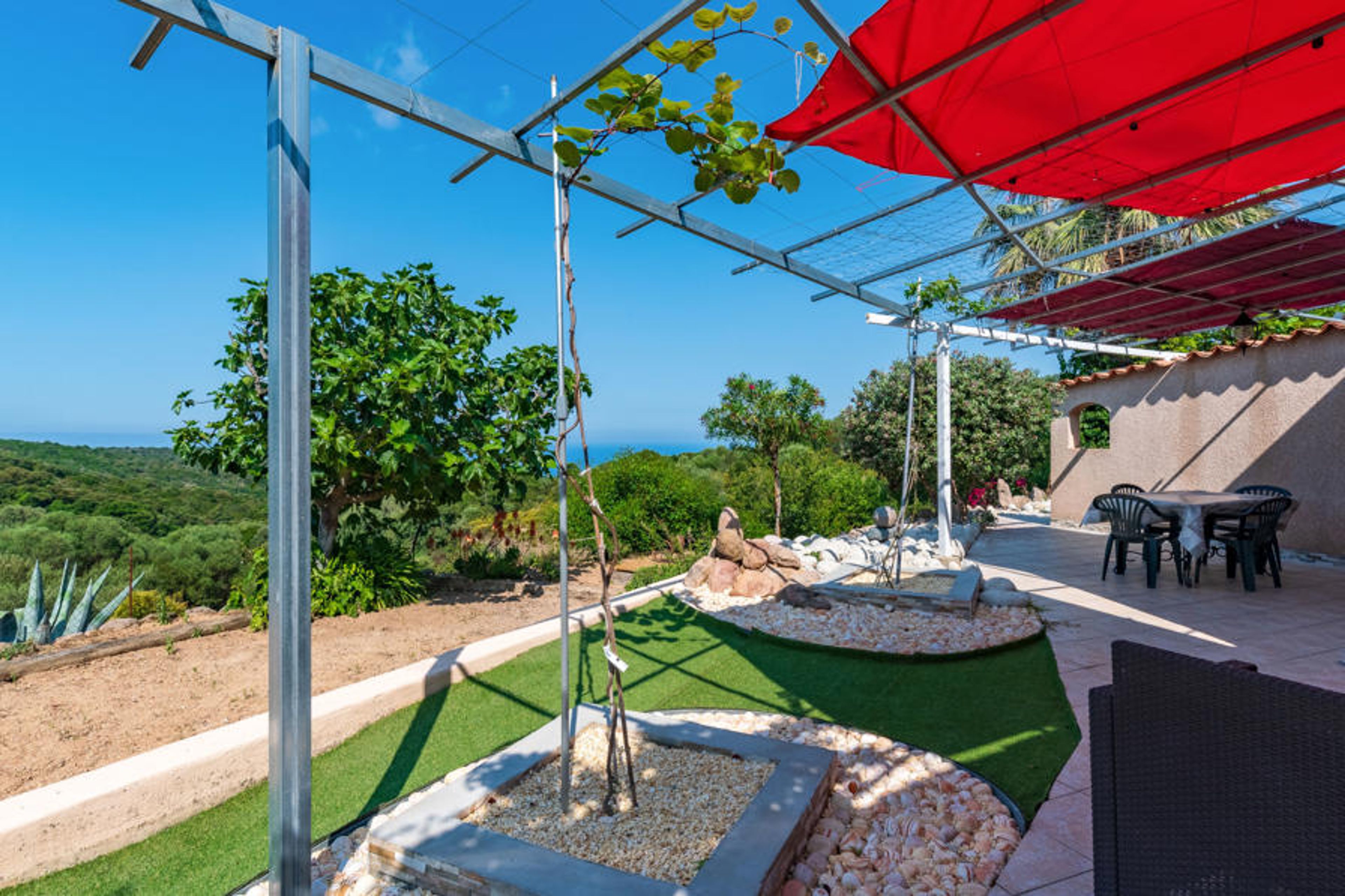 3-room terraced house 45 m2. Renovated in 2013: living/dining room with 1 double sofabed (140 cm, length 190 cm), TV and air conditioning. 1 small room 4 m2 with 1 x 2 bunk beds (90 cm, length 190 cm). 1 room with 1 french bed (140 cm, length 190 cm). Kitchenette (2 hot plates, mini-oven, microwave). Shower/WC. Electric heating. Terrace 50 m2. Terrace furniture, barbecue. Partial view of the sea and the mountains. Offer by a private individual according to Art. 155, IV of CGI.