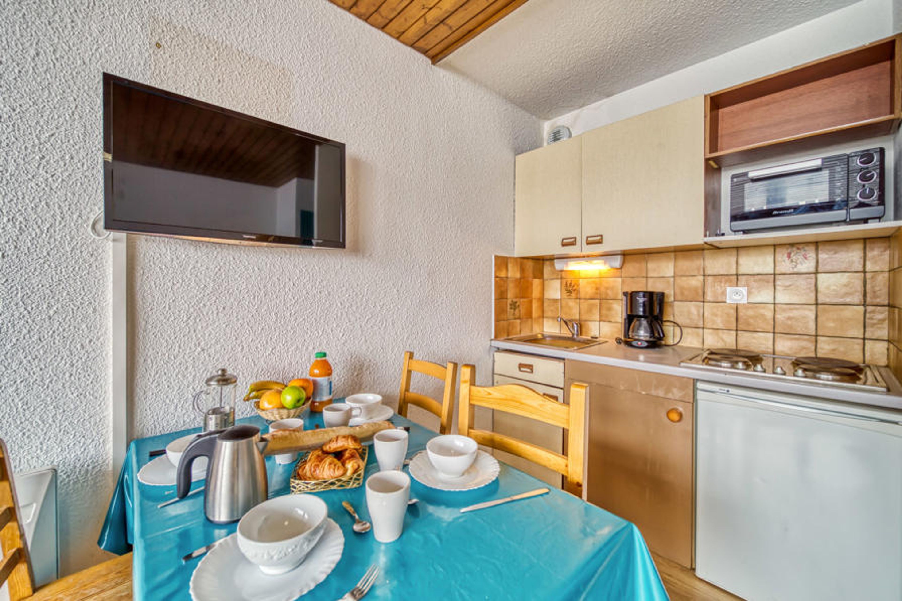 "Eterlous 1Bis", 1-room apartment 25 m2 on 1st floor, south facing position. Practical furnishings: living/dining room with 1 pull-out bed (2 pers. 2 x 90 cm, length 190 cm), TV (flat screen), electric heater. Exit to the balcony, south facing position. Entrance hall with 2 wall-trunk beds (80 cm, length 190 cm). Kitchenette (4 hot plates, oven, kettle, electric coffee machine). Bathroom, sep. WC. Parquet floors. Balcony 3 m2, south facing position. Beautiful, of the ski run and the resort. Facilities: Internet (WiFi, extra). Please note: non-smokers only. Maximum 1 pet/ dog allowed. Smoke alarm. 73257009797WF