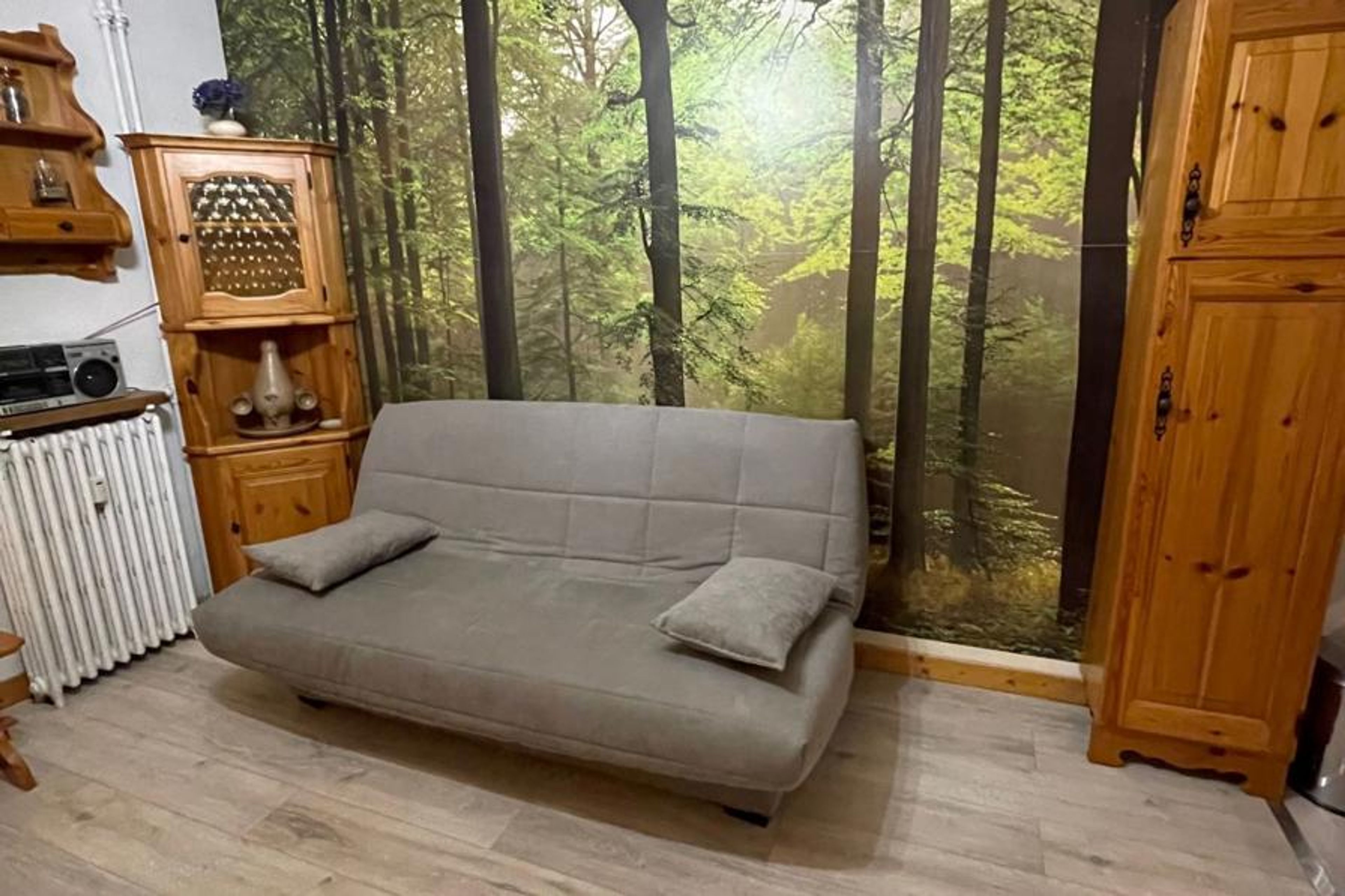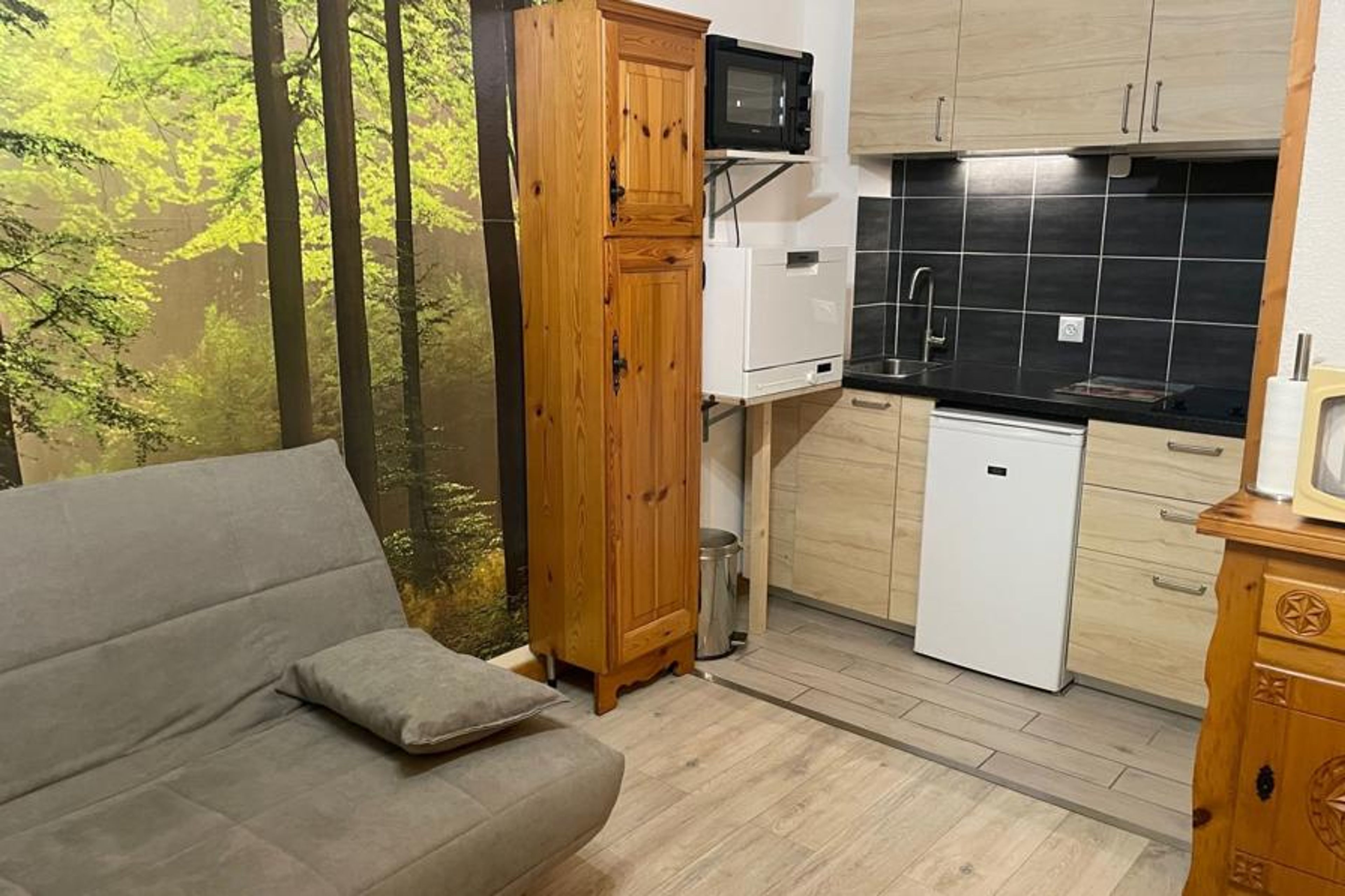 2-room apartment 40 m2 on 2nd floor. Living/dining room with 1 double sofabed (140 cm), TV. 1 room with 1 french bed (140 cm). Exit to the balcony. Open kitchen (oven, dishwasher, 2 ceramic glass hob hotplates, kettle, microwave, electric coffee machine). Bath/WC. Small balcony, south-west facing position. View of the mountains. Facilities: Internet (WiFi, extra). Please note: apartment carpark side. TV only FR. Smoke alarm. 74056000762EW