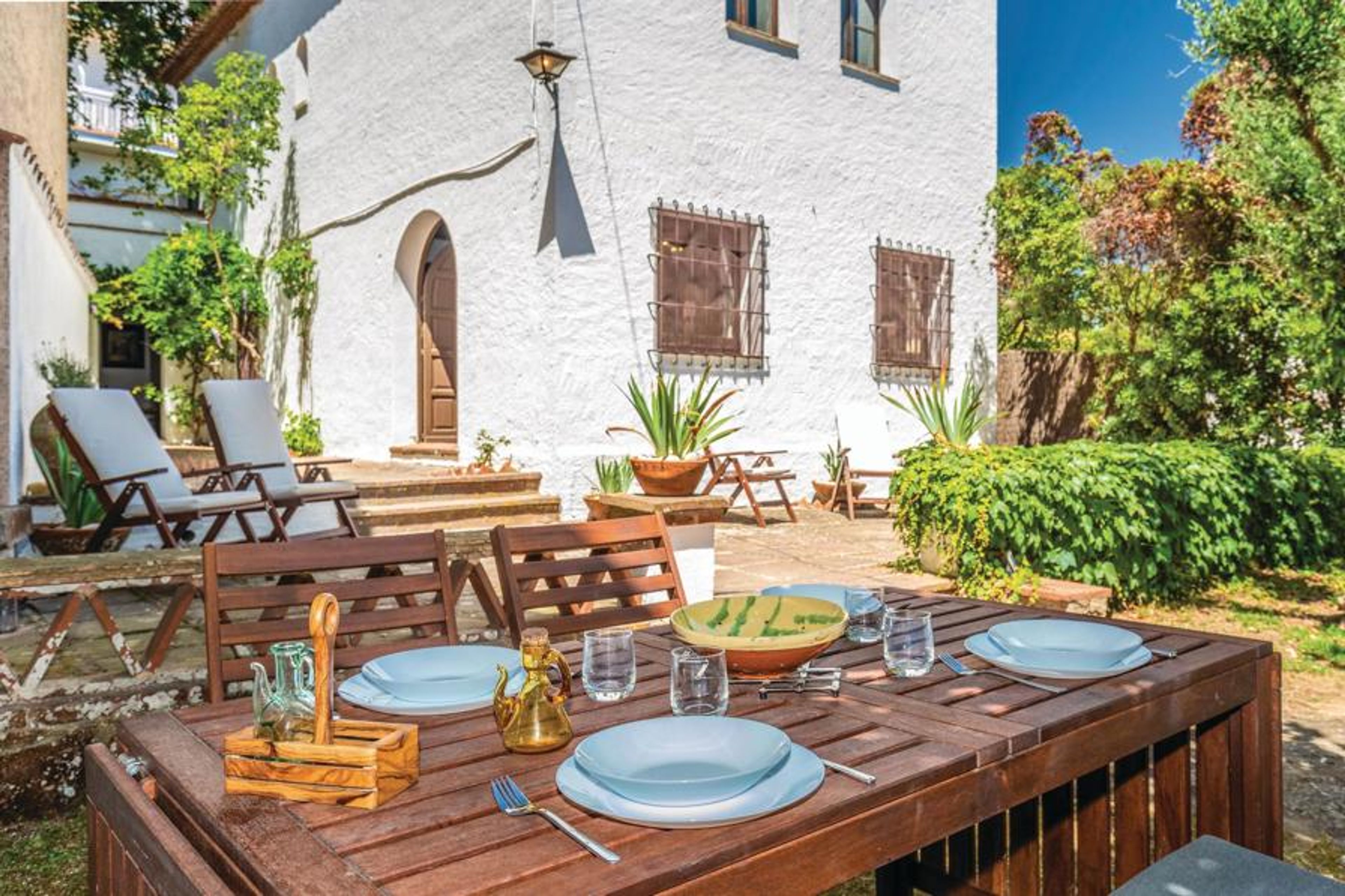 This spacious and centrally located vacation home is a typical Catalan country estate located close to the beach in a quiet area, but only a few meters from the old town of the village. The fact that it is a former farmhouse is not only felt in the surroundings. The decoration and furnishings also leave no doubt about the original purpose of the accommodation. The Wi-Fi is limited. The house is ideal for a relaxing family vacation thanks to the spacious areas such as the living room and sunny terraces. Look forward to enjoying the balmy summer nights under a tree in the garden.