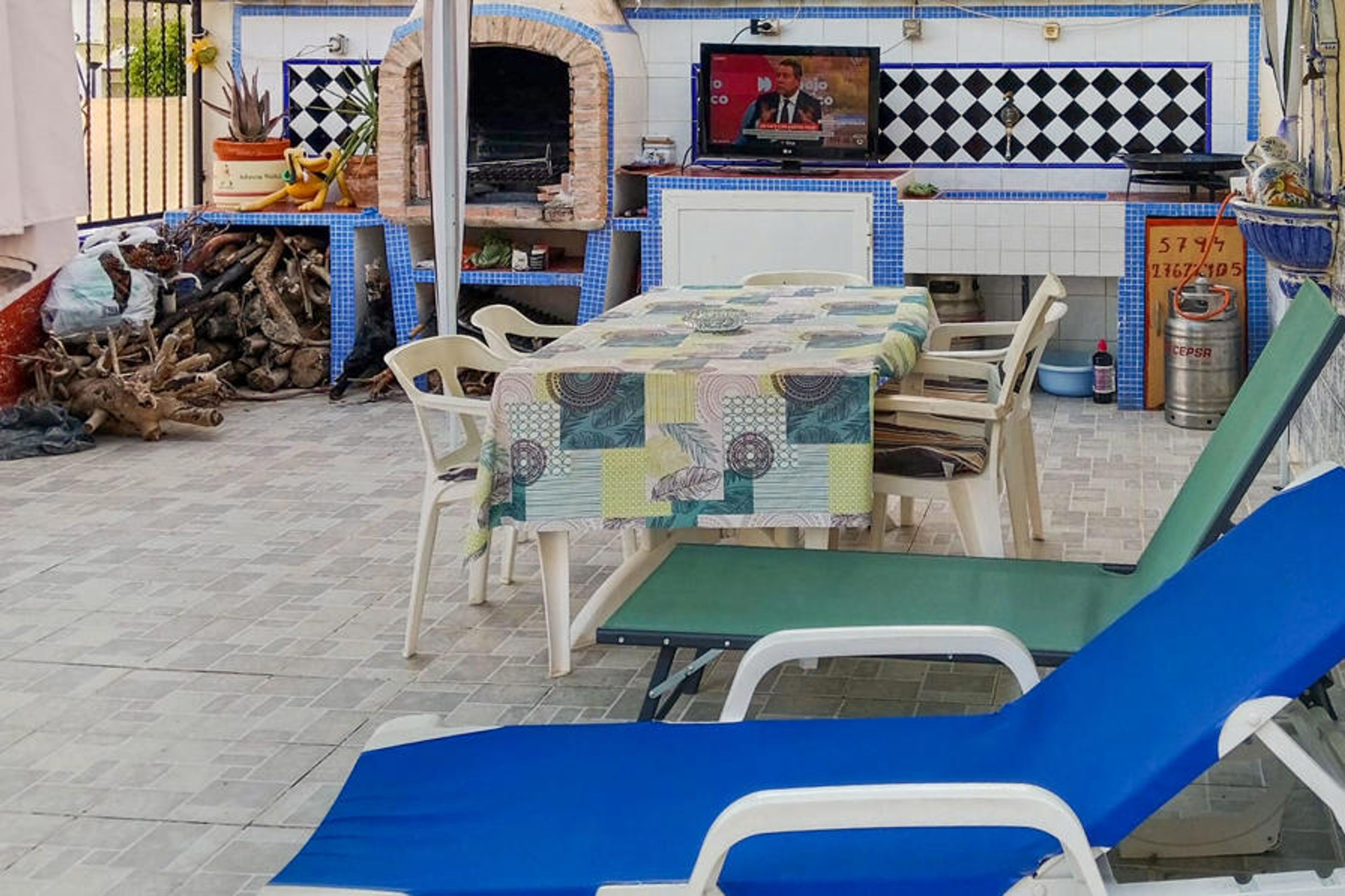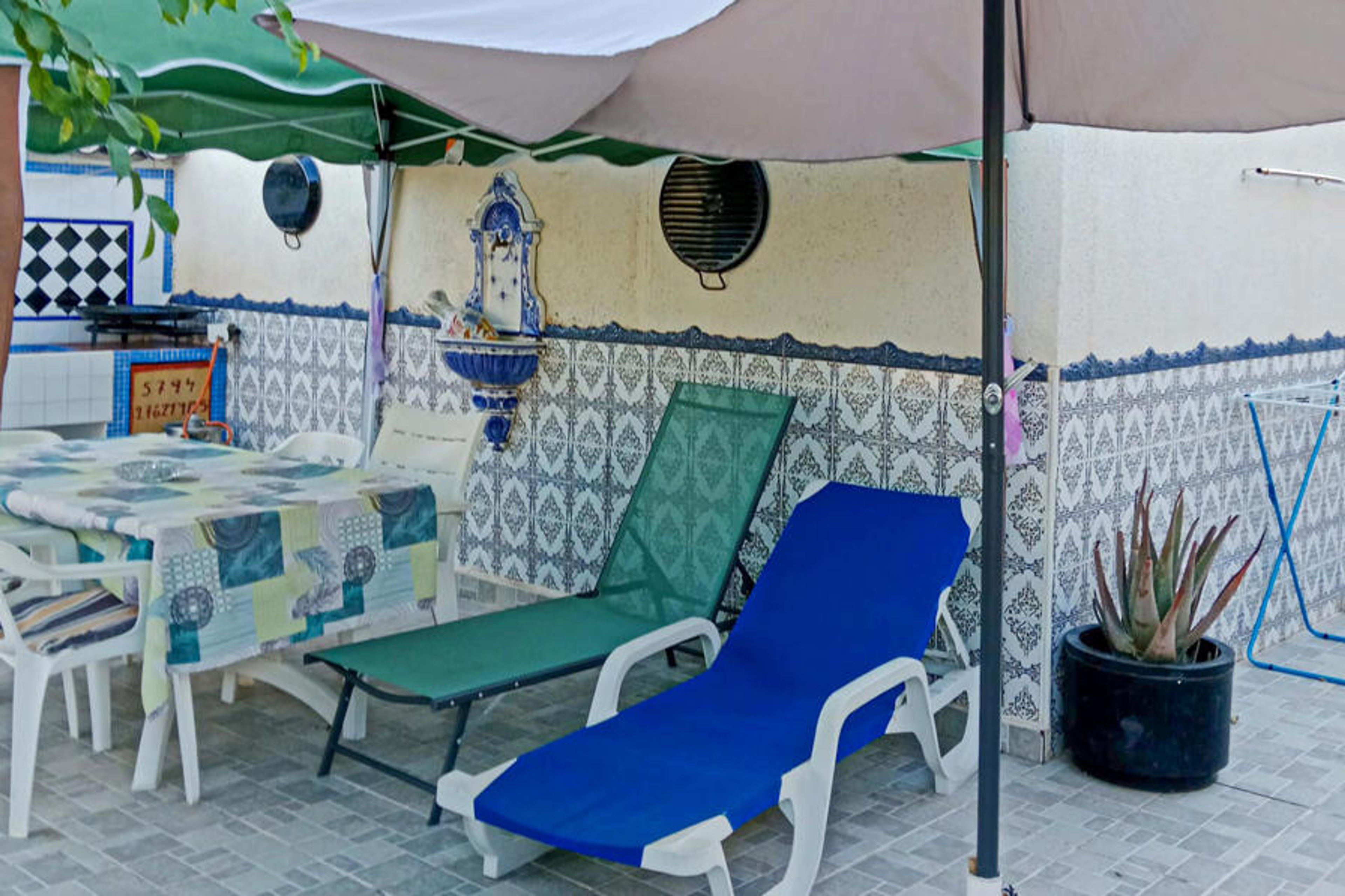 In Orihuela Costa you will find this lovely vacation terraced house in the neighborhood 'La Zenia', about 900 m from the beach on the Costa Blanca. On the first floor of the 3-story house you will find the cozy living room, the separate kitchen with dining area and a bathroom. Two bedrooms and another bathroom are located on the 1st floor and on the top floor you will find the third bedroom in absolute privacy. Two of the three bedrooms have their own balcony. The large terrace counts with a nice stone barbecue and in the residential complex you can use the community pool all year round. In a few minutes walk you can reach restaurants and stores and in 3 km you can play a round on the golf course.