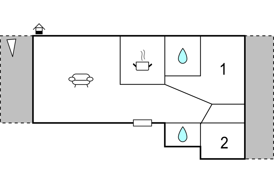 The accommodation offers a spacious and modern furnished living/dining area with dining table, chairs, a sofa and an armchair. From the living area you can access the covered terrace overlooking the resort's gorgeous garden with tropical plants. There is also a small, fully equipped kitchen with a pass-through to the dining area. To the right of the hallway is a large bathroom with bathtub and shower device, next to it is a bedroom with two single beds. The master bedroom has a king-size bed and an en-suite bathroom with bathtub and shower device. From both bedrooms you have access to another covered terrace.