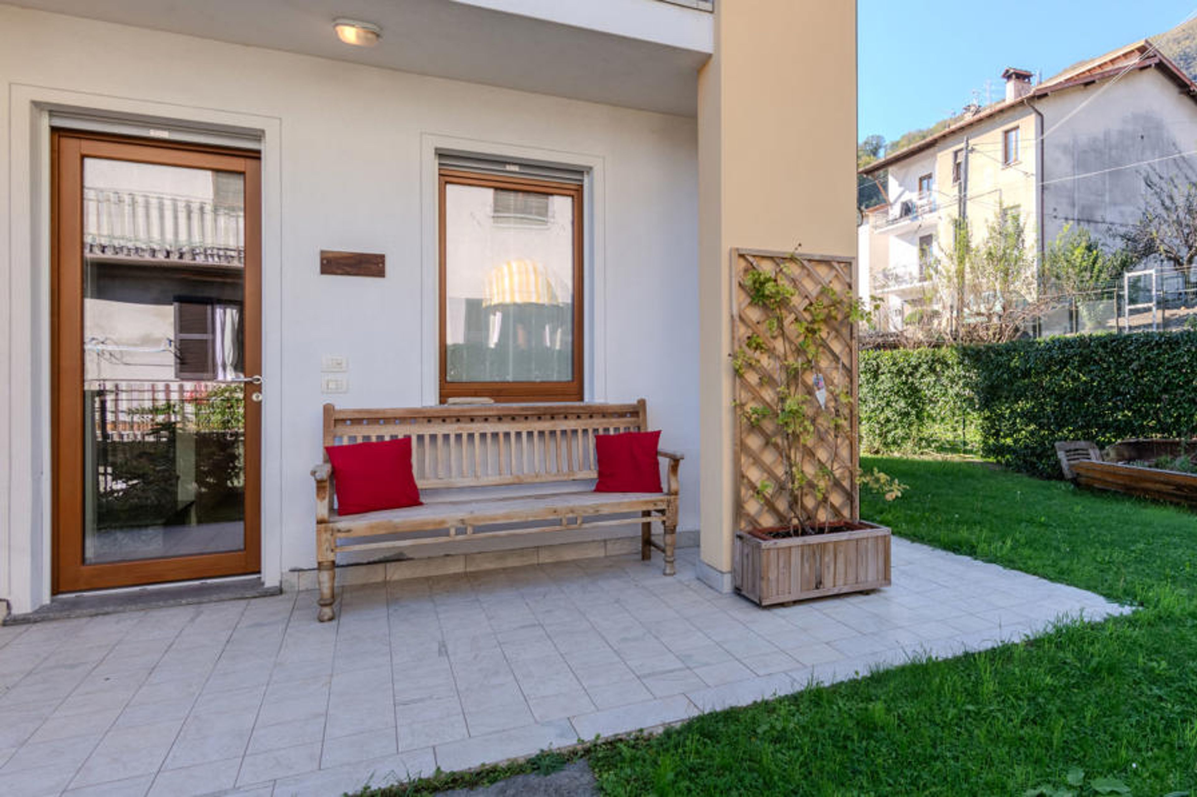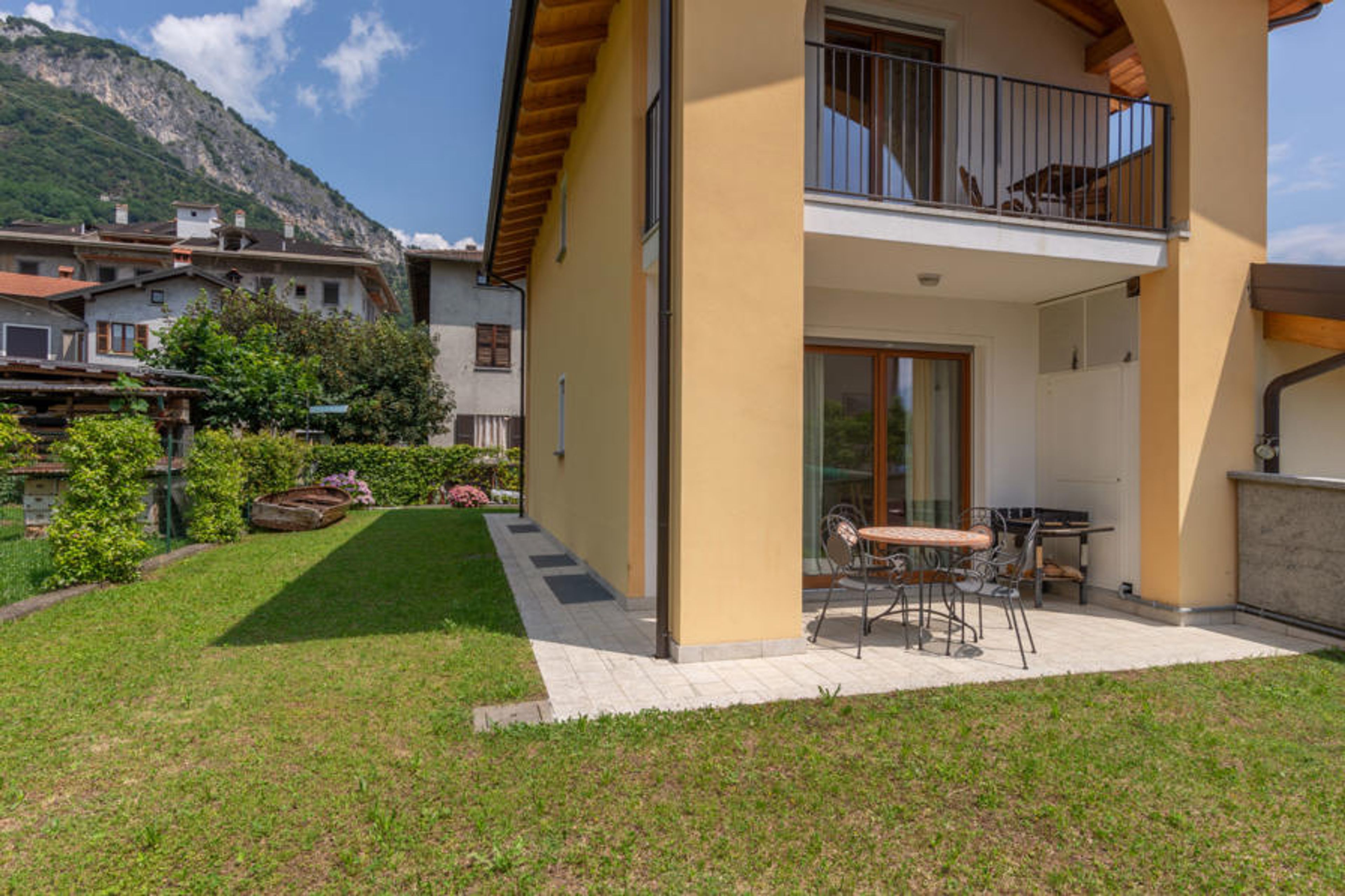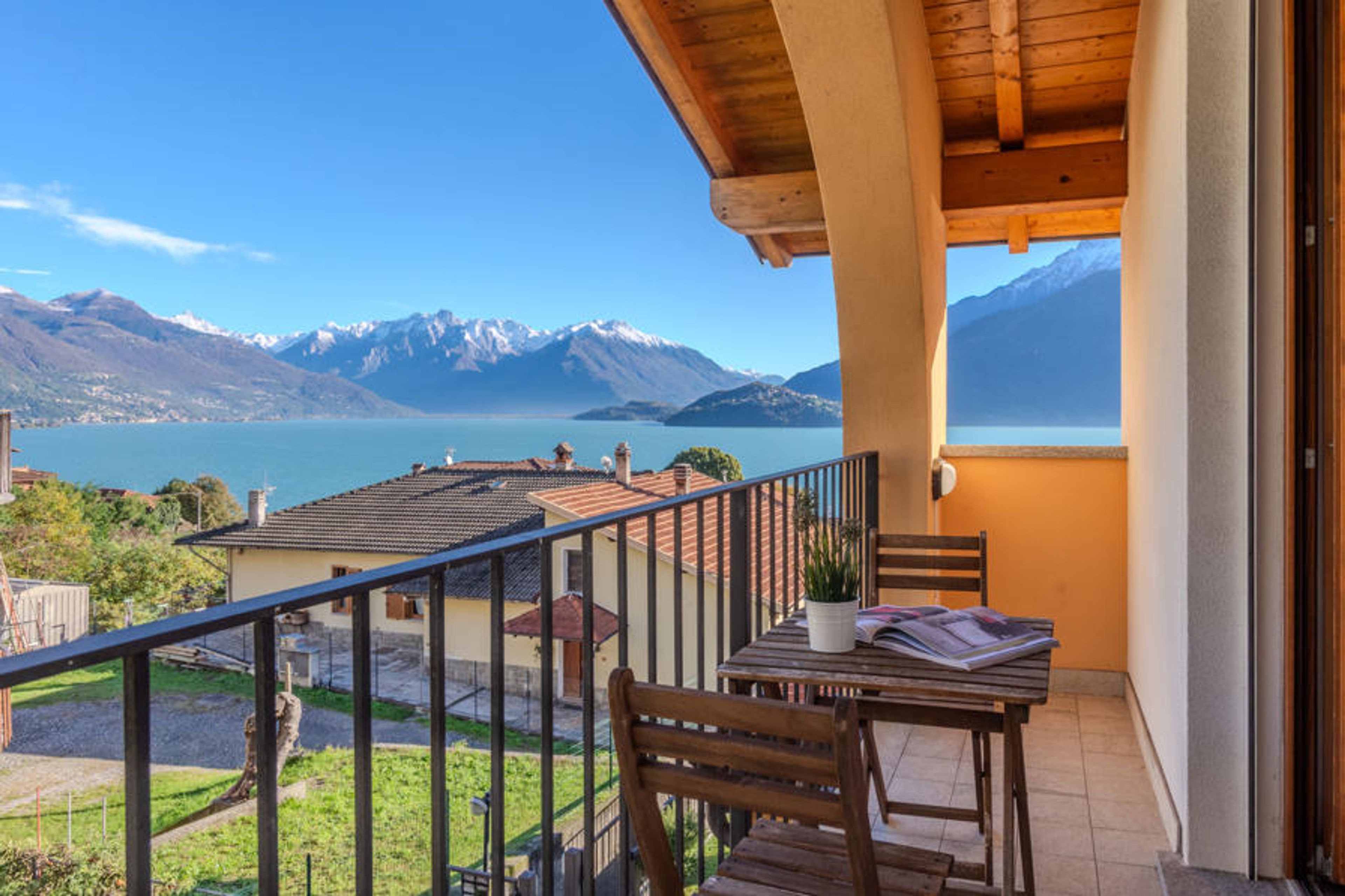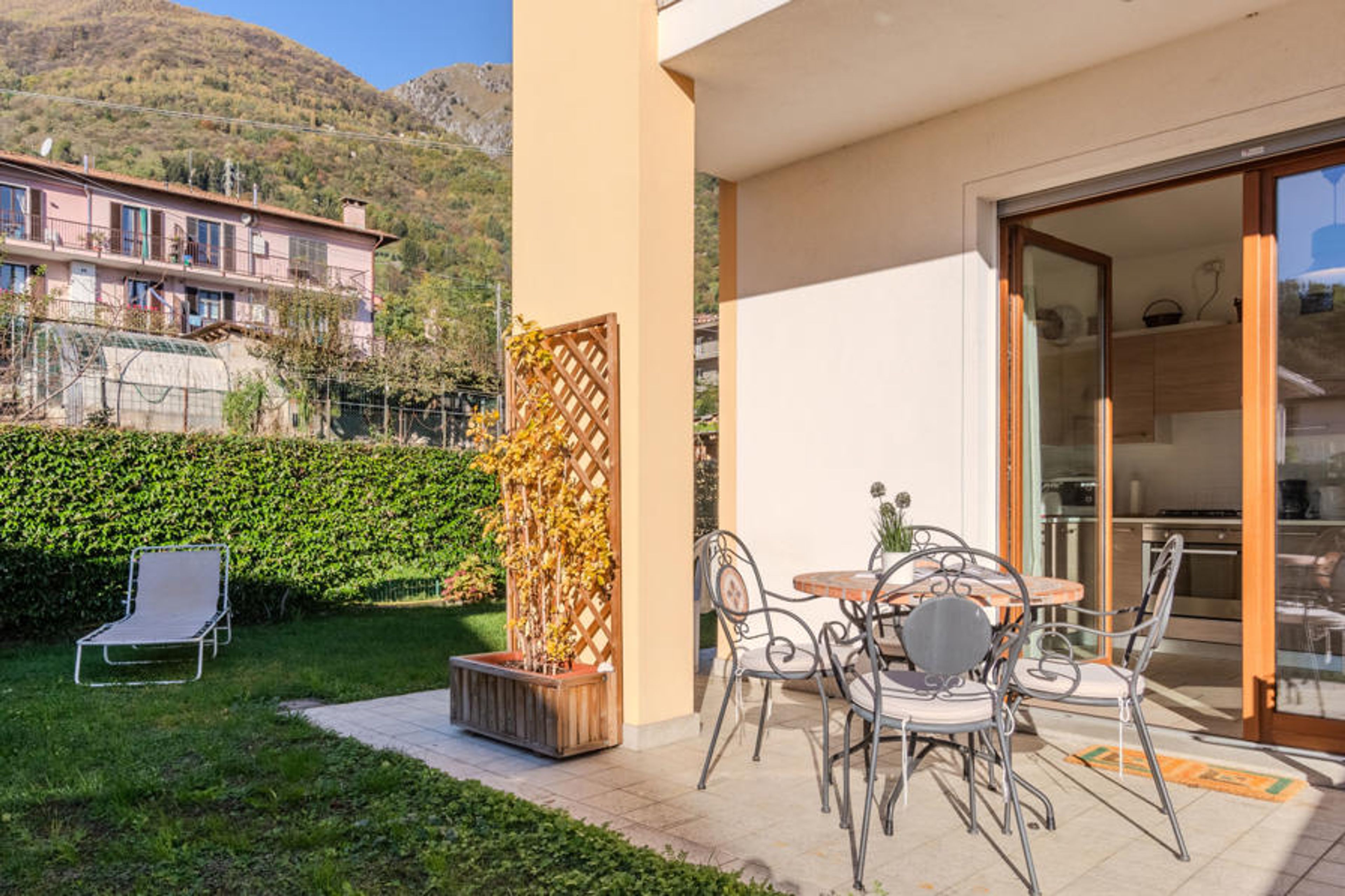 Modern terraced house "Risi", 3 storeys. 300 m from the centre of Musso, 2 km from the centre of Dongo, in a quiet position on a slope, traffic calmed area, 400 m from the lake. Private: garden (fenced) with lawn and wildlife garden. Heating available only from 01.Oct. - 30.Apr.. Motor access to the house. Stepped path (20 steps) to the house. Grocery 250 m, supermarket 2 km, bar 500 m, bus stop "C10 (Linea Como-Menaggio-Colico)" 500 m, railway station "Colico" 22 km, pebble beach "Musso" 500 m, grass beach "Dongo" 2.8 km, outdoor swimming pool 6 km. Marina 600 m, golf course (18 hole) 17 km. Nearby attractions: Menaggio 11 km, Museo della Barca Lariana-Pianello, Palazzo Gallio-Gravedona, Como, Villa Carlotta-Tremezzo, Bellagio. Well-known lakes can easily be reached: Lago di Mezzola, Lago di Lugano. Hiking paths: Sasso di Musso- Chiesa Santa Eufemia, Monte Grona - Rifugio Menaggio, Monte Legnoncino. Please note: car recommended.