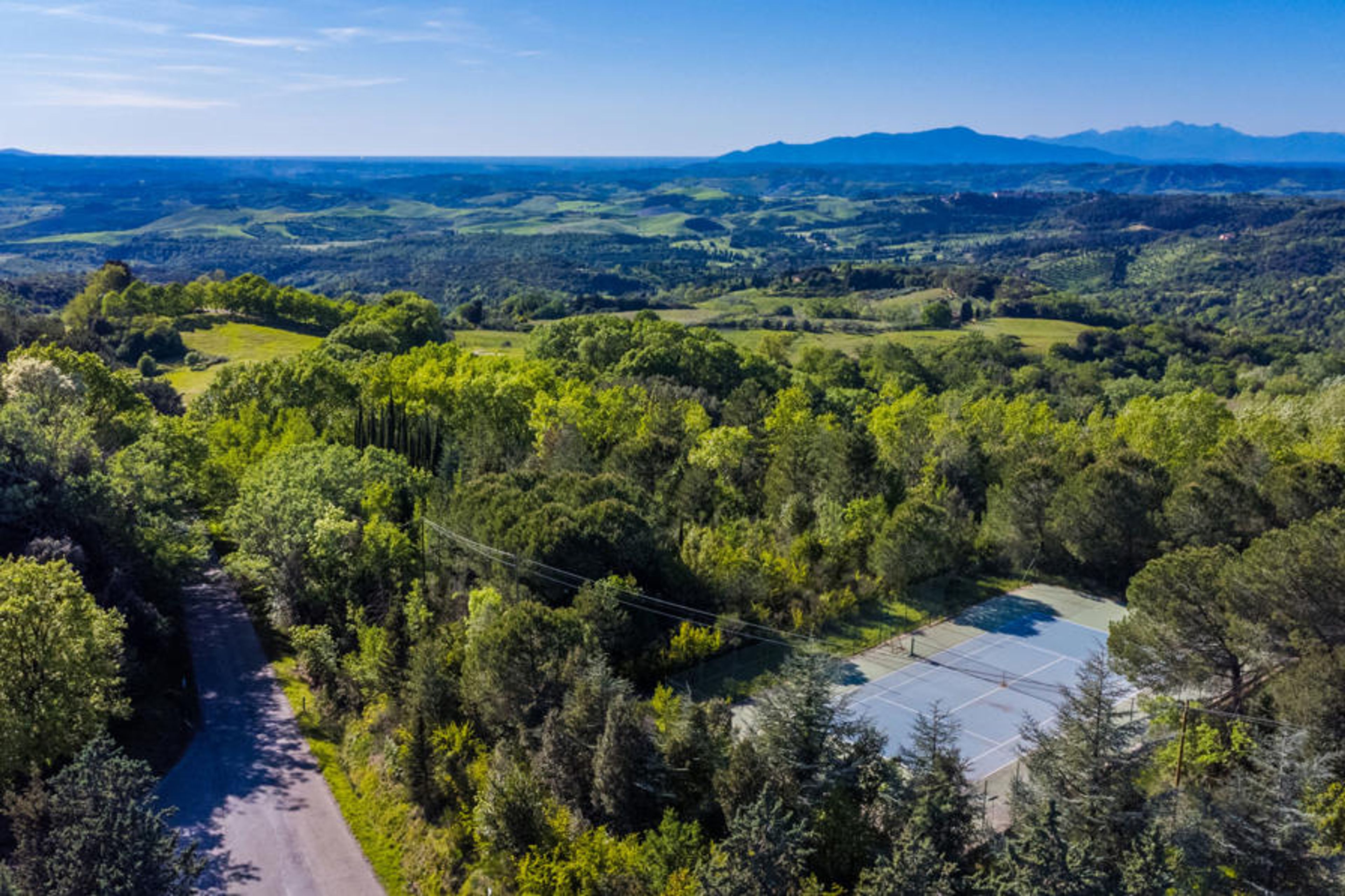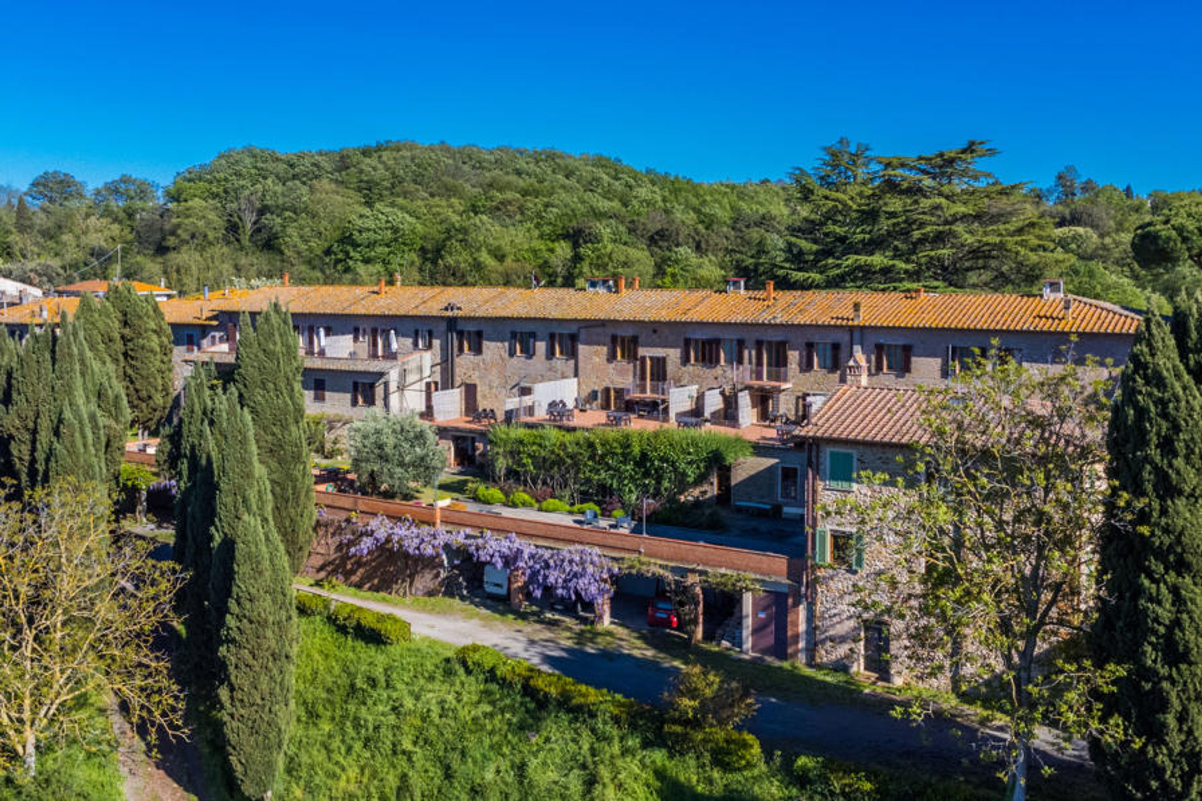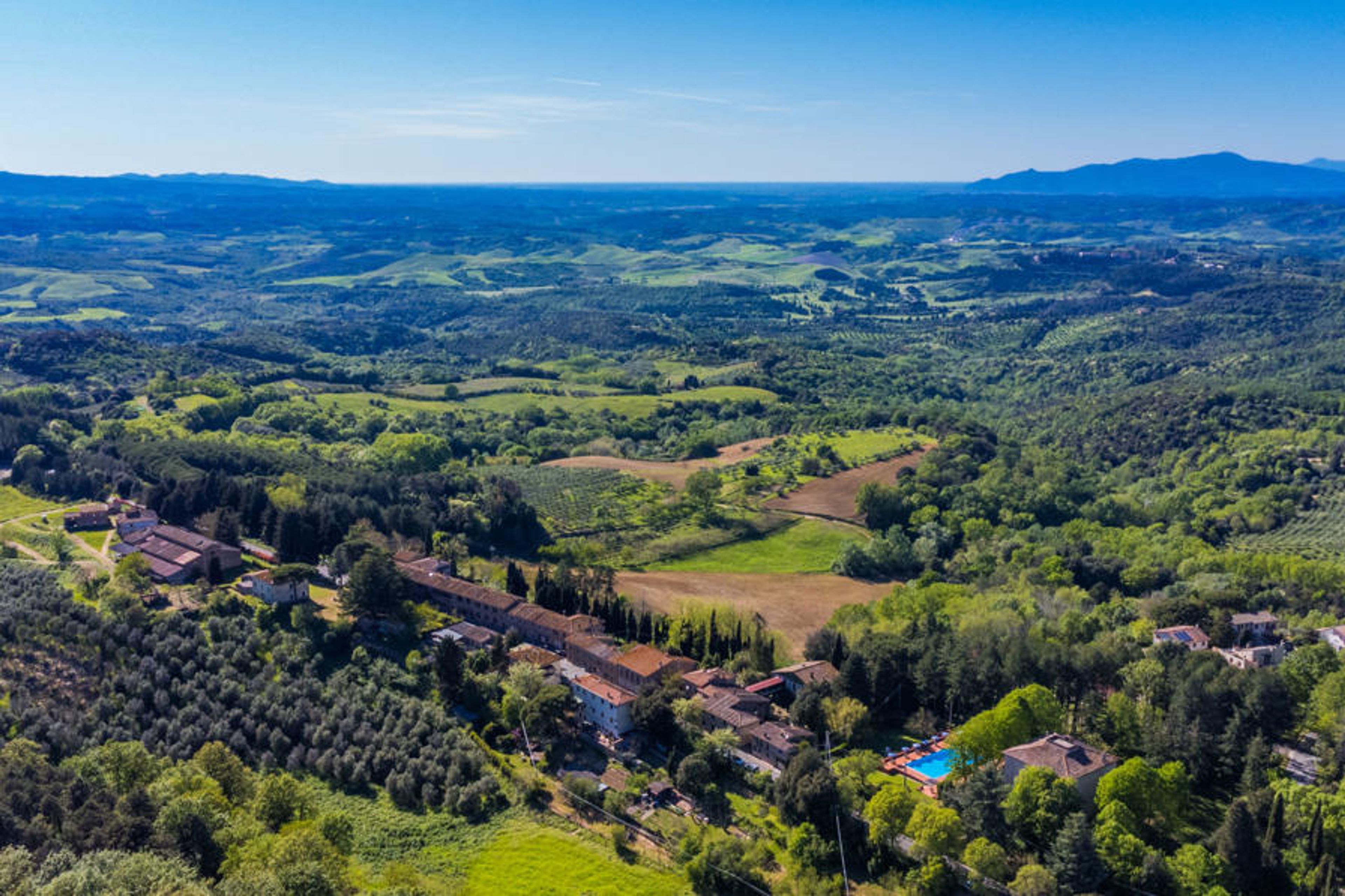 Country house "San Vivaldo", 400 m a.s.l., surrounded by trees and fields. 16 apartments in the residence. In the hamlet San Vivaldo 7 km from the centre of Montaione, 50 km from the centre of Pisa, 60 km from the centre of Firenze, in a sunny, elevated position in the residential district, 65 km from the sea, in the countryside. For shared use: property 920'000 m2, trees, swimming pool fenced (20 x 10 m, depth 150 - 250 cm, seasonal availability: 01.May. - 07.Oct. pool opening hours: 09:00-20:00) with salt-electrolysis pool-cleaning system. Shower/WC in the pool area, tennis, table tennis, terrace, garden furniture, barbecue, children's playground, pool maintenance by the owner/gardener. In the complex: reception, WiFi, washing machine (for shared use). Roofed, parking on the premises. Grocery, restaurant, bar, bakery 10 m, bus stop 7 km, sandy beach "Cecina Mare" 66 km. Golf course (18 hole) 4 km. Nearby attractions: San Gimignano 17 km, Certaldo 19 km, Volterra 30 km. Please note: car recommended. Baby equipment (included). Local sale of farm products. All houses/apartments are individually designed/furnished. Public E-charging station ca. 100 m.