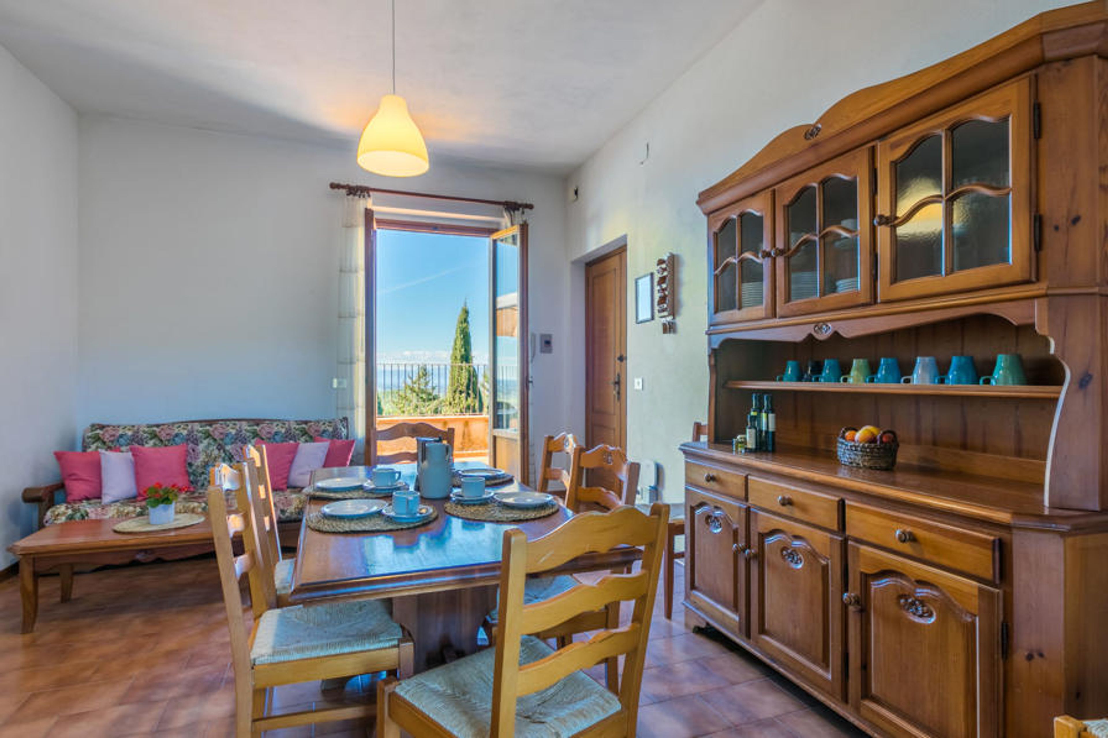 "San Vivaldo, Nr. 12", 4-room apartment 100 m2 on 1st floor. Practical and rustic furnishings: living/sleeping room with 1 double sofabed, dining table and satellite TV. Exit to the terrace. 1 room with 1 double bed. 1 room with 2 beds. 1 room with 1 x 2 bunk beds. Kitchen (oven, dishwasher, 4 induction hot plates, toaster, kettle, electric coffee machine). Bath/bidet/WC. No heating option. Terrace. Terrace furniture. Panoramic view. Facilities: children's high chair, baby cot. Internet (WiFi, free). Please note: non-smokers only. Maximum 2 pets/ dogs allowed. IT053025C28GWESZXY