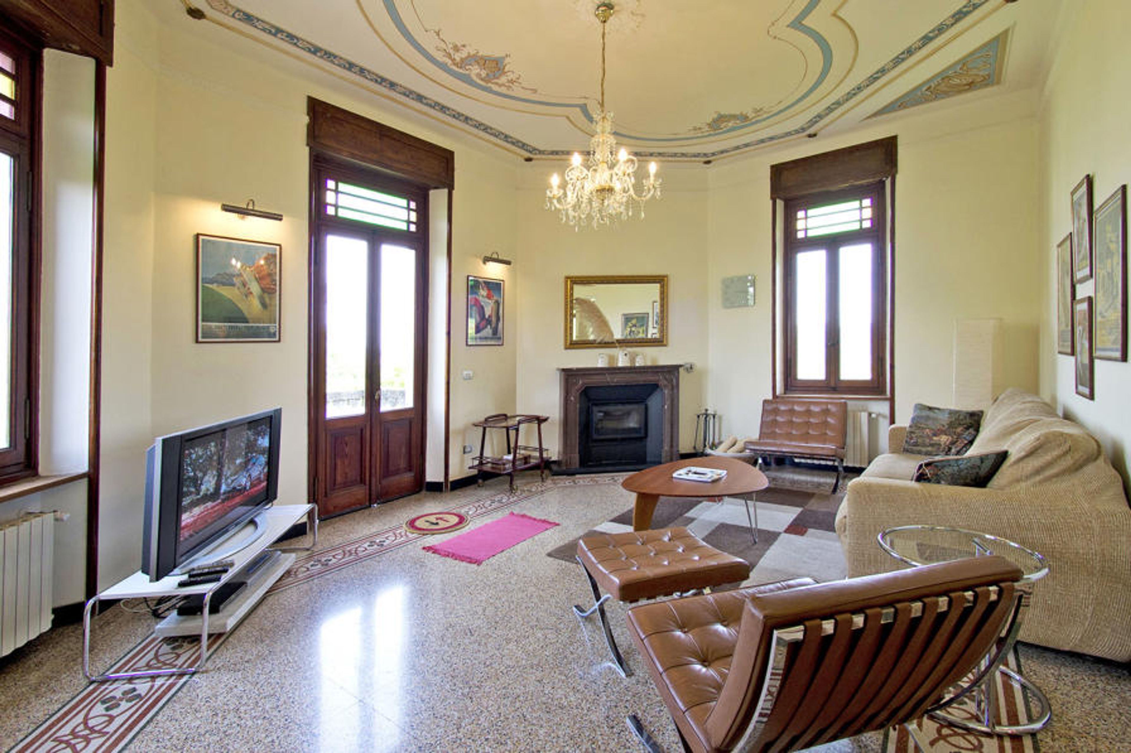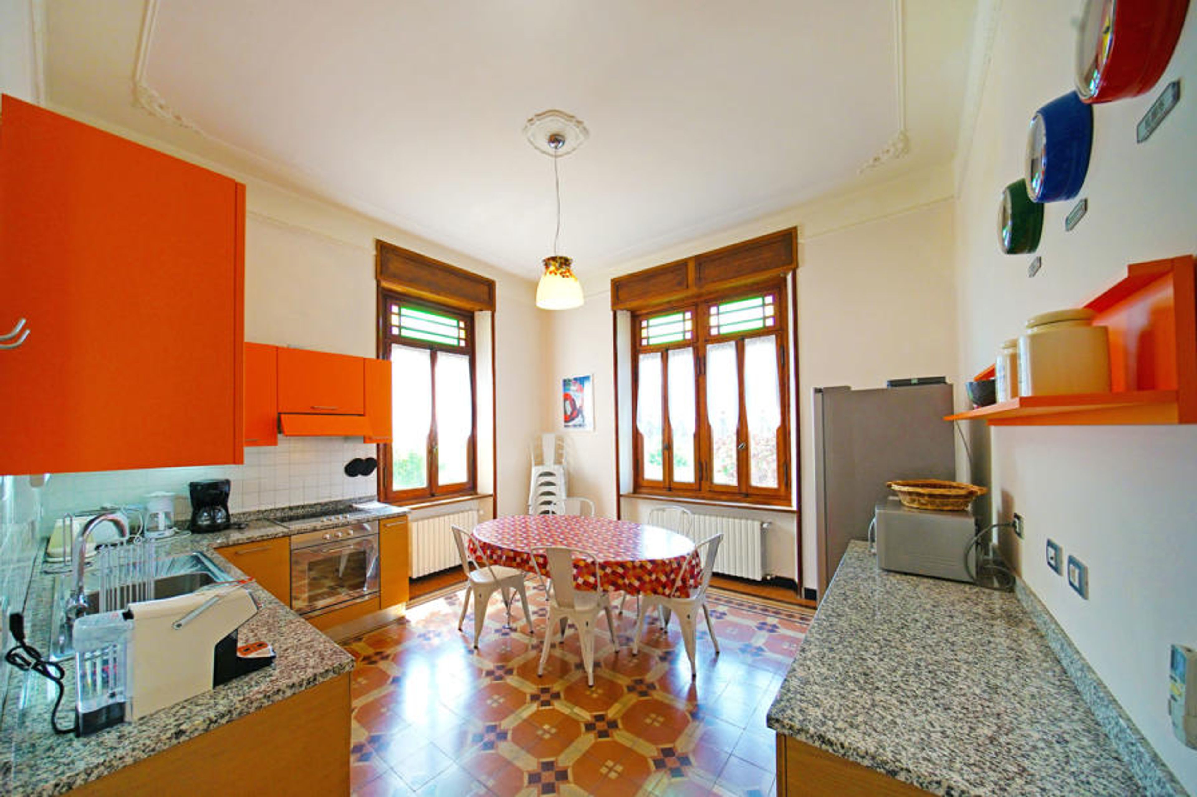 7-room house 290 m2 on 3 levels. Very comfortable and modern furnishings: living/sleeping room with 1 double sofabed (160 cm), open-hearth fireplace, dining table, satellite TV, hi-fi system and DVD. Exit to the garden. Kitchen (oven, dishwasher, 4 gas rings, microwave, freezer, electric coffee machine) with dining table. Exit to the garden, to the terrace. Shower/WC. Upper floor: living/dining room with open-hearth fireplace, dining table, satellite TV, hi-fi system and DVD. Exit to the terrace. 1 room with 1 french bed (160 cm). Kitchen (oven, dishwasher, 4 induction hot plates, toaster, kettle, microwave, freezer, electric coffee machine) with dining table. Shower/WC. 2nd upper floor: 1 room with 1 french bed (170 cm), shower/WC. 1 room with 2 beds. 1 room with 1 french bed (135 cm). Bath/WC. Heating, air-conditioning. Heating available only from 01.10. to 30.04. Parquet floors, natural stone floors. Terrace roofed. Terrace furniture, deck chairs. Panoramic view. Facilities: washing machine, dryer, iron, children's high chair, baby cot. Internet (WiFi, free). Please note: non-smokers only. Maximum 2 pets/ dogs allowed. IT006158B4Y24QV34T