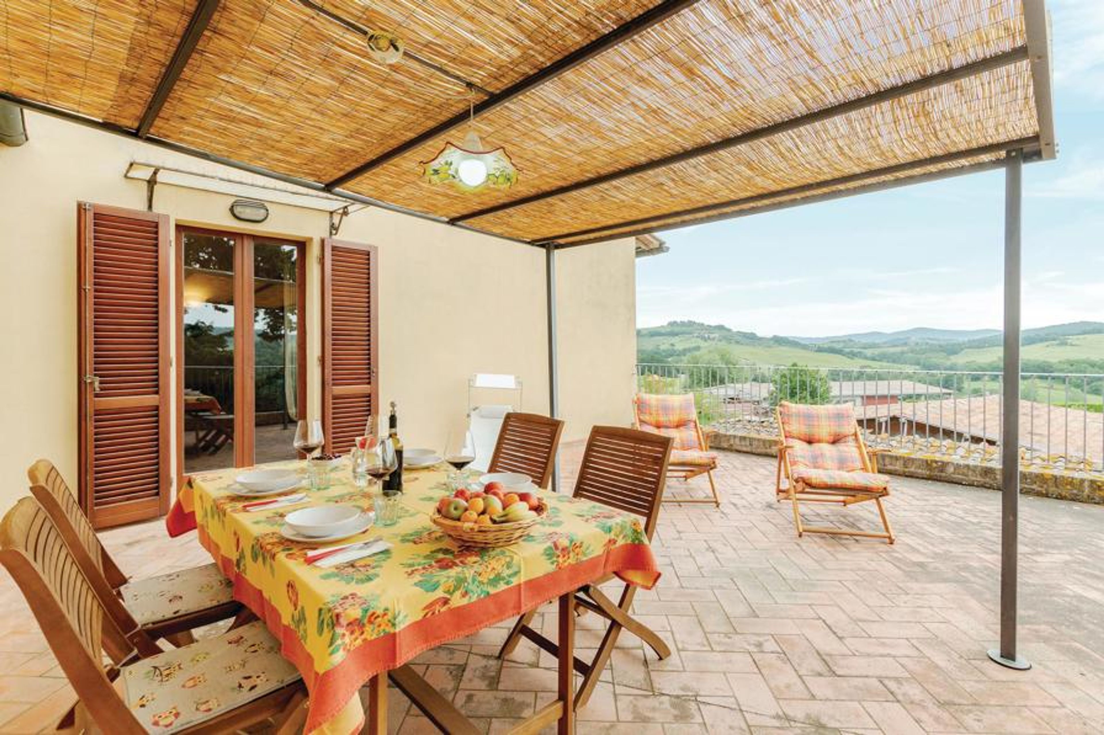 Beautiful vacation terraced house in a farmhouse divided into three units, with shared pool, located in the green countryside near Casole d'Elsa and only about 1 km from its historic center. Casole d'Elsa is a small town in the province of Siena, famous for its Palio horse race in July, as well as for the numerous cultural initiatives that take place during the summer, such as the traditional fair "Festa del Borgo Nero", the food festival "Steak in The Square ", where you can buy your favorite meat from the butchers of the historic center and have it prepared by local experts. Or the Guitar Festival, which every year hosts the most famous guitarists in Italy. The apartment is divided into two levels and has two large equipped terraces where you can dine al fresco while admiring the spectacular views of the surrounding countryside. The outdoor area and communal pool await you after a day spent in the nearby cities of Siena (40 km), Florence (60 km), Colle di Val d'Elsa (10 km), the crystal city of San Gimignano (25) km and Volterra the city of Alabaster at 24 km. The beaches of Cecina and Follonica are about an hour's drive away. It is possible to order two extra beds on request (payment on site). In the same building there is also ITS309.