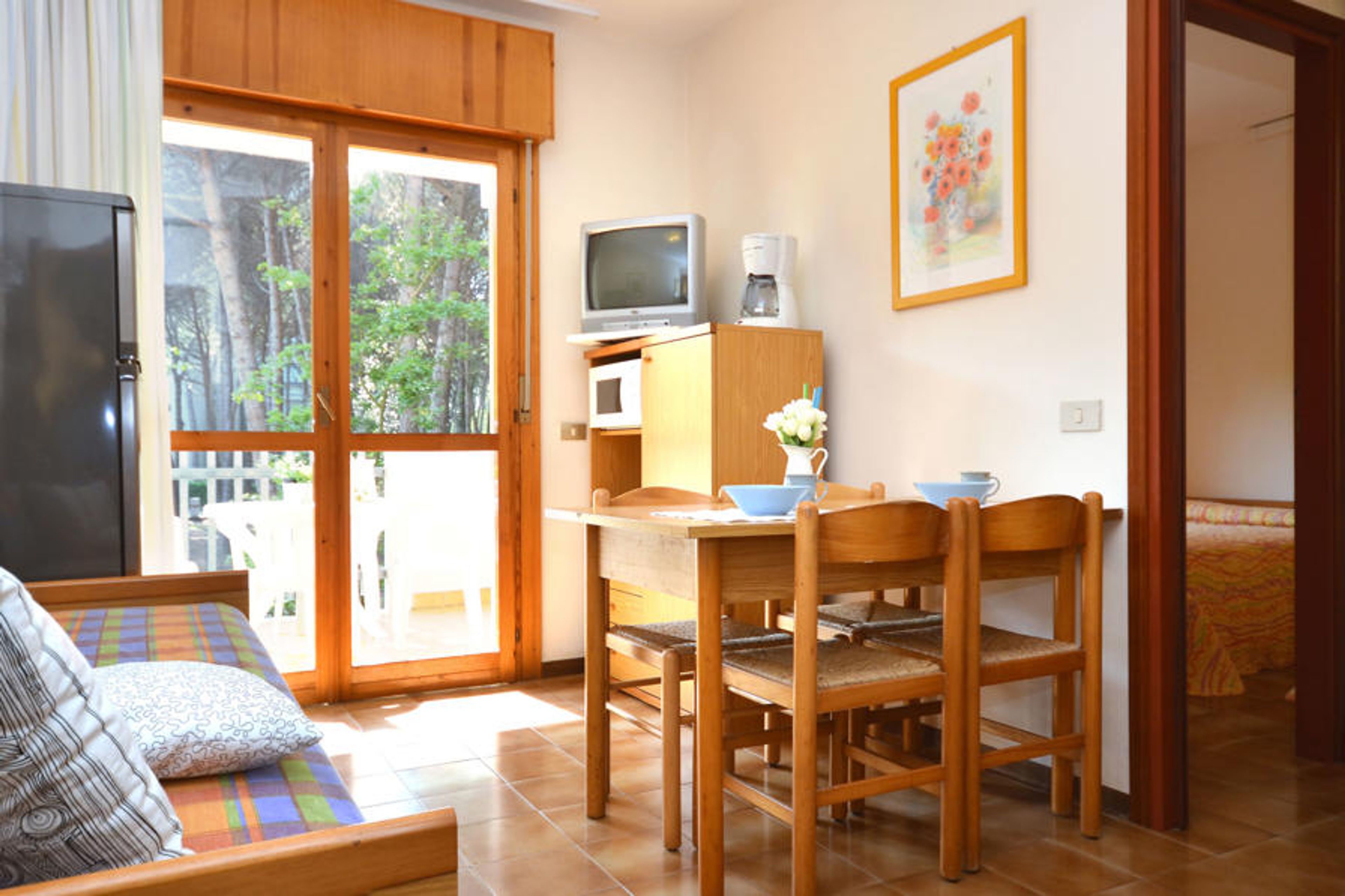 Apartment block "Boschetto", 4 storeys. 12 apartments in the residence. In the district of Lido del Sole 100 m from the centre of Bibione-Lido del Sole, 13 km from the centre of Lignano, 100 km from the centre of Venezia, 250 m from the sea. For shared use: natural state property (fenced) with trees. In the house: lift, bicycle rental. Shop 150 m, supermarket 100 m, restaurant 150 m, bus stop 10 m, railway station "Latisana (Milano-Venezia-Triest)" 21 km, sandy beach 250 m. Golf course (18 hole) 10 km. Nearby attractions: Oasi Naturalistica Val Grande - Bibione. The owner does not accept any groups. Beach service: During summer season 1 parasol and 2 deck-chairs per apartment included in the price.