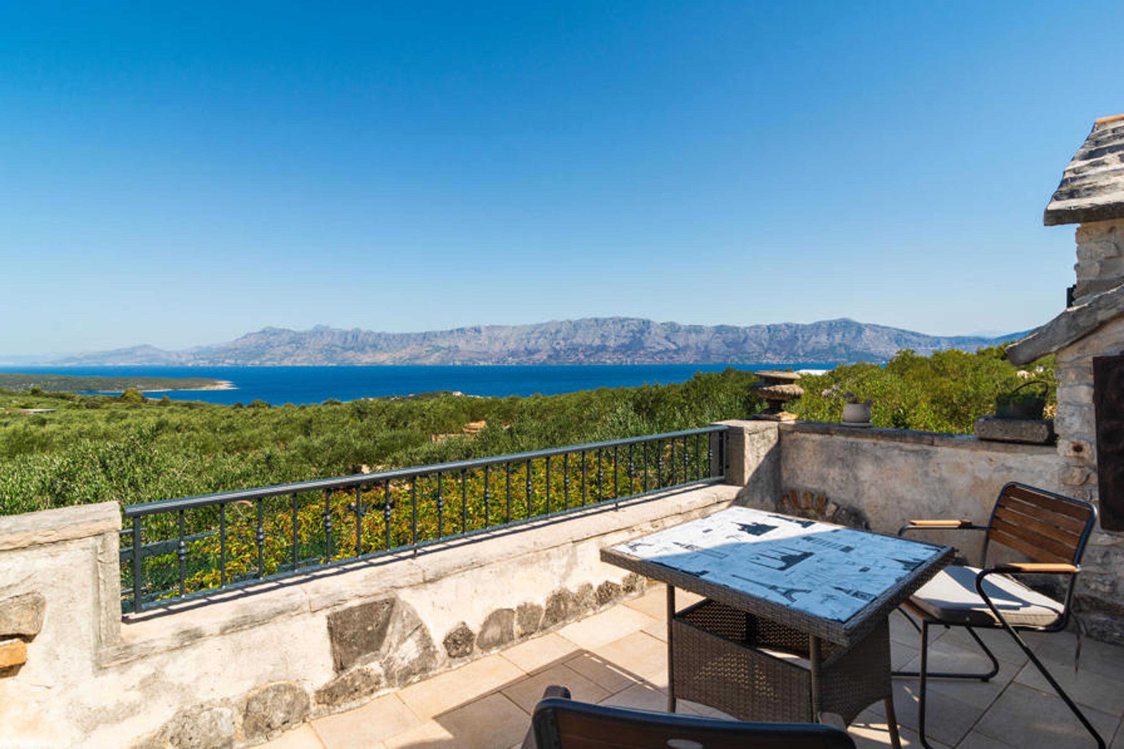 This vacation home is located in an olive grove above the small village of Povlja, on the north side of the island of Brac. Here you can spend a quiet vacation far from the noise of civilization. A kitchen with dining room, a bedroom and a bathroom are on the second floor, while the first floor is closed. The water is supplied by cisterns. The friendly owner does not live on site, but is happy to help. Here you have large terrace areas, one of which offers a beautiful panoramic view of the sea and the Biokovo mountain range. A peaceful atmosphere awaits you here.