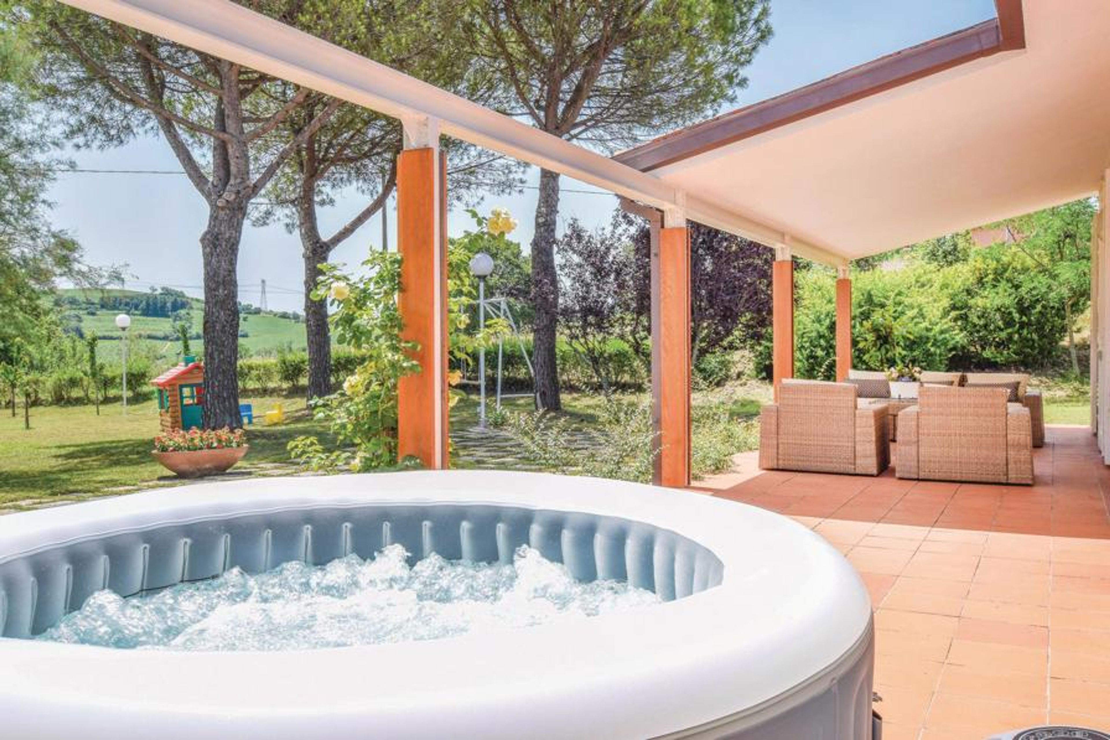Pretty independent vacation home in the hills of Marche, just 10 km from the beaches of Fano, 16 km from Pesaro and 30 km from Senigallia. This is an ideal destination for families or groups of friends who want to spend a vacation full of relaxation and fun, accompanied by their inseparable four-legged friend. The outdoor area of about 3000 m² offers a magnificent view of the green hills. The garden has several well-maintained and equipped areas and a relaxation corner with a jacuzzi with sun loungers and umbrellas is ideal for your relaxation on hot summer days. For those who want to keep fit, there is a gazebo with fitness equipment and for your children there is a fun and colorful play area. Two mountain bikes are available for use. For art and culture lovers there is the city of Fano with its ancient monuments dating back to Roman times, the characteristic city of Urbino, home to one of the oldest universities, also known for its splendid monuments such as the majestic Palazzo Ducale, the Monastery of Santa Chiara and the Church of San Domenico. The towns of Fano (10 km), Pesaro (16 km) or Cattolica (35 km), with their stores and restaurants open late in the summer, are very appreciated by tourists. About 2 km away are the thermal baths of Carignano. Nature lovers will be fascinated by the caves of Frasassi (72 km), the beautiful Gola del Furlo (39 km) or the majestic Monte del Conero (82 km). In the surrounding area there are famous theme and amusement parks.