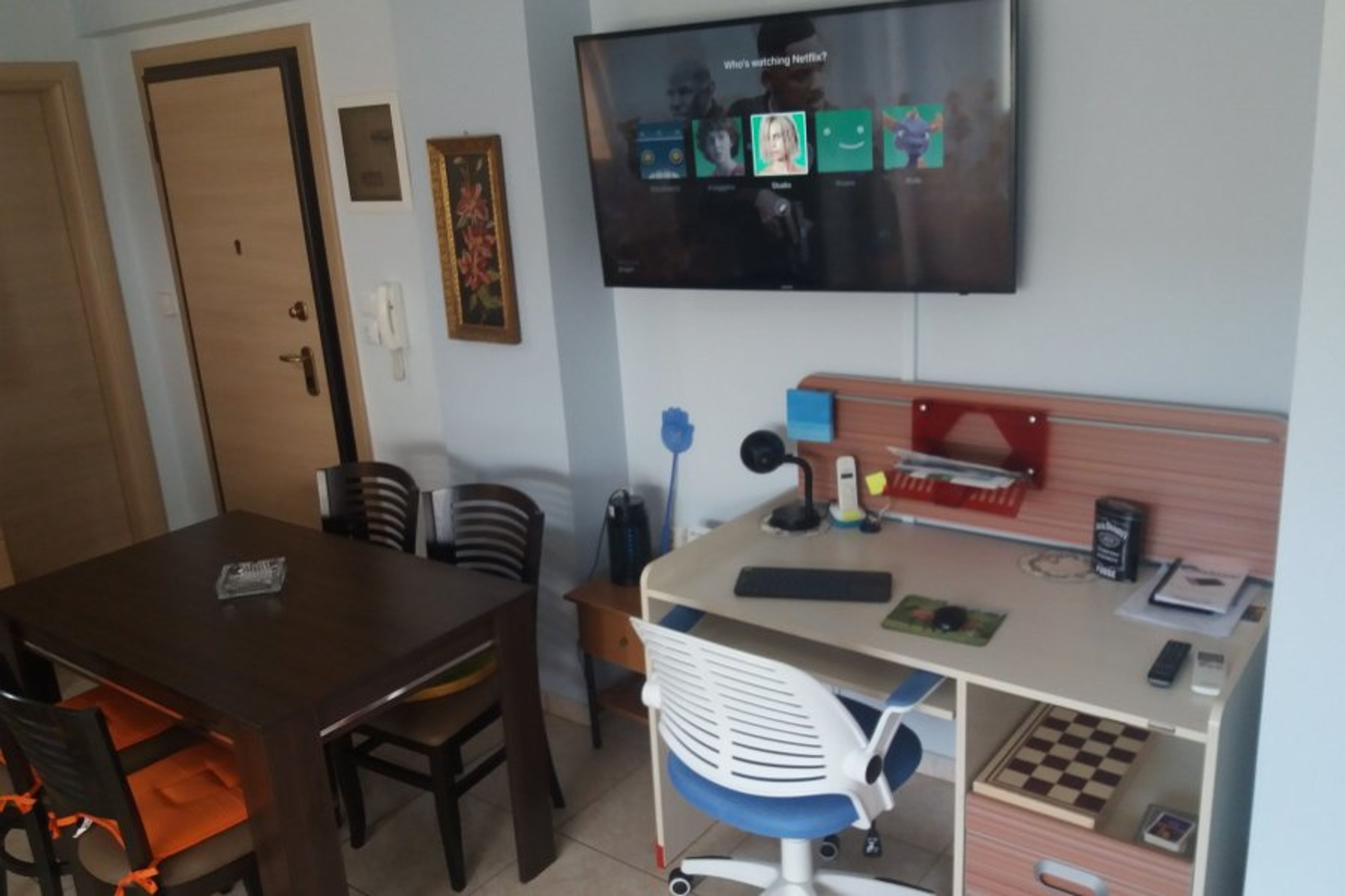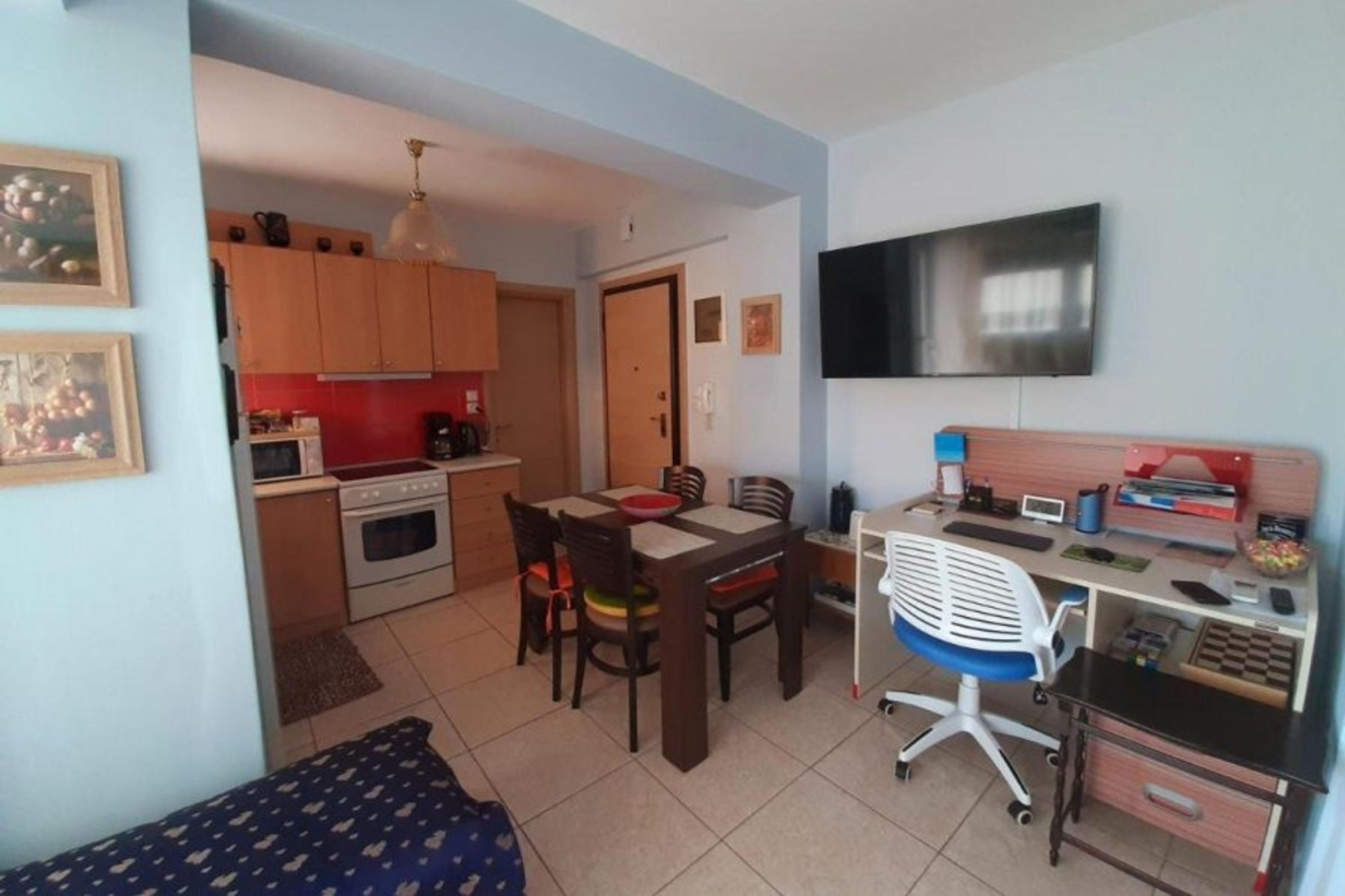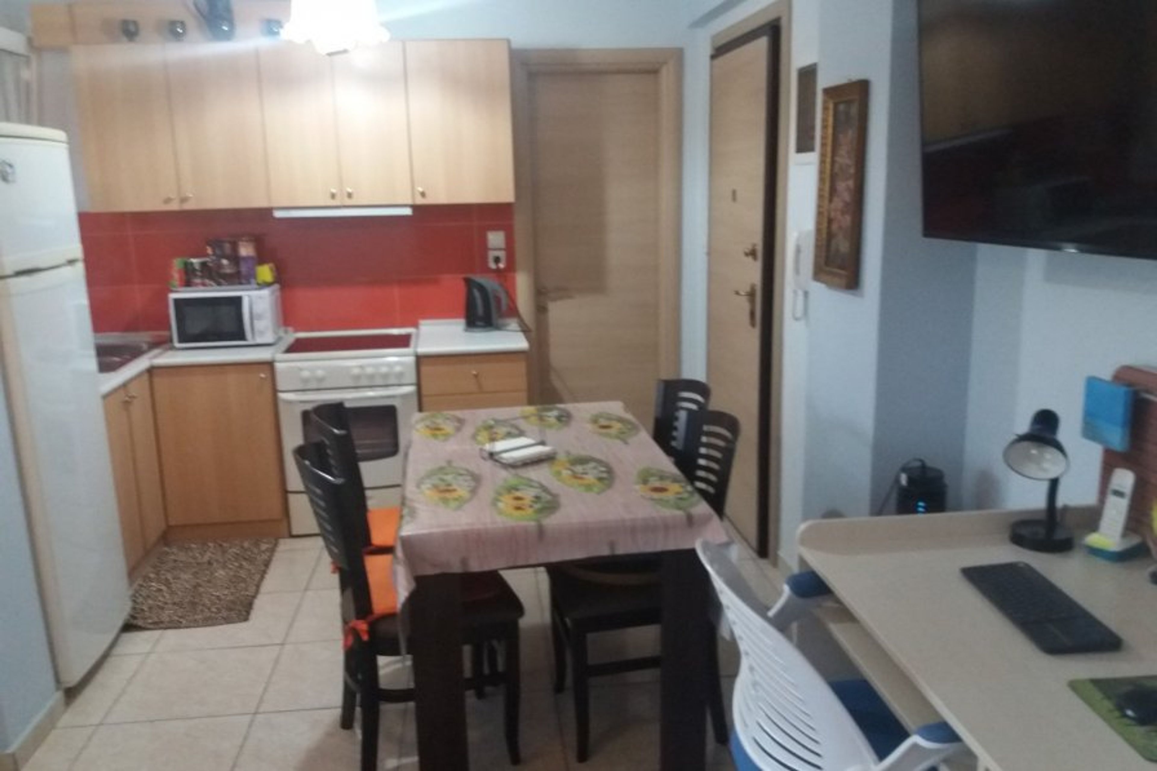 (Internet fiber 100Mbps) Studio 45 sqm fully furnished with 50 and 36 "smart TV with WiFi + Netflix, tablet, Hc kitchen, fridge, microwave, washing machine, water boiler, toaster, coffee maker, espresso, desk, balcony with view, Neighborhood 8 minutes from the center on foot ideal for couples with two children Wonderful views of the city, bus stop 50 meters, distance to the center of Kavala by car 2 min.Fresh water 24 hours a day private parking for your car next to you.A beautiful studio on the ground floor of a privately owned building in a quiet neighborhood of Kavala. Ideal for a couple with one but two children. Smokers are allowed. Unlimited hot water. Bath with a view of the city center. Air conditioning and a fan. Private car parking.The house even though ground floor overlooks the city center the arches and the Castle The proximity to the city center (8 minutes walk) and the tranquility of the area is a combination that is definitely ideal.