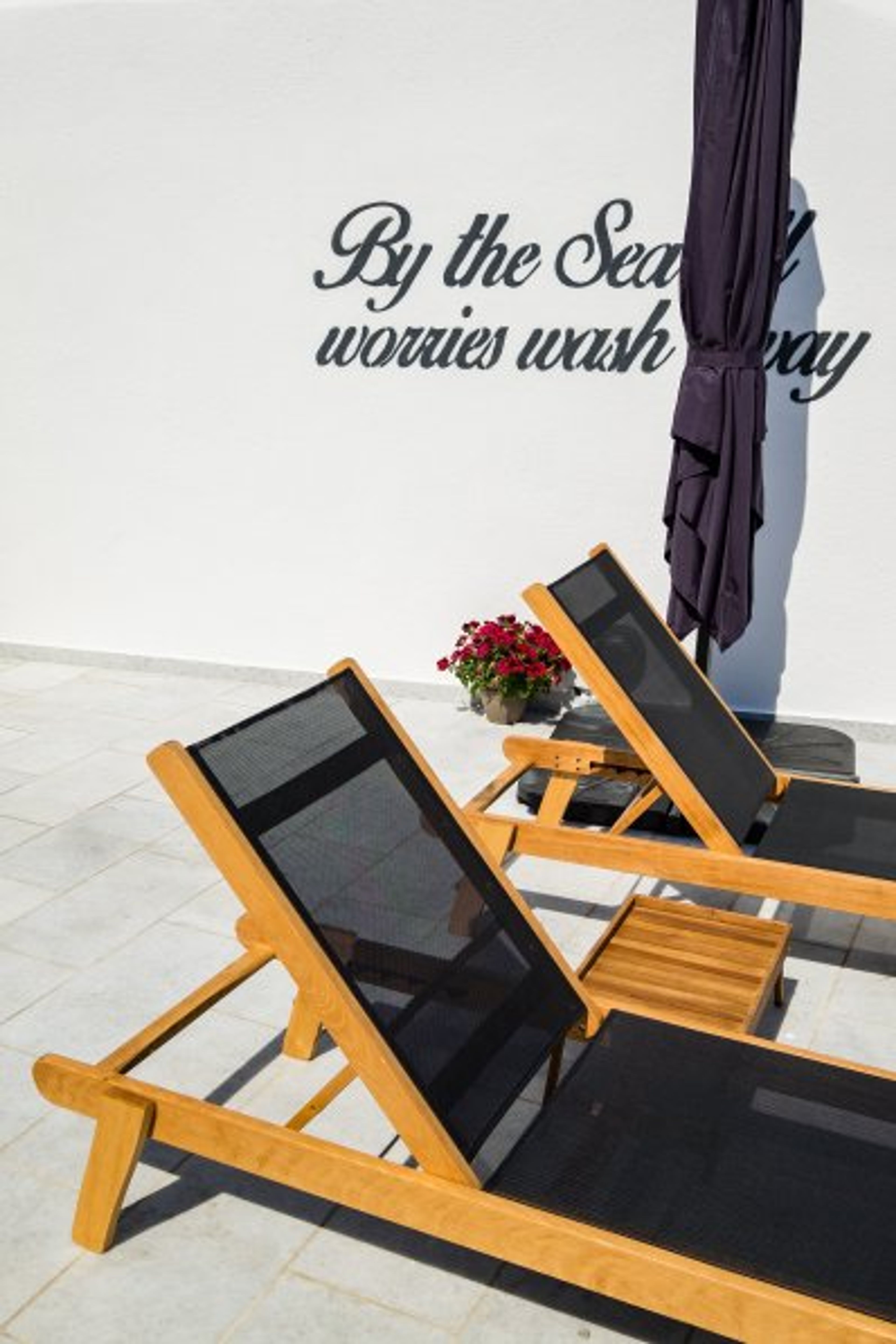 Modern interior design and large terraces with multiple outside sitting areas with a breath-taking view over the horizon, the sea and the surrounded islands.