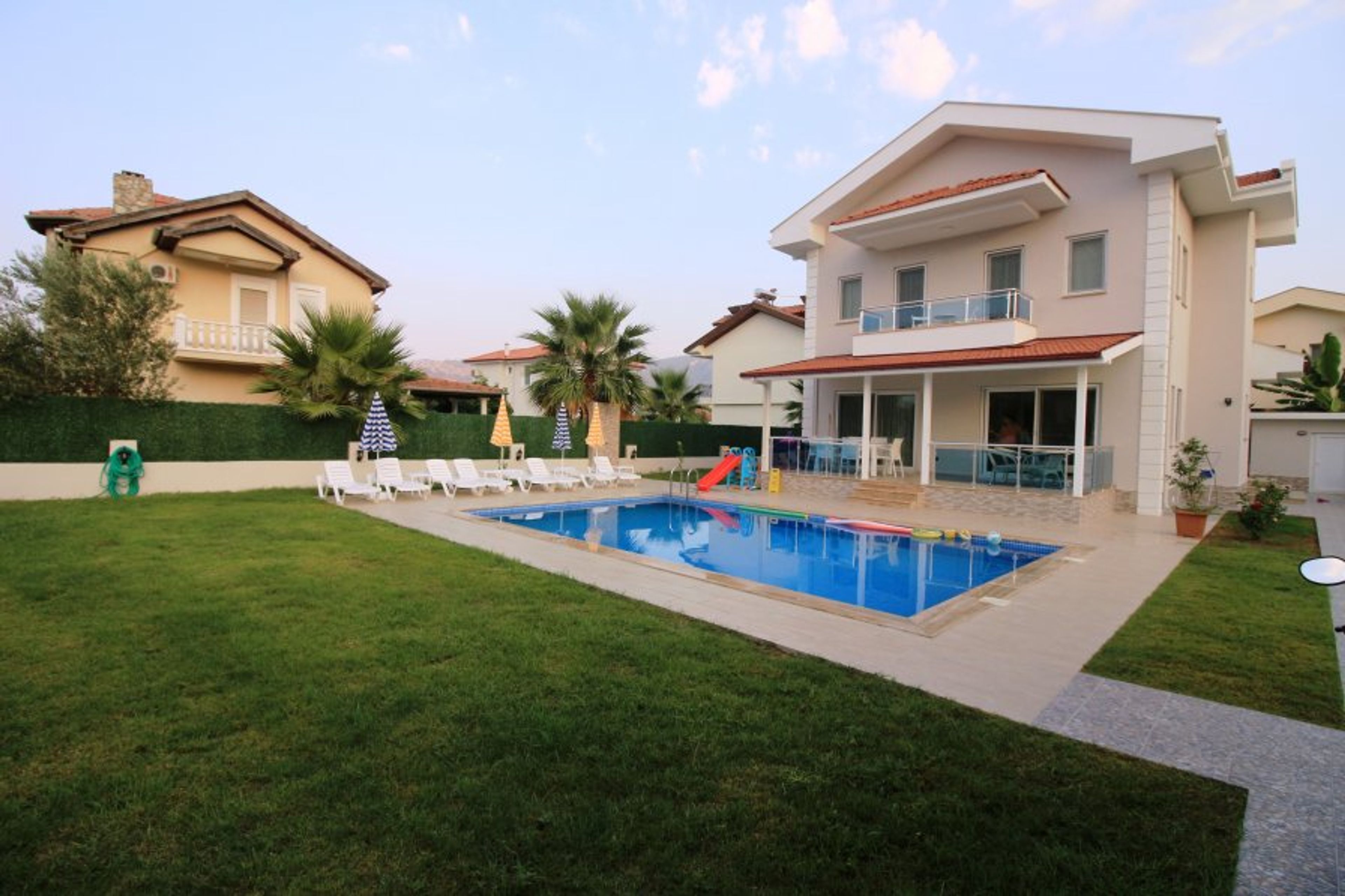 Villa Moonlight is located in Dalyan's most decent neighbourhood Gülpınar. The market is just 100m away, a restaurant at 120m and a shopping centre 750m. Public transport at 700m. Dalyan Channel and the city centre 500m. This is a centrally located, modern holiday villa with a spacious garden.