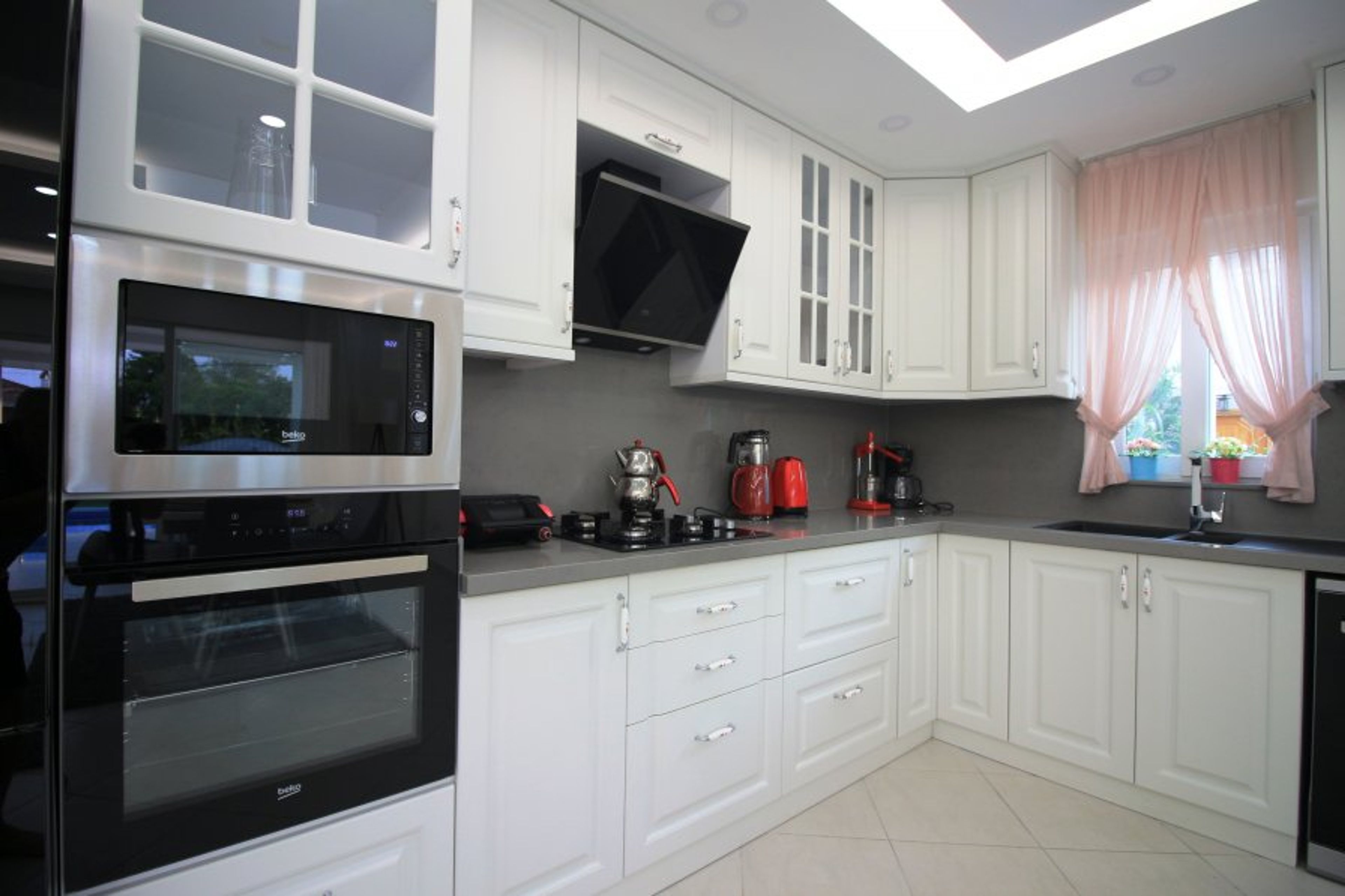 In the highly modern kitchen, you will use the finest products of the finest brands. All kitchen utensils and service supplies are available from the refrigerator to the microwave. There is also a digital steel case.