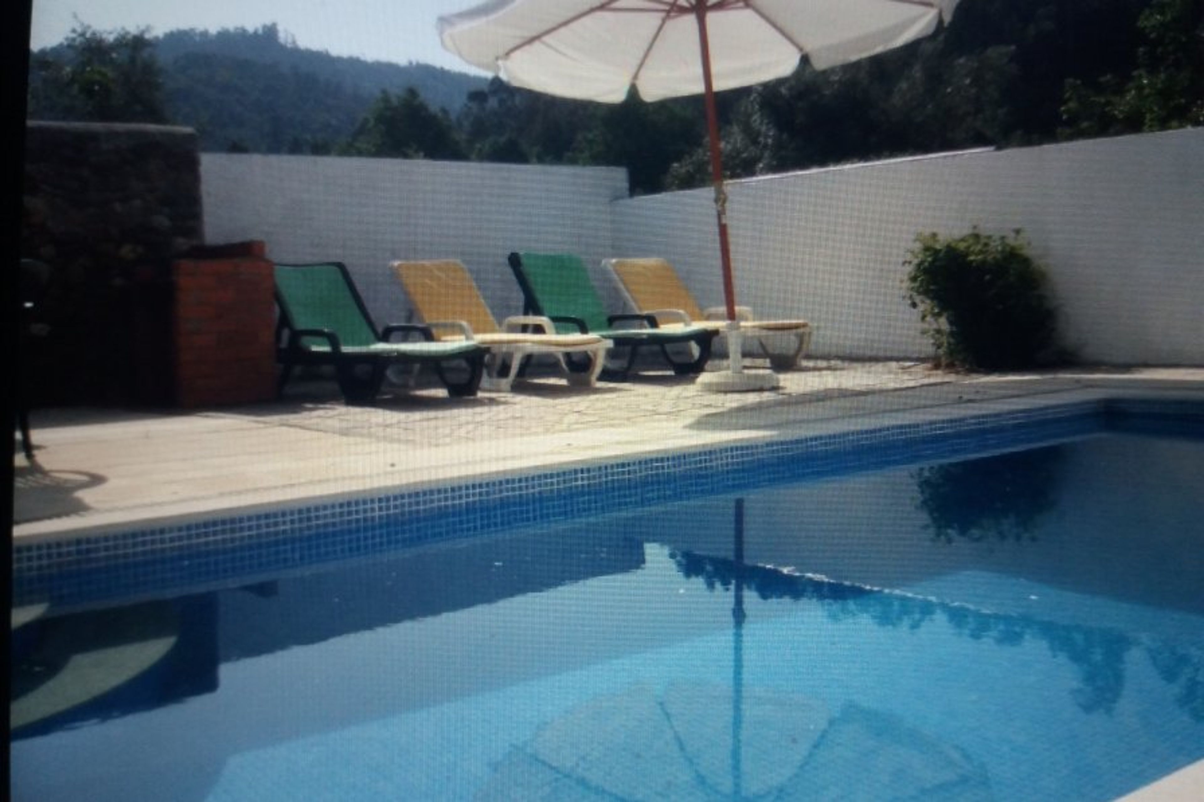 3 km from Arganil this is a detatched rustic property with a definite quirky layout. There are 4 double bedrooms, 2 of which are self contained with access to and from the small courtyard, each with their own wc and shower facilities. There are a further 2 bedrooms upstairs which share a full bathroom including a bath and bidet. Below these bedrooms is the kitchen /dining room which is accesed from the courtyard. The kitchen is fully equiped with fridge/freezer, 4 ring cooker with oven, toaster, kettle, coffee machine. All kitchen utensils with delph and cutlerly are supplied. There is a large dining table and 8 chairs with ample storage space. The upstairs lounge has armchair and settee seating which is child friendly, there is also cable TV and internet free of charge. Off the lounge there is a large outdoor verenda with table and chairs, great for star gazing and sipping a nice glass of vino. Below this area at ground level is where i suspect guests will spend most of their days. Here you will find a concrete build pool and outdoor shower. Loungers and pool towels are supplied and there is also a brick built bar b que. Again there is extra seating supplied around the pool area and the high speed WiFi is connected throughout the property. If you are feeling energetic there is also a cross trainer and exercise bike in the courtyard. The town of Arganil is a mixture of the old and the new. There is a hospital with A&E, 2 large supermarkets Lidl and Intermarche, various shops restaurants. A childrens playground and a number of banks and cashpoints and a large open air market every thursday makes Arganil the place to base yourself. There is a tourist office where lots of imformation can be had regarding the abundance of outdoor activities available.
