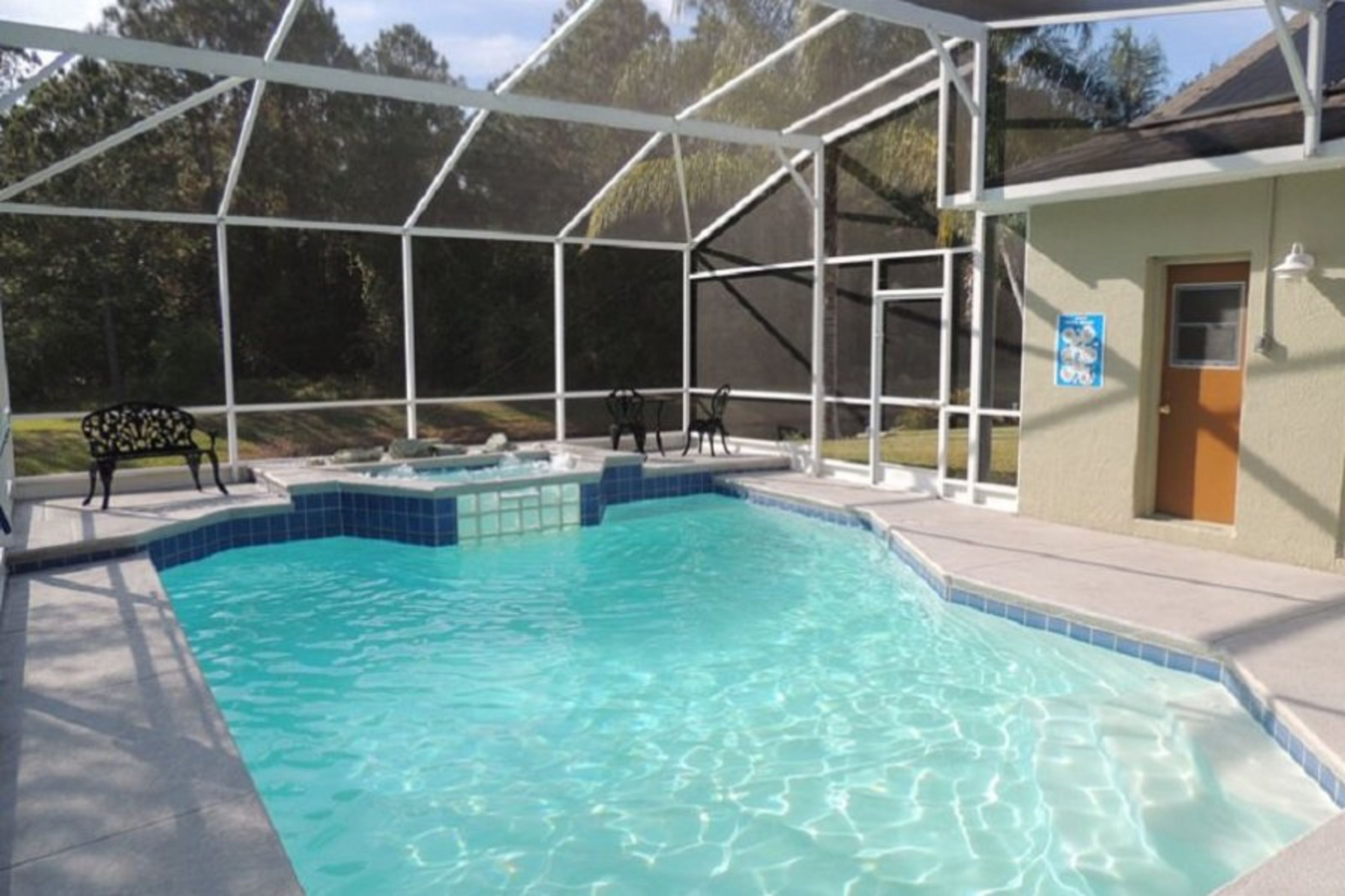 The pool is 15 x 30 and is fully screened. There is a patio table & chairs & plenty of pool furniture to make the most of the Florida sunshine. Guests have the additional solar heat in to the pool at no extra cost. Extra pool heat can be purchased for the cooler months