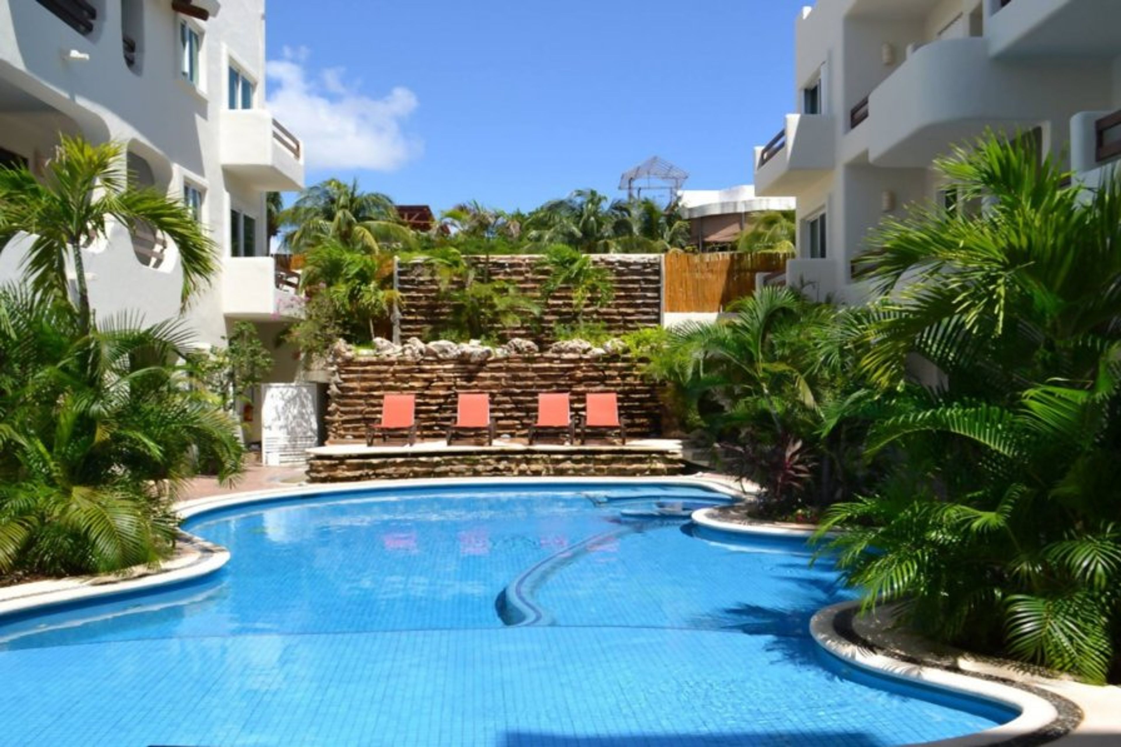Hot location! Your home away from home awaits. Conveniently located on 12 Street between 10 & 15th Avenue. The condo is a quiet oasis in the center of downtown Playa. A beautiful second floor, 1,100 square feet, two-bedroom, two-bath end unit with two private balconies overlooking the pool in a serene corner of the building’s courtyard. Just steps away from famous 5th Avenue shopping, restaurants, and beach. Gated building with 24-hour onsite doorman and one reserved off-street parking spot.