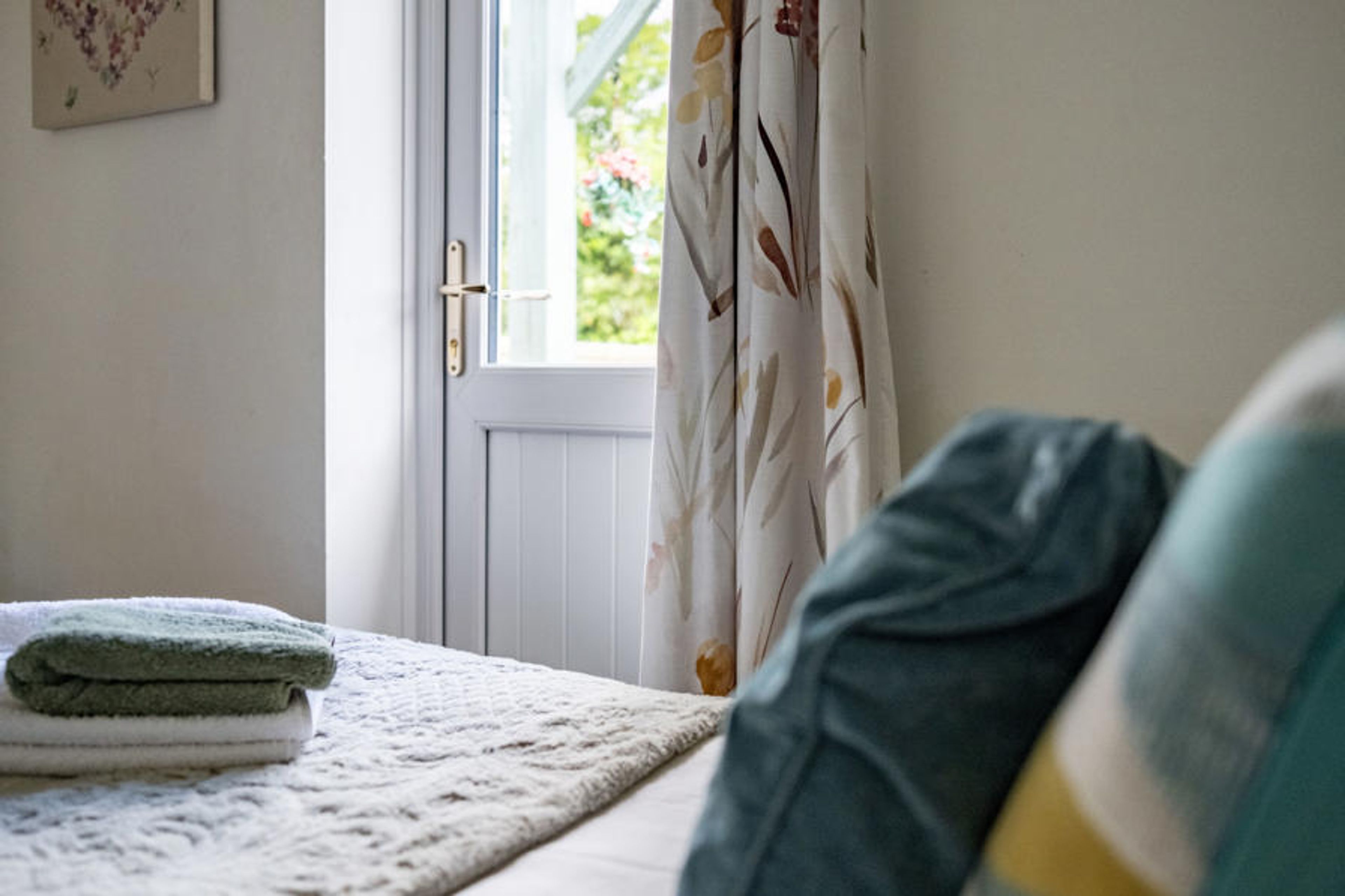 "Ash Cottage", 4-room bungalow 54 m2. Comfortable and cosy furnishings: living/dining room with dining table and TV (flat screen), DVD. Exit to the garden. 2 rooms, each room with 2 beds. 1 room with 1 double bed. Open kitchen (4 hot plates, oven, dishwasher, microwave). Bath/shower/WC. Oil heating. Garden. Terrace furniture, barbecue. Facilities: children's high chair, baby cot for up to 3 year olds. Internet (WiFi, free). Parking (2 cars). Maximum 1 pet/ dog allowed.