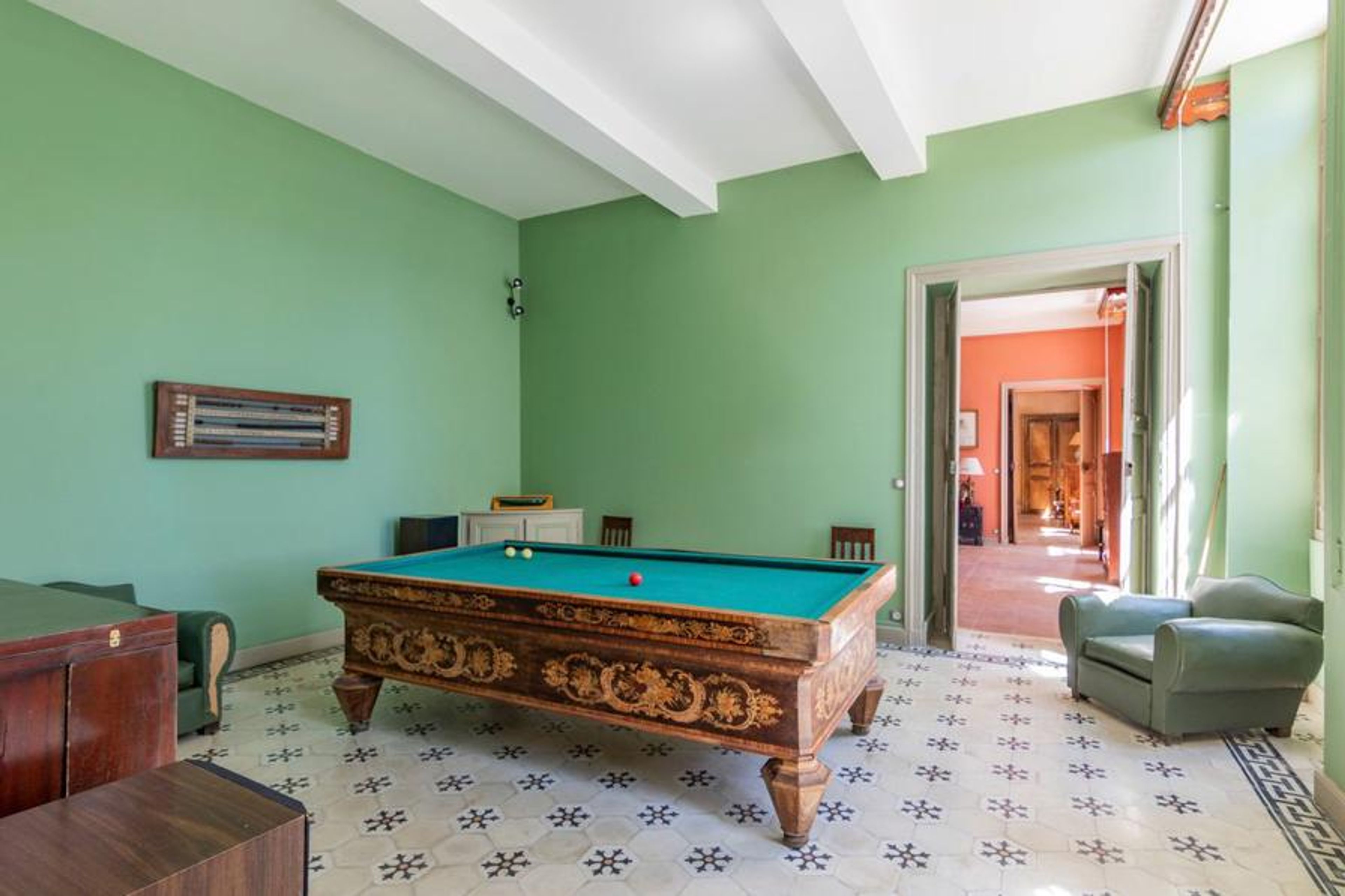 Inside, the style of the modern-day château is one of rustic charm and rural warmth, with twelve charming bedrooms featuring sweet and comfortable furnishings, delightful living and dining rooms, a games room with French billiards and a historic library featuring thousands of books.