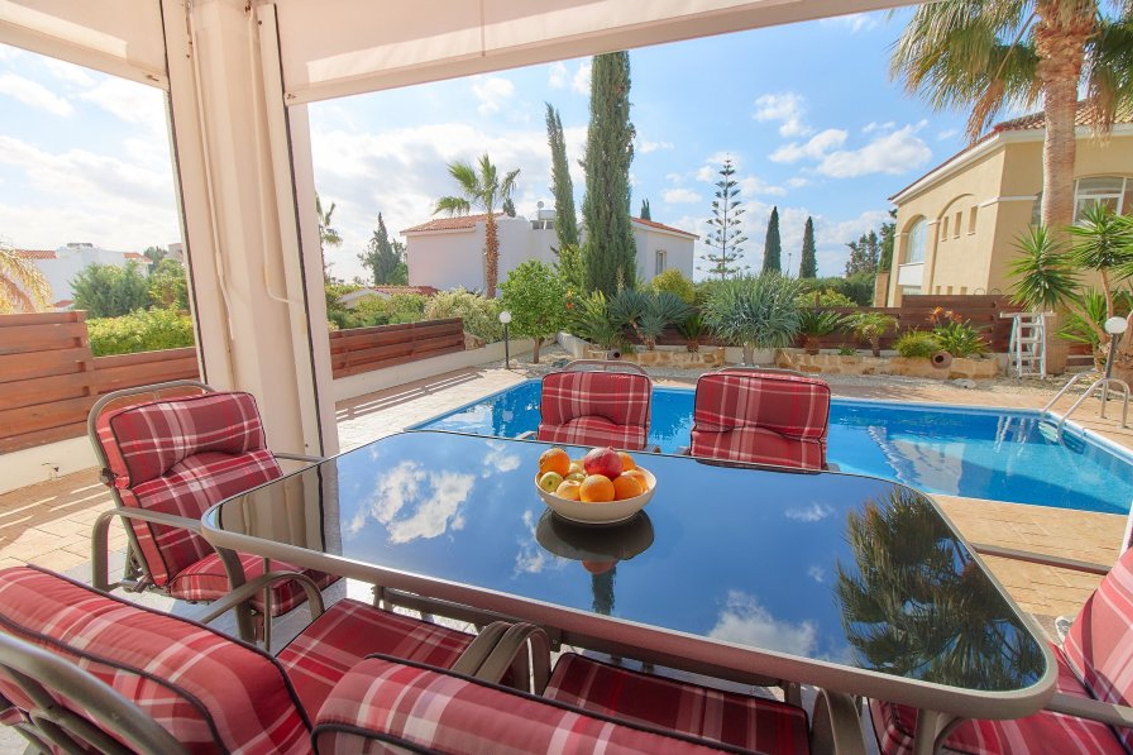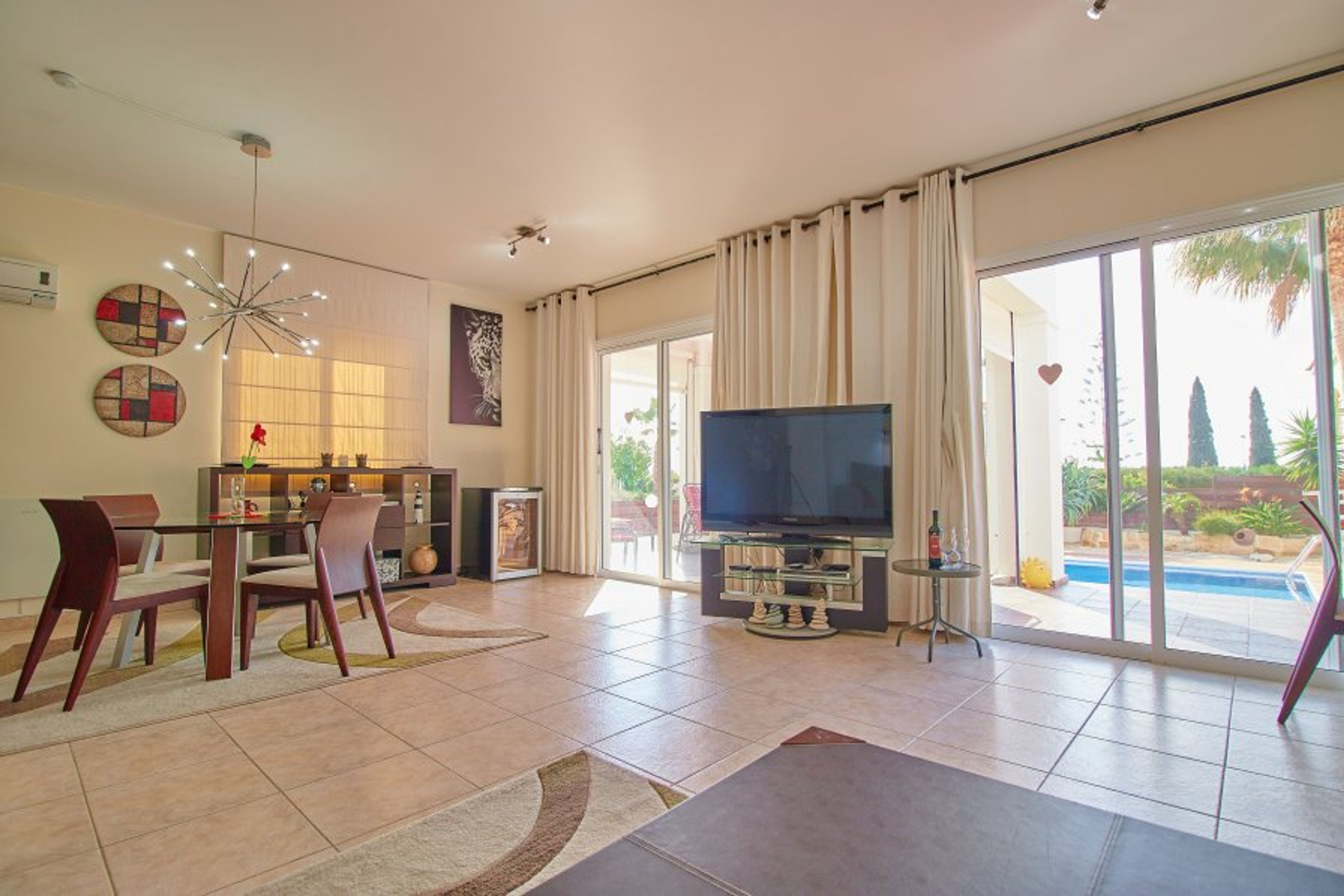 Coral Bay approximately is the well known beach resort for the Paphos district and has become a lively resort with plenty to offer in terms of amenities and activities. The center of the resort features a wide selection of restaurants offering both Cypriot and International Cuisines, cafes, bars, shops, a choice of supermarkets, several banks, a chemist and a laundry. The resort boasts two sandy beaches, the closest one to the villa being Corallia Bay, the quieter of the two. Thepopular and busy Coral Bay Beach, a sandy horseshoe shaped bay honoured with a Blue Flag of the European Union. Sunbeds and umbrellas are available for hire, water sports are on offer and there are two beach cafes providing refreshments. You can enjoy water sports here. Untouched nature and clean beaches, orchards and banana plantations, fruit gardens surround this area of Paphos. Protected zone of Akamas National Park only 5 km from the villa. Popular zoo with birds park located in a few kilometers from the villa. All kinds of infrastructure, such as a supermarket, mini markets, various shops, bars, restaurants, bank, bus stop, children's play center are within walking distance from the villa.
