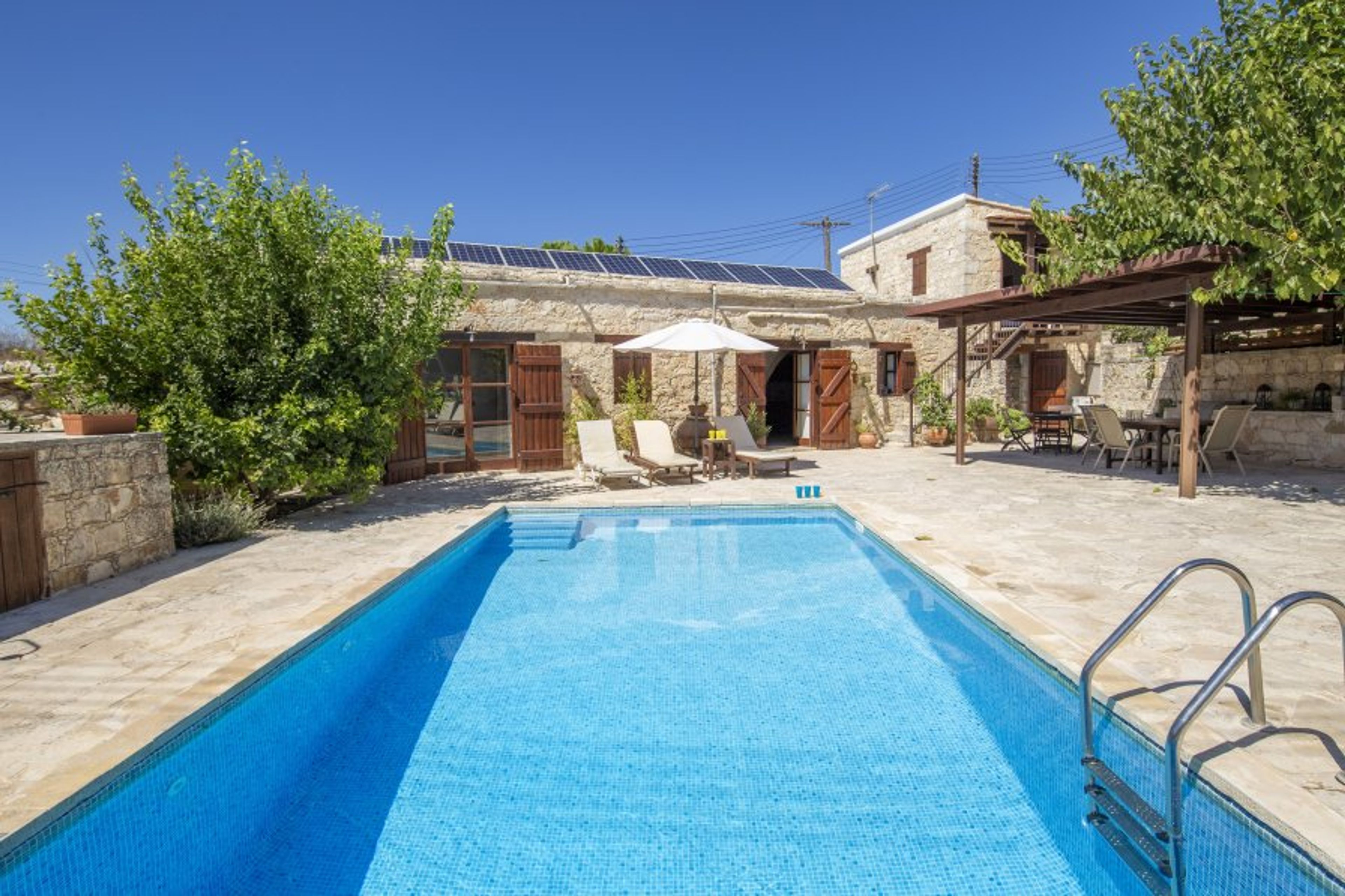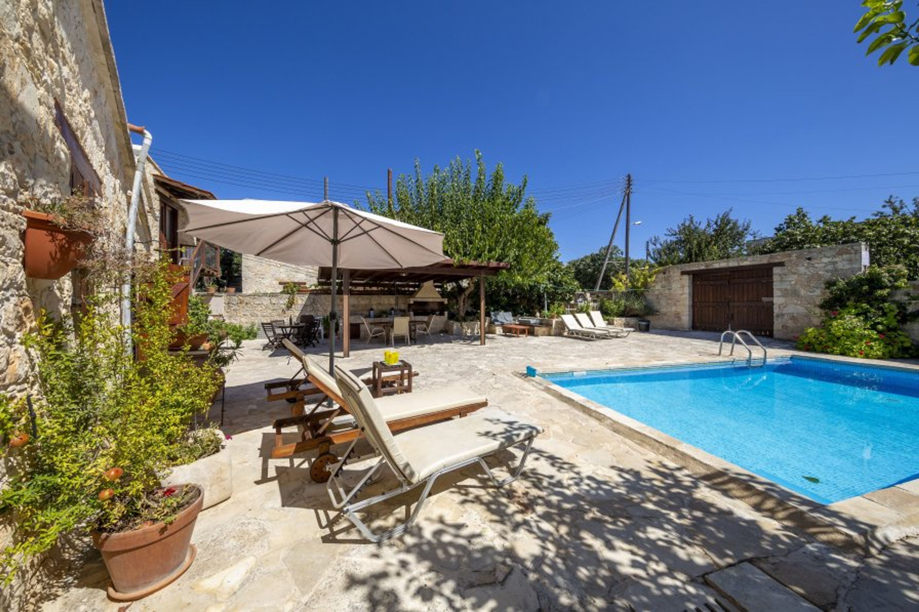 Privately set within a walled courtyard, this 19th Century (1883) 4 bedroom stone built property has been renovated to a high standard and offers the most traditional Cypriot village holiday that one will find anywhere on the island. Located within a district of vineyards and moorlands with wineries and Kathikas village centre just a stones throw away, the villa now enjoys all modern comforts without losing any of its authenticity which is simply stunning to say the least.