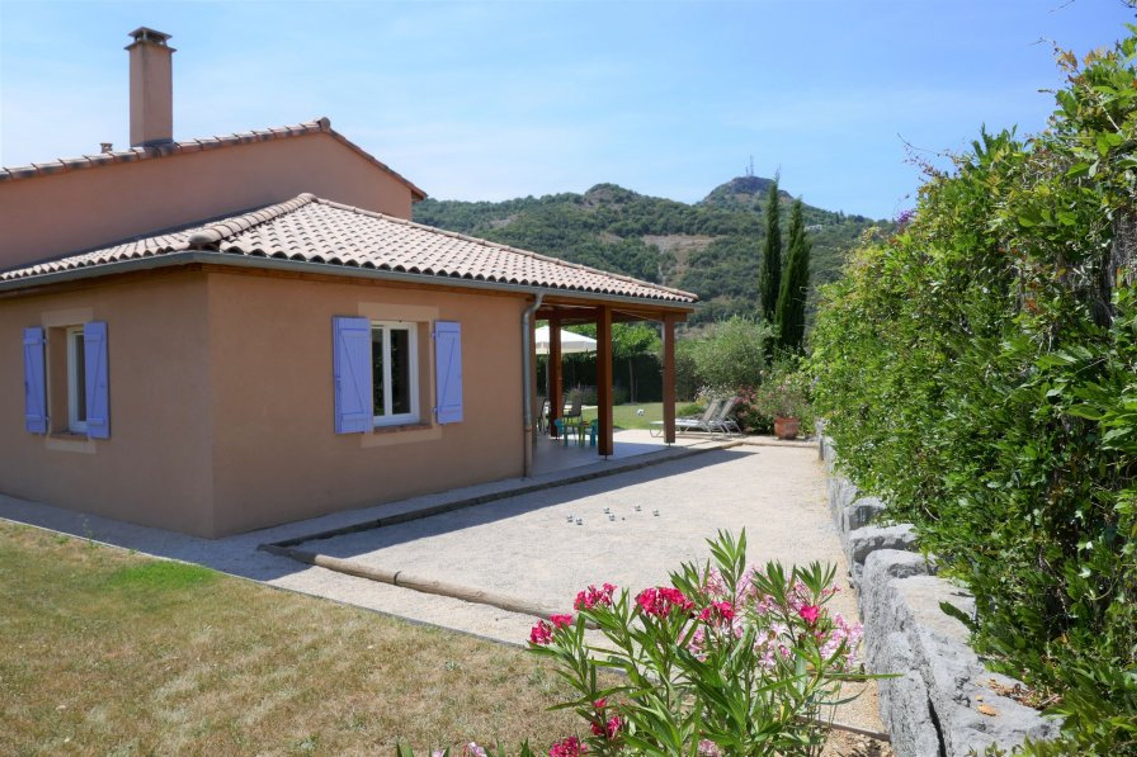 The villa is located near the large communal swimming pool in the beautiful holiday park Les Rives des L'Ardeche, near the small river l'Ardeche. Our house is baby friendly, cot, high chair and changing mat present in the house. The cozy village of Vallon-Pont-d'Arc is a short distance from the park, here you will find all kinds of facilities. At the holiday park you can use the communal outdoor pool and tennis courts free of charge. The villa is situated on a spacious plot of 1000m2 with parking for 3 cars.