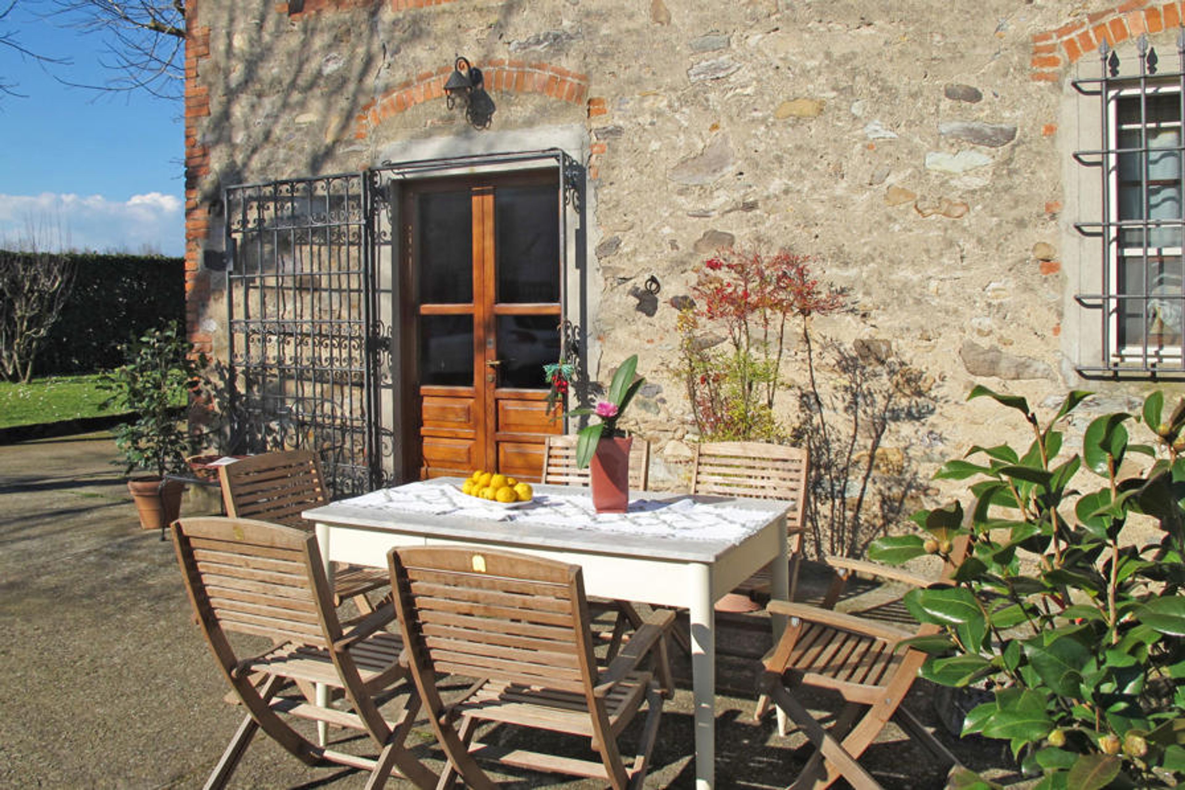"Il Rustico", 3-room cottage 75 m2 on 2 levels. Beautiful and cosy furnishings: living/sleeping room with 1 double sofabed, dining table and satellite TV. Exit to the terrace. Open kitchen (4 hot plates, oven, dishwasher, microwave, freezer, electric coffee machine). Upper floor: 1 room with 1 french bed (160 cm). 1 room with 2 beds. Shower/WC. Gas heating (extra), air-conditioning. Terrace. Terrace furniture, barbecue (portable). View of Castelvecchio di Compito Alto. Facilities: washing machine, iron, children's high chair, baby cot for up to 2 year olds. Internet (WiFi, free). Parking at the house. Please note: non-smokers only. Maximum 1 pet/ dog allowed. Smoke alarm, fire extinguisher. IT046007C28WDHQ47U