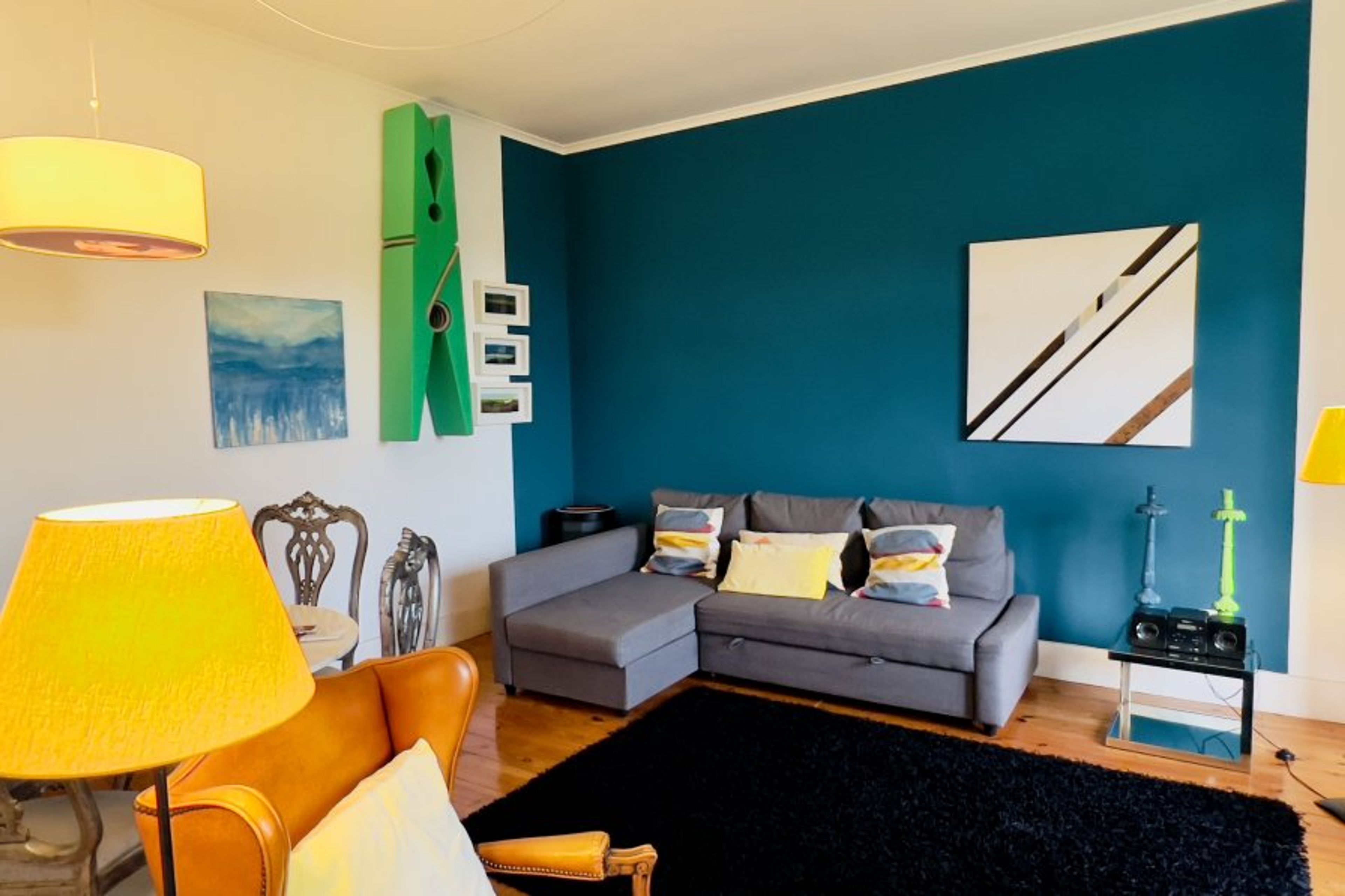 Measuring approximately 100 m², you will find a beautiful and characteristic apartment with two bedrooms, one bathroom, a living room, a fully equipped kitchen, a dining area and an abundantly “green” balcony.