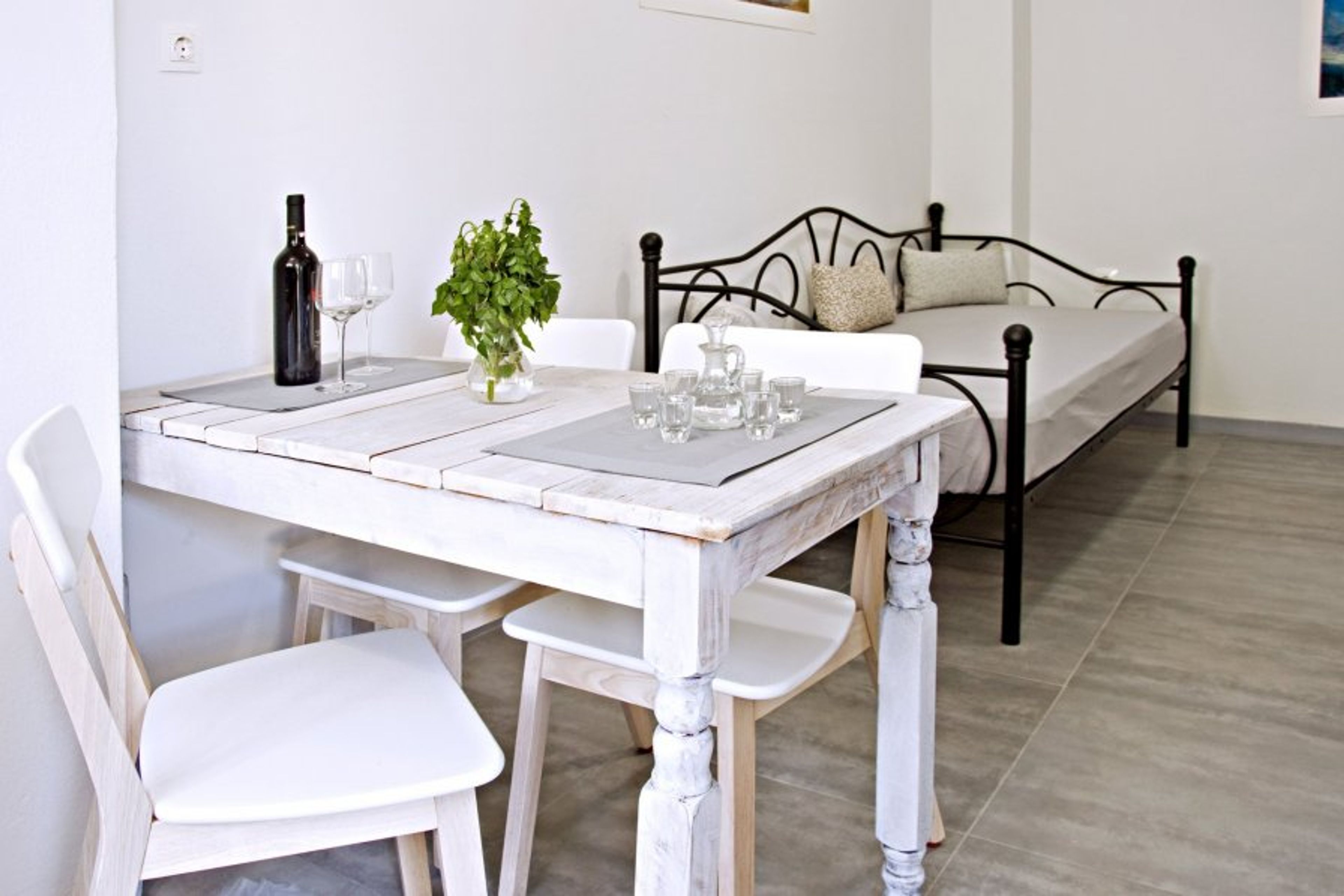 Το διαμέρισμα βρίσκεται στον πρώτο όροφο τριώροφου σπιτιού, 45 τμ με ανοιχτό χώρο, κουζίνα πλήρως εξοπλισμένη με όλα τα απαραίτητα για τη δημιουργία πρωινού, μεσημεριανού και βραδινών γευμάτων, τα οποία μπορείτε να απολαύσετε στην άνετη τραπεζαρία του.
