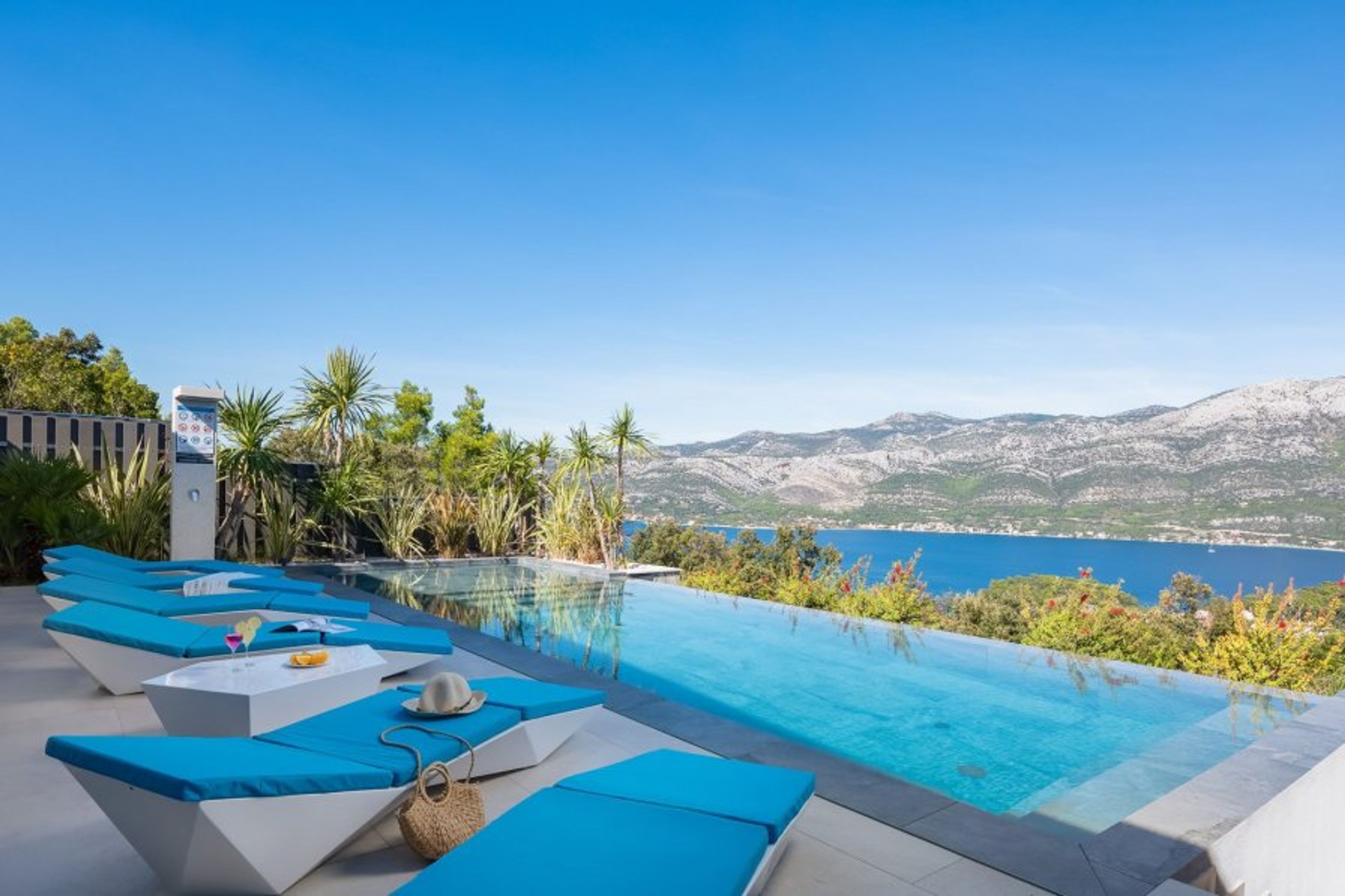 Luxury Villa Korcula Diamond with 2 infinity pools is one of the most luxurious high-end mansions on the Adriatic. This brand new holiday rental is located on the island of Korcula, which is known as the birthplace of Marco Polo. Luxury Villa Korcula Diamond is secluded above the quiet bay of Zrnovska Banja and offers complete privacy and amazing sea views.With its unique architecture, modern interior, and top amenities, it is the perfect accommodation for an unforgettable vacation experience.Luxury Villa Korcula Diamond consists of two independent units, meaning if you are in a big group you can still have your privacy. The upper unit has 3 bedrooms, 4 bathrooms, a cozy living area, a fully equipped kitchen, 35 m2 infinity pool, and a huge sundeck.The lower unit has the same facilities as the upper: private living room, kitchen, infinity pool (40 m2), sundeck, 2 bedrooms, and 3 bathrooms. Each bedroom has a comfortable king-size bed and an en-suite bathroom.Luxury Villa Korcula Diamond with two swimming pools is perfect for couples or families. The villa has a Bose multi-room surround system, Daikin air-conditioning system, security glass windows, premium furniture, and 2 Weber barbecues.The villa is located 1 km from the restaurants and bars.