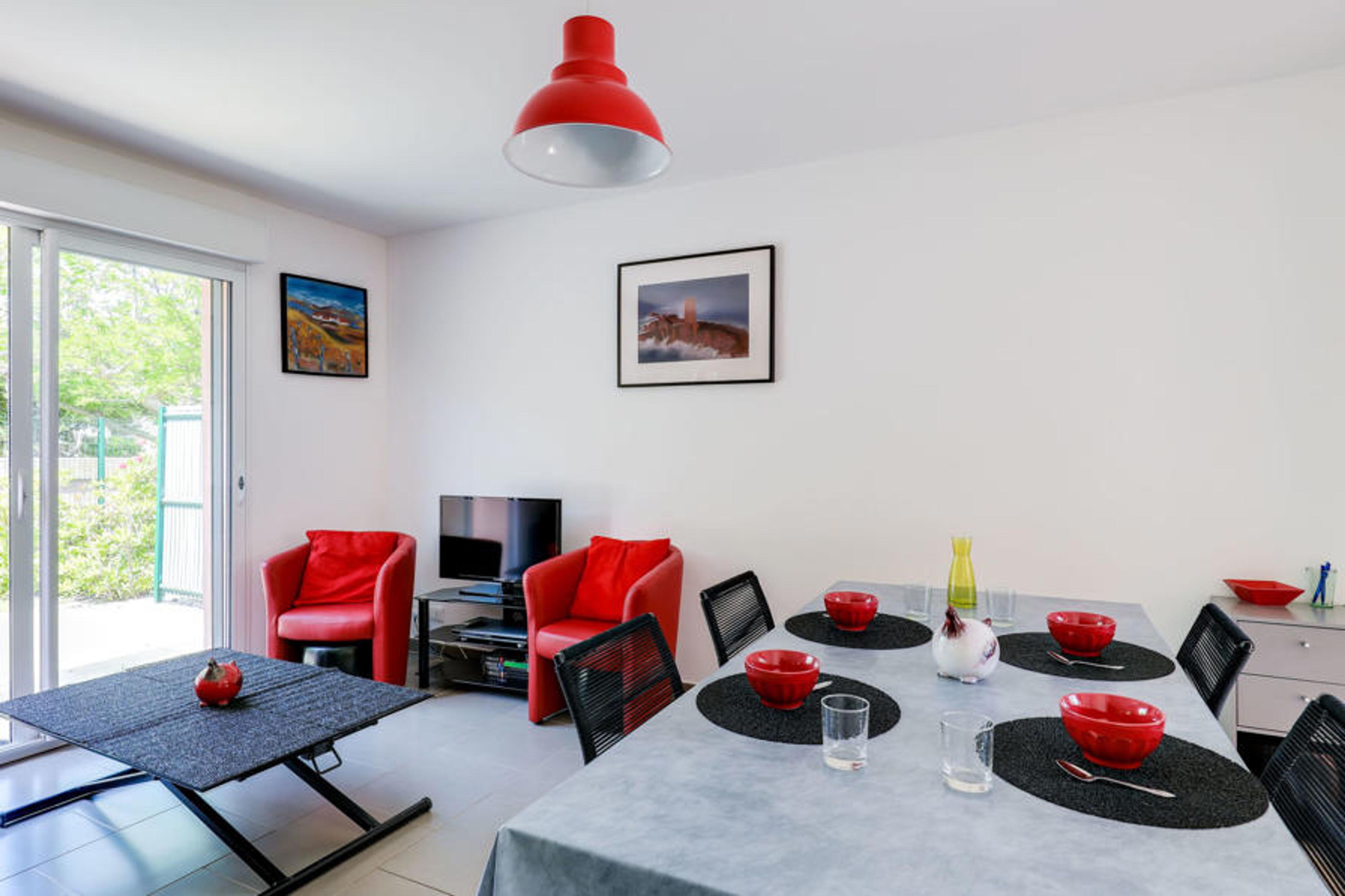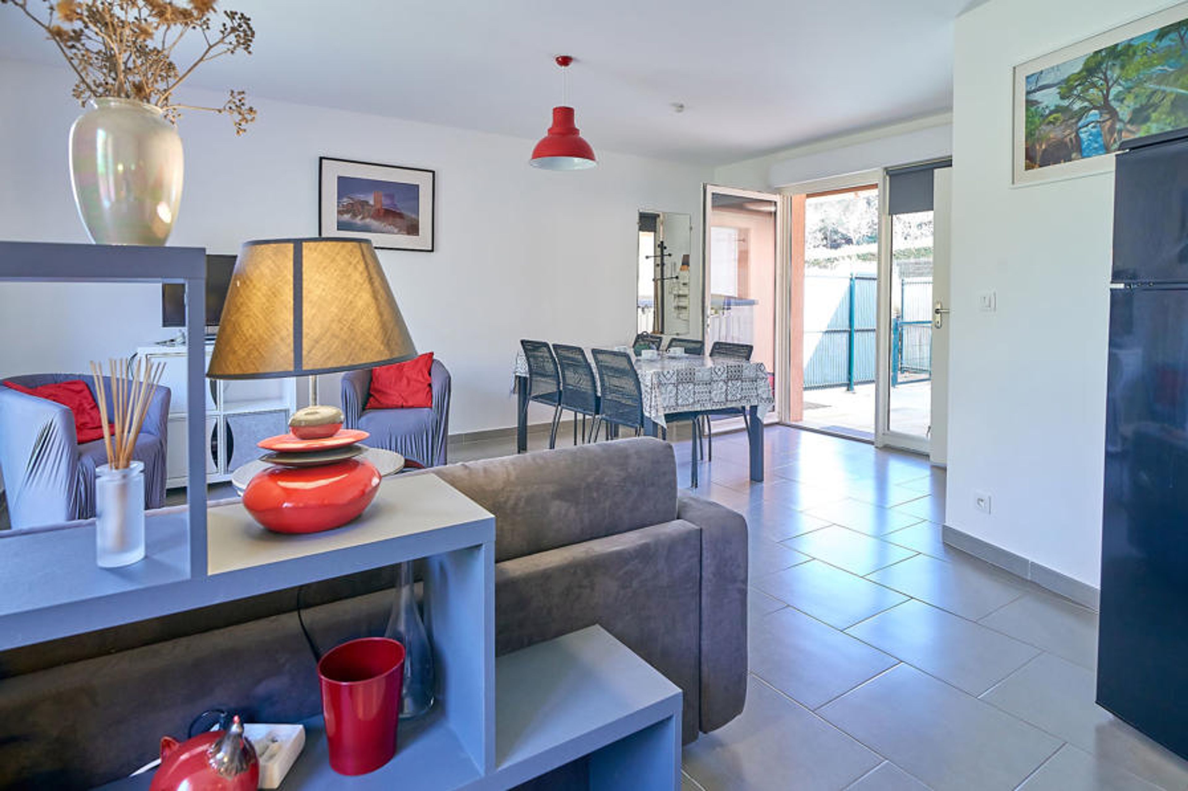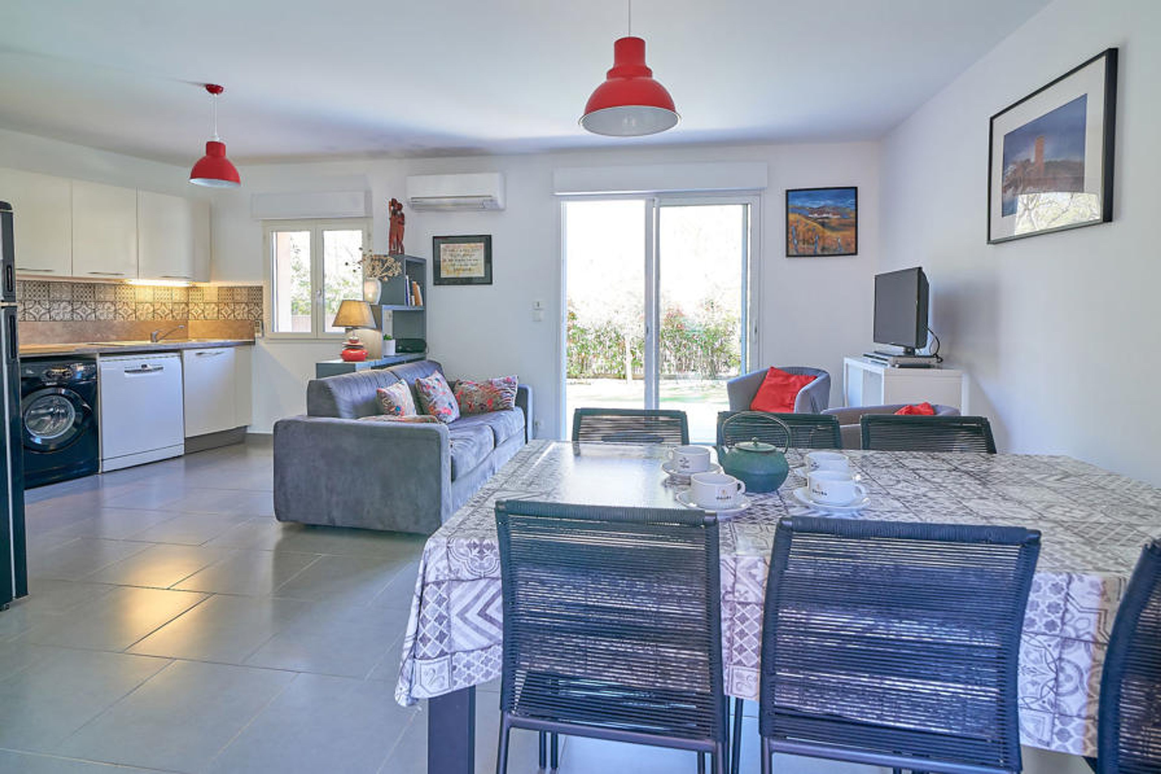 2-room semi-detached house 47 m2. Fully renovated: living/dining room with 1 double sofabed (1 x 140 cm, length 190 cm), TV, electric heating and air conditioning. Exit to the terrace. 1 room with 1 french bed (1 x 140 cm, length 190 cm), air conditioning. Exit to the terrace. Open kitchen (oven, dishwasher, 3 ceramic glass hob hotplates, toaster, kettle, microwave, freezer, electric coffee machine). Shower/WC. 2 terraces 30 m2. Terrace furniture. Facilities: washing machine, iron, hair dryer. Internet (WiFi, extra). Parking space n 38. Please note: non-smokers only. TV only FR. Smoke alarm.
