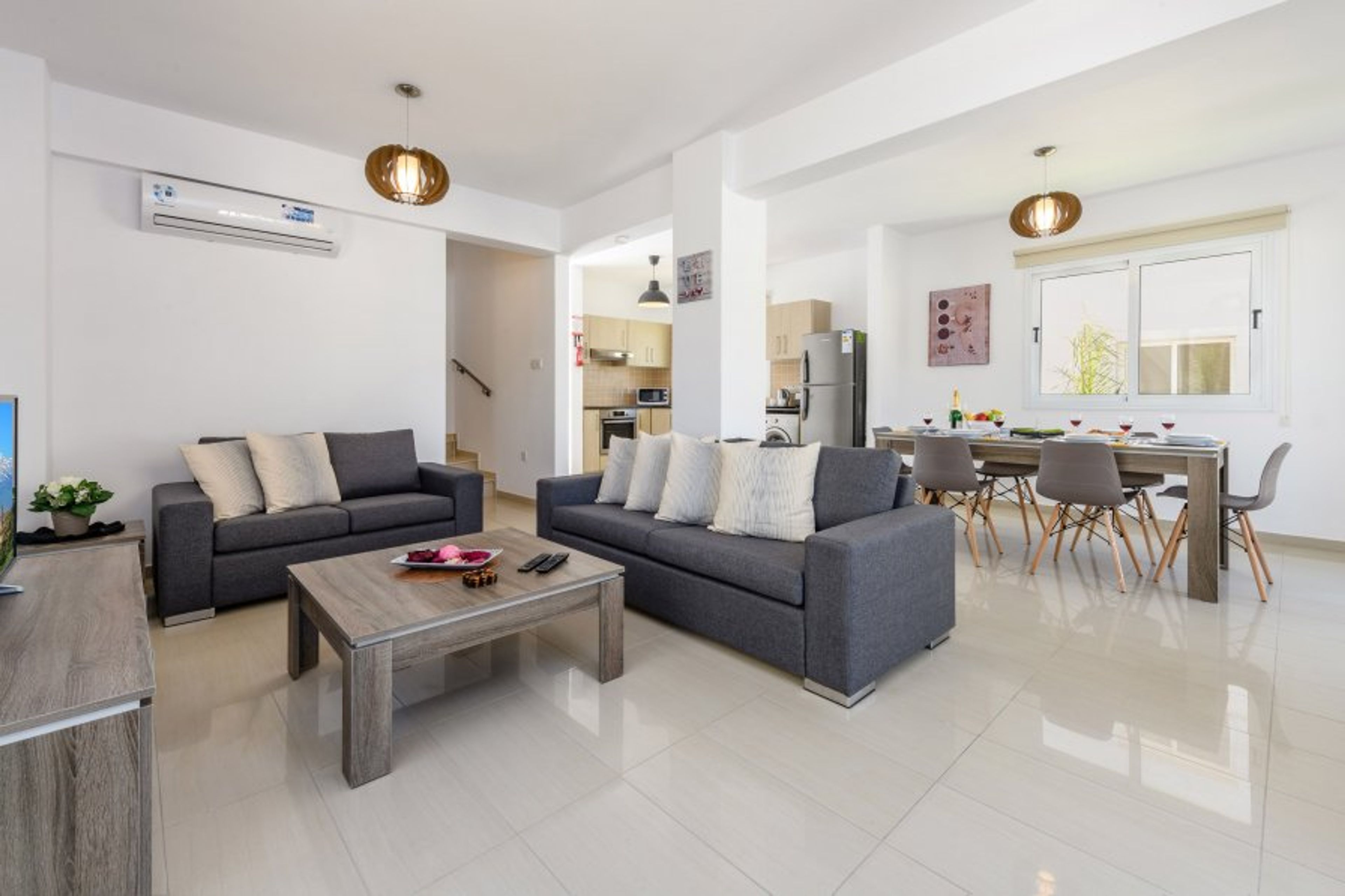 In just a few minutes walk from the villa guests have access to mini markets, restaurants, shops and bus stops going to Protaras.