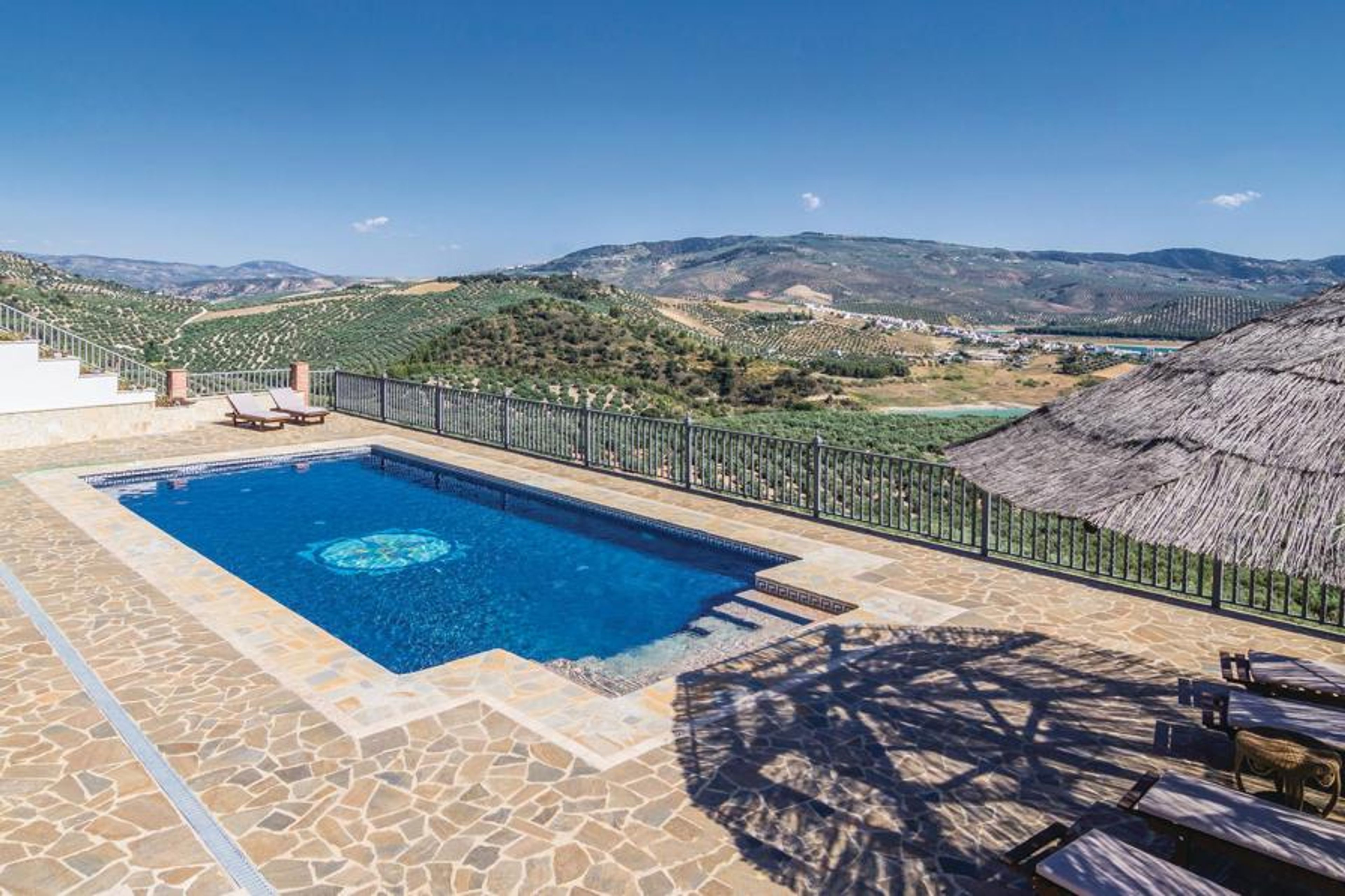 Fantastic vacation home for 8 people with a great pool overlooking the lake, offering plenty of privacy and outdoor space. You can enjoy the barbecue, outdoor gazebo, outdoor ping pong table and 8 sun loungers for the pool or use the air conditioning and comfortable 2 meter beds inside. With its spectacular panoramic views of the lake, the mountains and the town of Iznájar, this villa offers the perfect location to explore Andalusia. It is located between the cities of Cordoba, Malaga, Seville and Granada and of course close to many other interesting places like El Torcal de Antequera. There is also a large parking lot on the ground, the entire perimeter of which is bordered by walls in the back and surrounded by fences in the rest. The comfort of the interior, such as the fireplace and heating, make this house an ideal place also for a winter vacation.