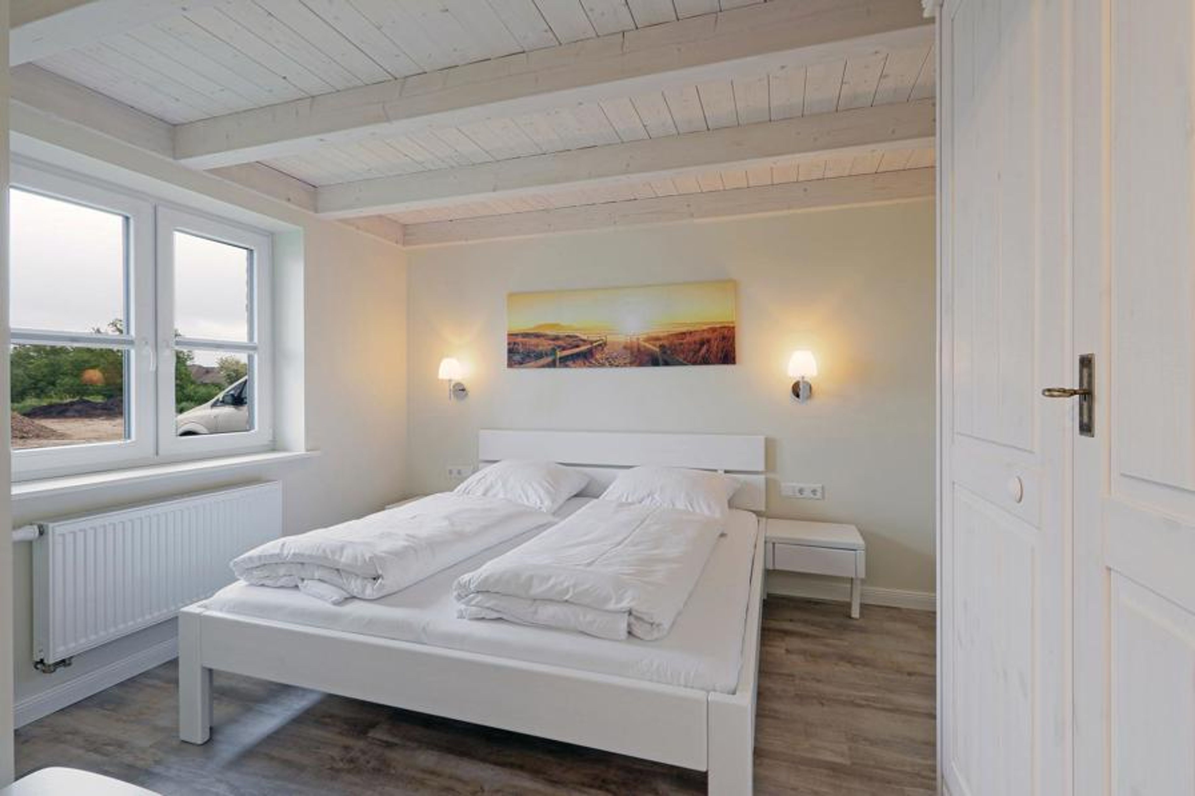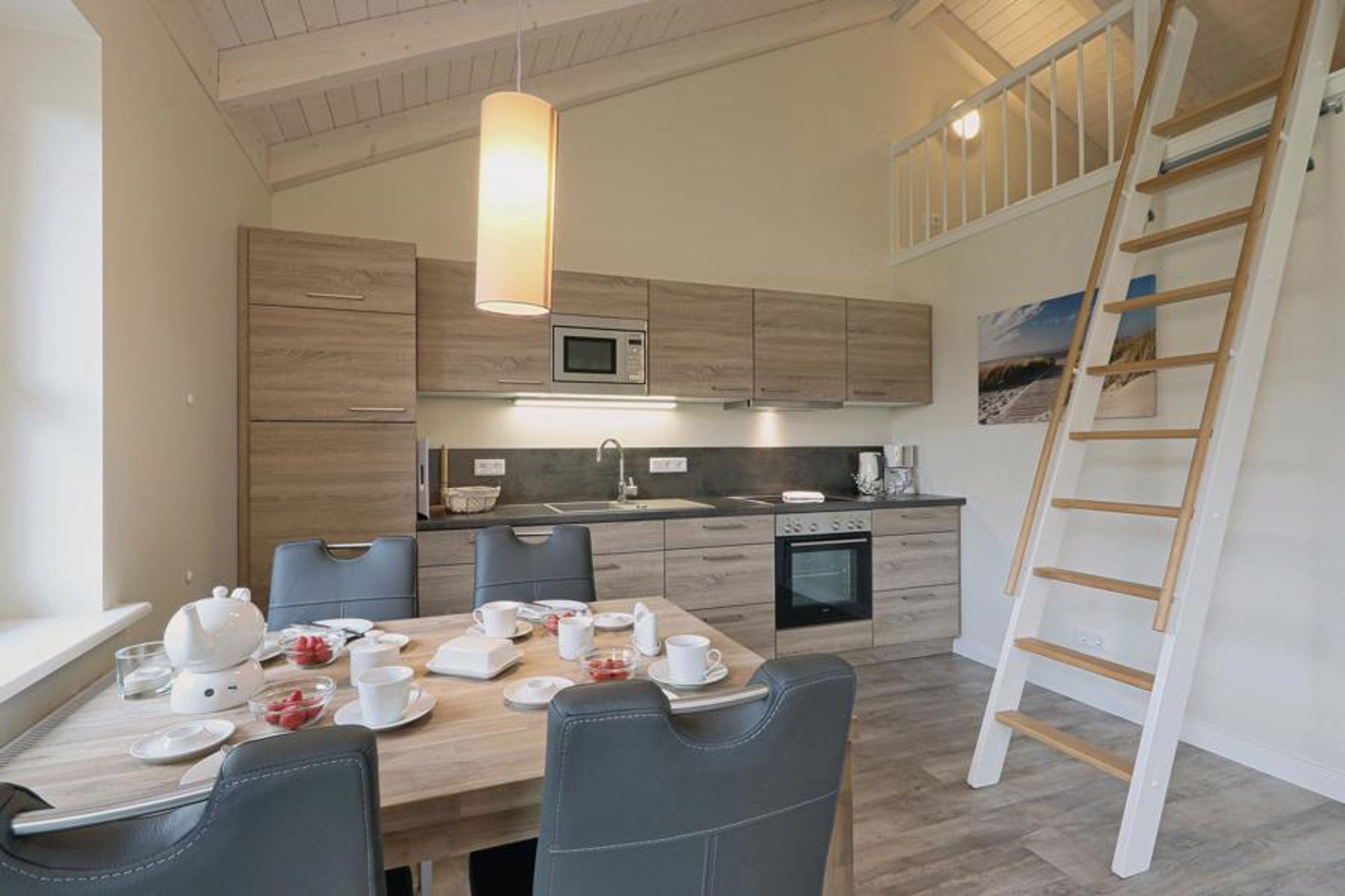 The brick-built semi-detached house is modern and cosy. The rooms are bright and flooded with light thanks to the open-plan design. In the living/dining area there is not only a cosy sofa corner with a wood-burning stove, but also a modern kitchenette and a dining area for up to four people. So there is plenty of space for socialising with visitors. The other half of the house can be found under the number DSH892 - ideal, for example, for couples travelling together who value privacy.