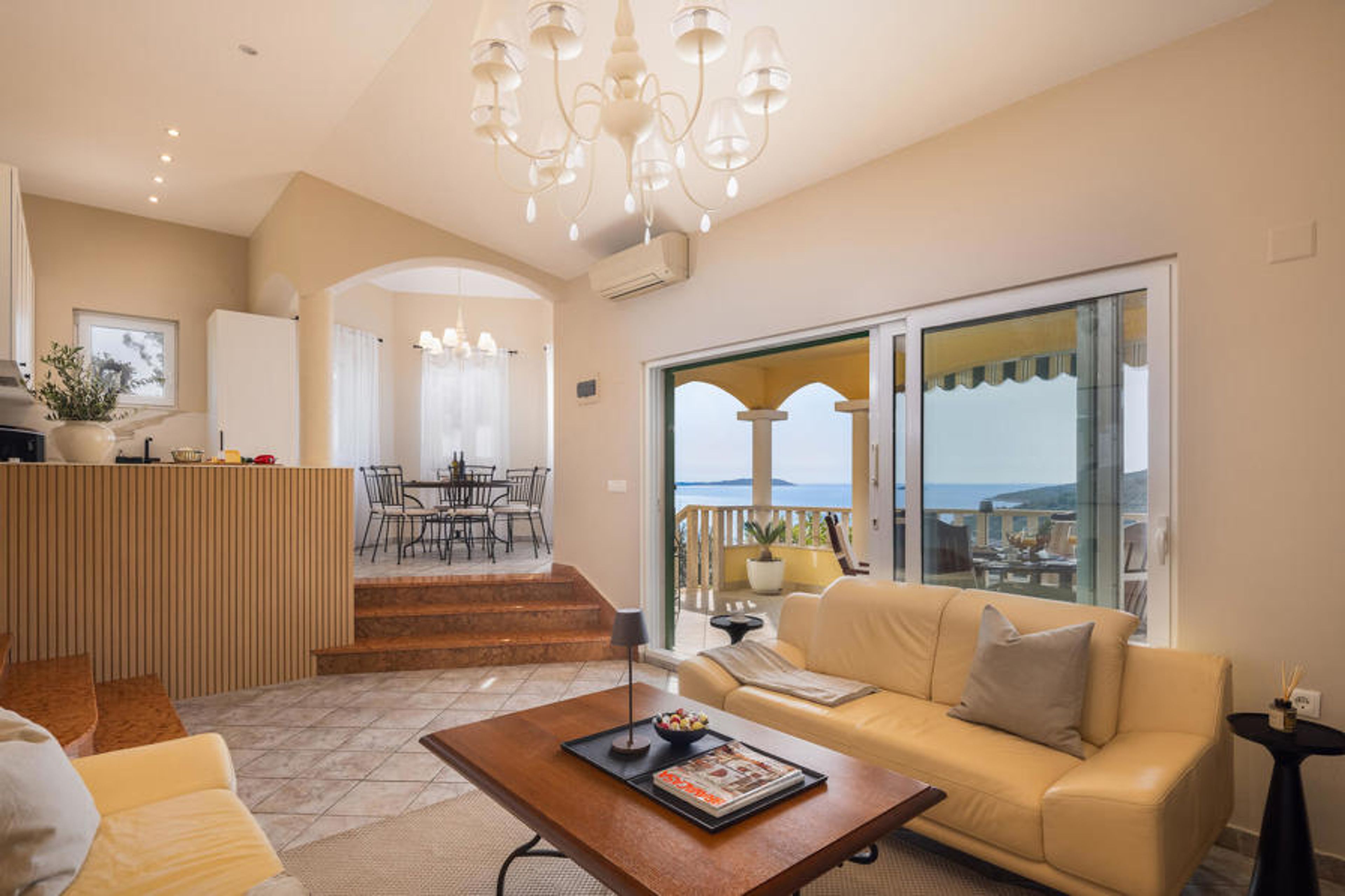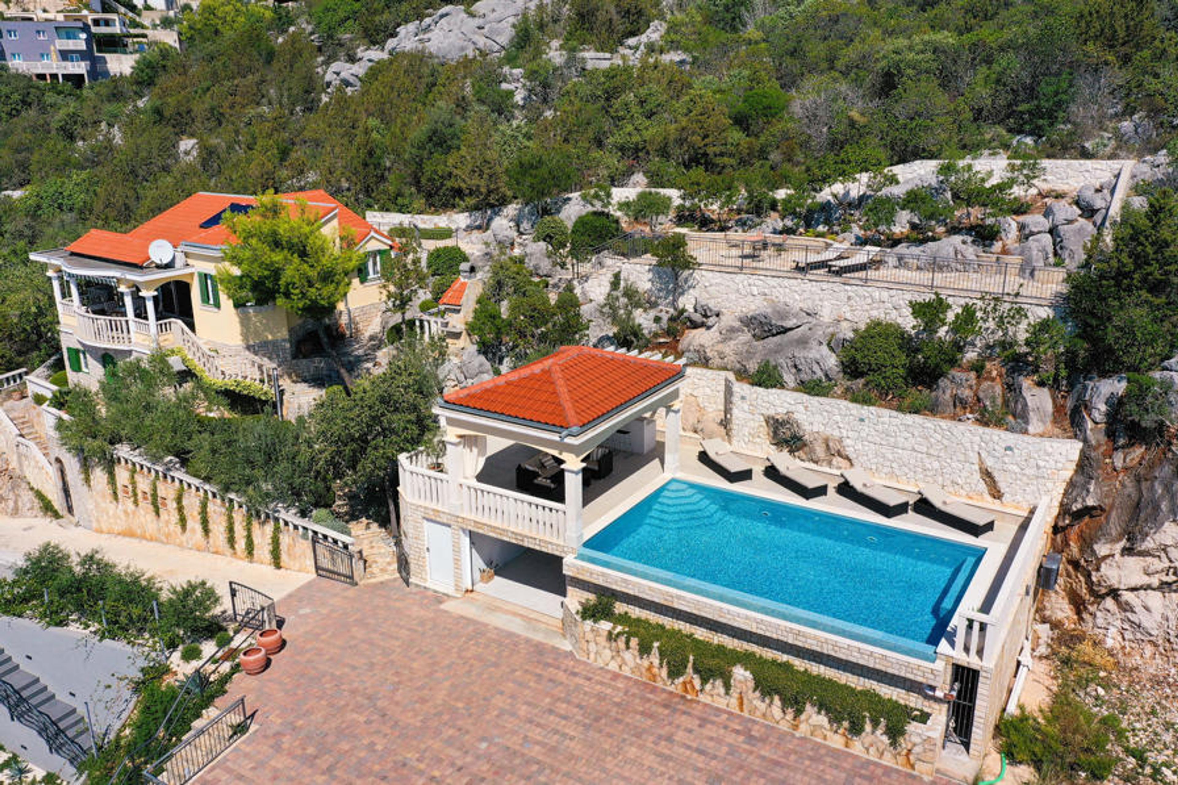 If you want to spend a dreamlike vacation with a lot of comfort then you are exactly right here! This magnificent and very tastefully furnished villa leaves nothing to be desired. It is beautifully located near the rocky coast with an unforgettable panoramic view over the azure Adriatic Sea. The small apartment on the first floor has a bedroom, a bathroom and a small kitchen and is connected to the second floor by an external staircase. Here you will find a large covered balcony, a living room with adjoining dining room, 2 more bedrooms and the 2nd bathroom. On hot days you can take a refreshing dip in the wonderful outdoor pool or relax on the deck chair and read a good book. On the grill you can prepare delicious specialties and enjoy them with a glass of wine while watching the sunset.