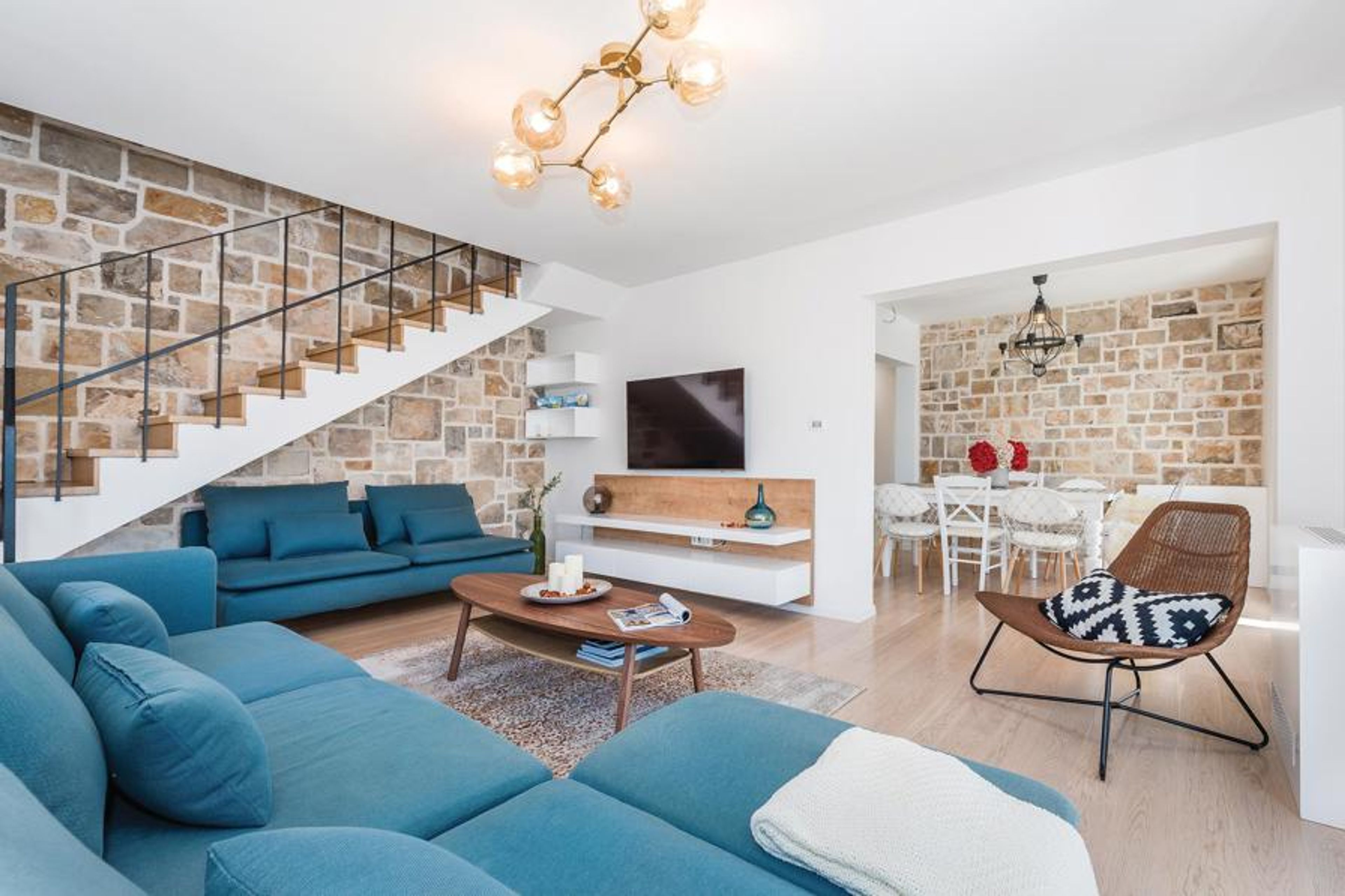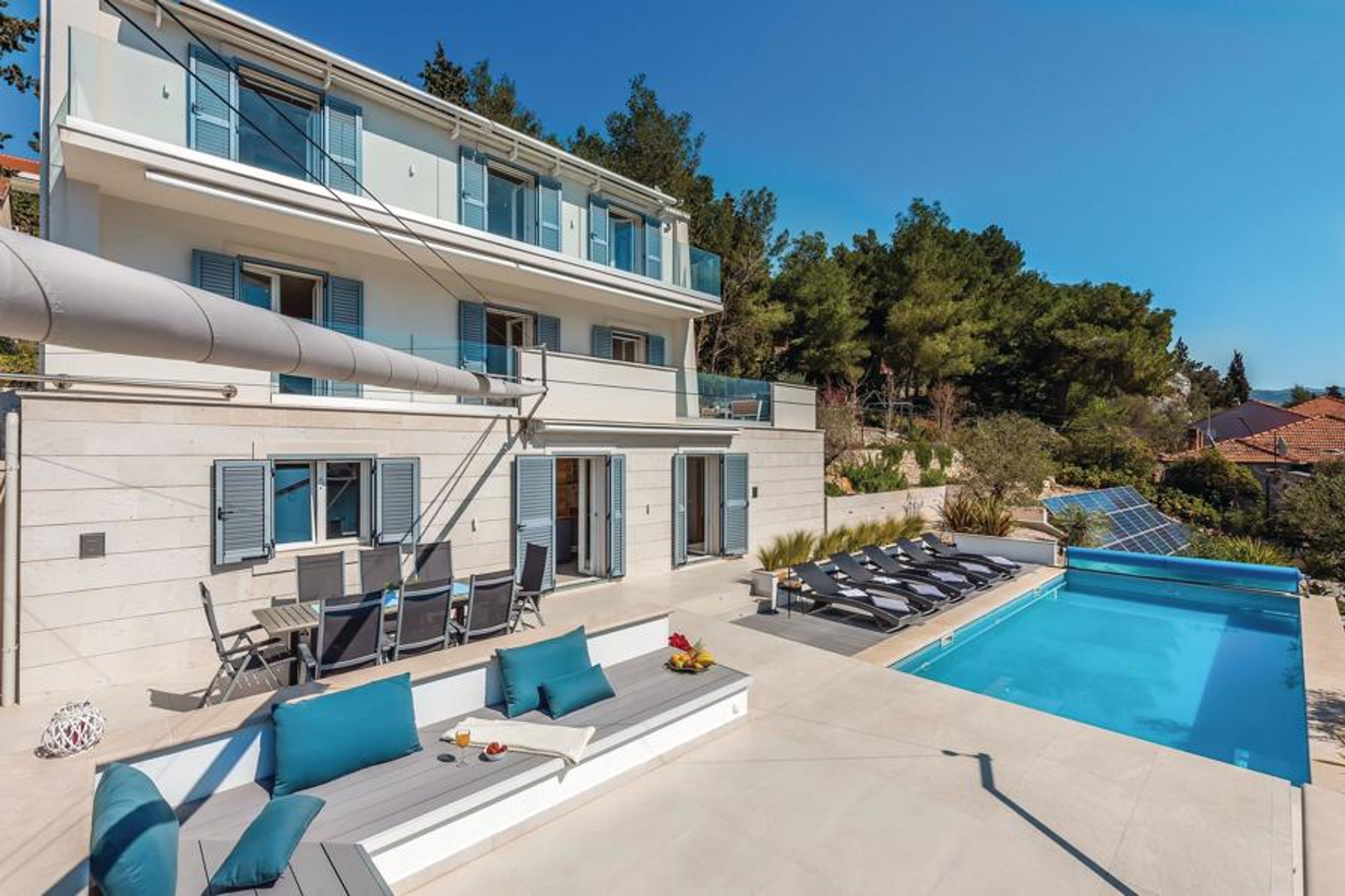 This luxurious and tastefully furnished holiday home with pool is the perfect choice for an unforgettable holiday. It is located on the island of Bra in the village of Milna, whose old town in baroque-urban style charms with a natural harbour. Enjoy the breathtaking view of the sea from one of the terraces. On the ground floor there is a kitchen, sauna and bathroom. The first floor is accessed from the outside, where you will find a spacious kitchen with living room, bedroom and bathroom. Each bathroom has underfloor heating. Internal stairs connect the first and second floors. The outdoor area is adorned with Mediterranean plants and small rock gardens. On the fenced plot next to the pool there is also a covered terrace with a summer kitchen, where there is a barbecue, fridge for drinks and a table and chairs for pleasant summer evenings. In Milna there are many leisure activities and restaurants with deliciously prepared fish specialities. Go on excursions to Split, Hvar, Korula, Mljet and Dubrovnik by catamaran.