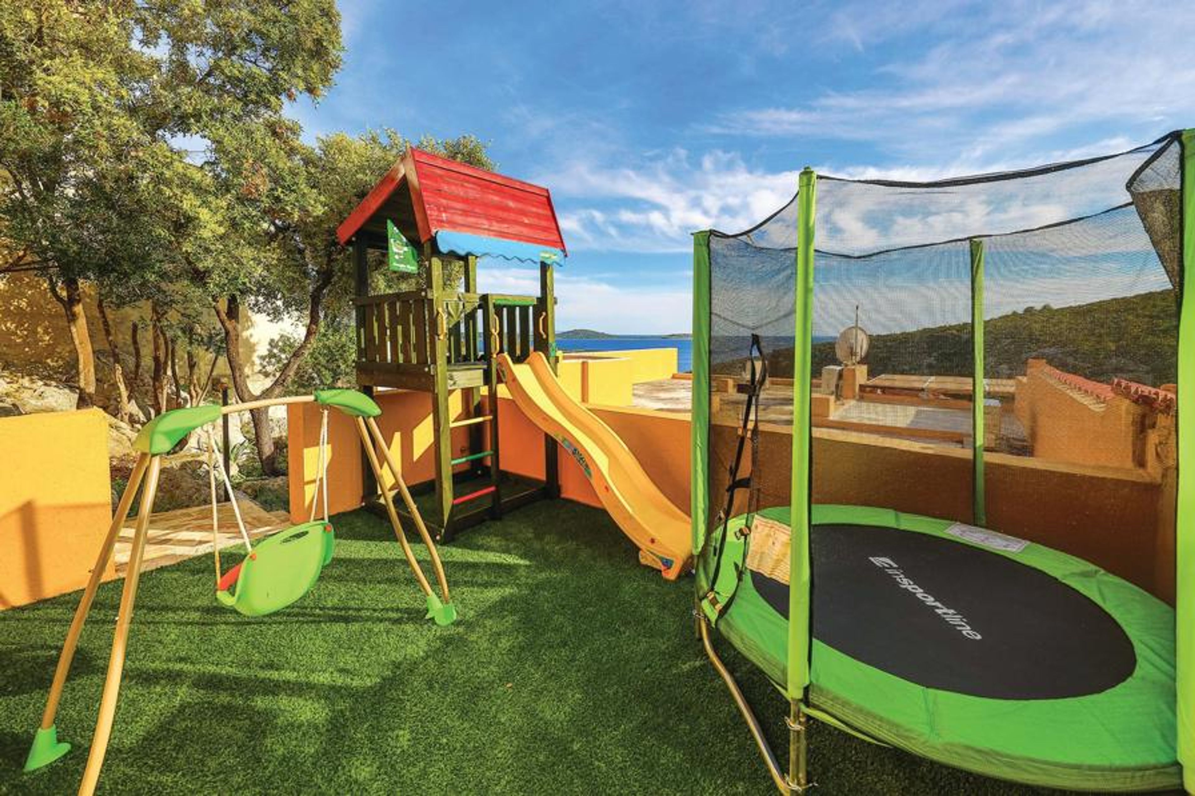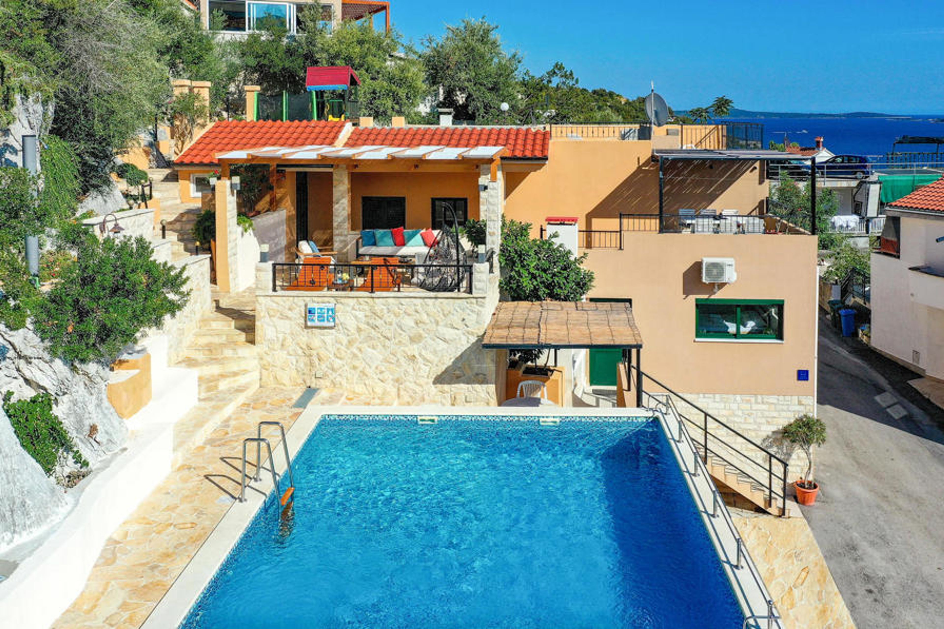 This beautiful and stylish holiday home consists of two apartments, each with a terrace overlooking the sea and the town of Ljubljeva. The house is ideal for two families or a group of friends spending their holiday together. One apartment consists of four bedrooms, two bathrooms, two living rooms and a kitchen. There is also a summer kitchen in front of this apartment. The other is furnished with one bedroom, a kitchen with living room and a bathroom. Relax and refresh yourself in the heated outdoor swimming pool with a marvellous panoramic view of the blue Adriatic Sea.