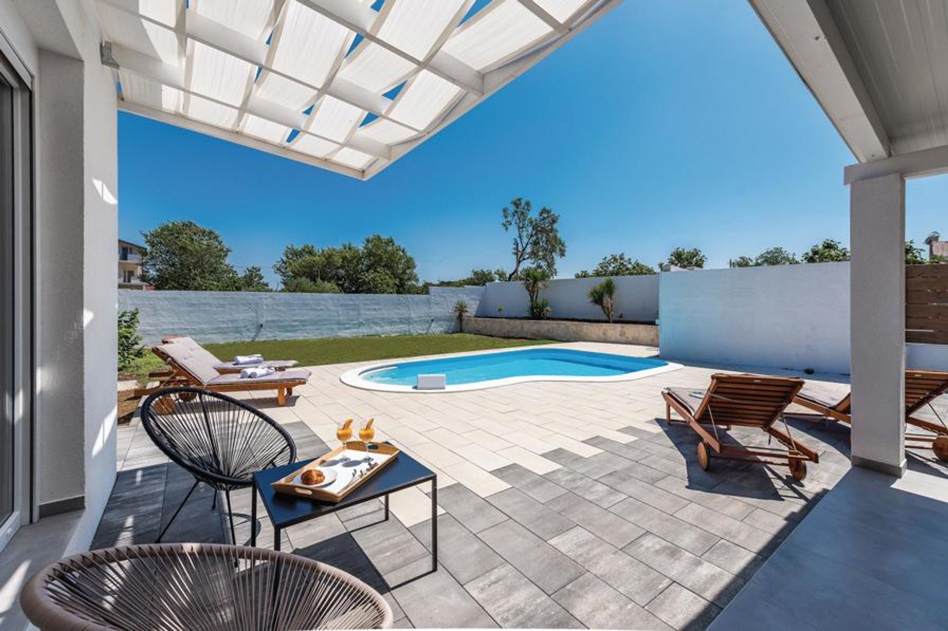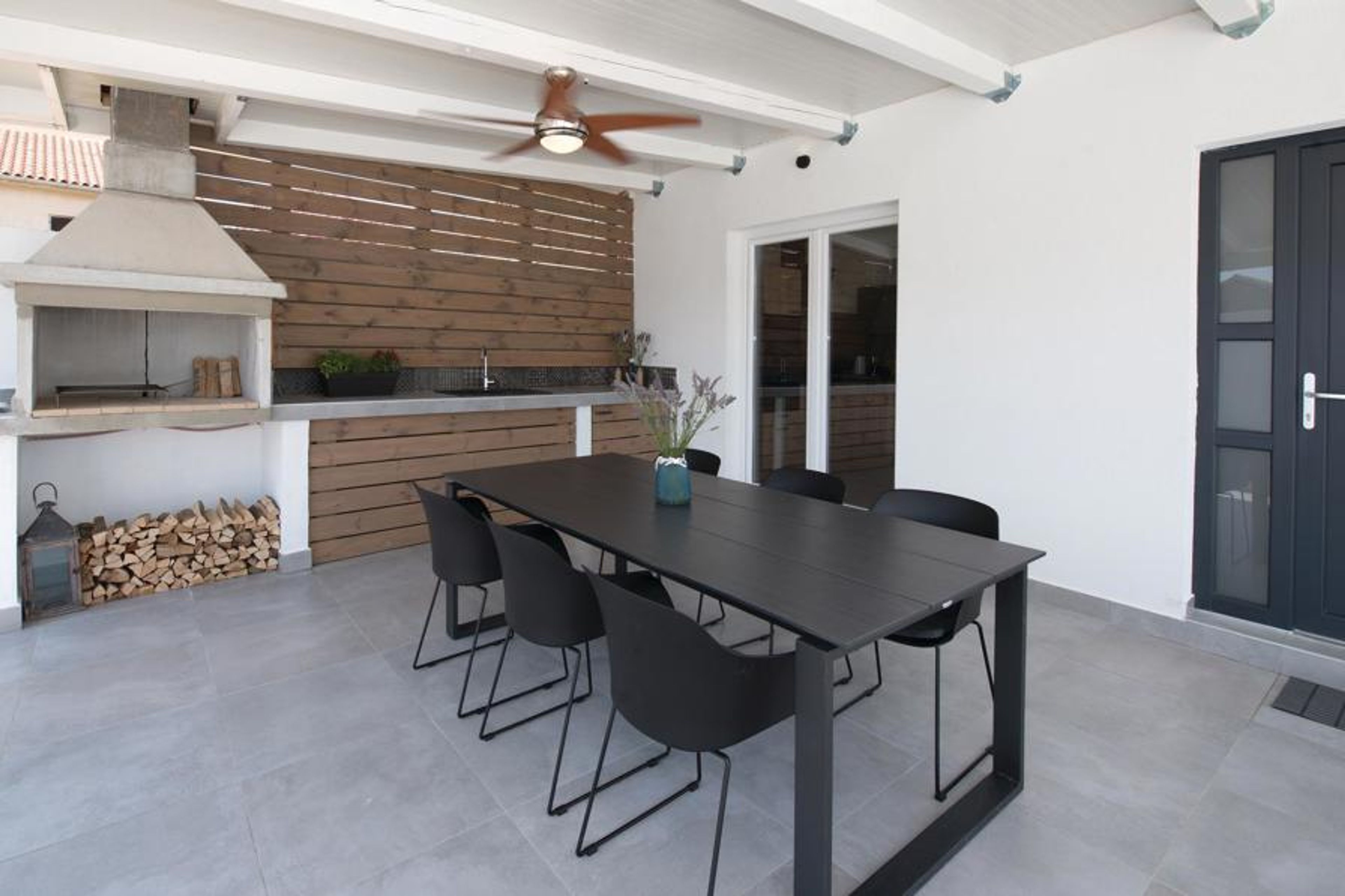 This modern and tastefully furnished vacation home is located in the village of Betina on the beautiful island of Murter, which is connected to the mainland by a bridge in Tisno and thus easily accessible. The cozy vacation home is perfect for a quiet family vacation or a joint vacation of two couples. You will have at your disposal an outdoor pool and a spacious terrace with sun loungers. There is also a covered terrace with a barbecue and garden furniture. Active vacationers should undoubtedly make a trip to the National Park Kornati Islands. Also be sure to visit the historic cities of Sibenik and Zadar.