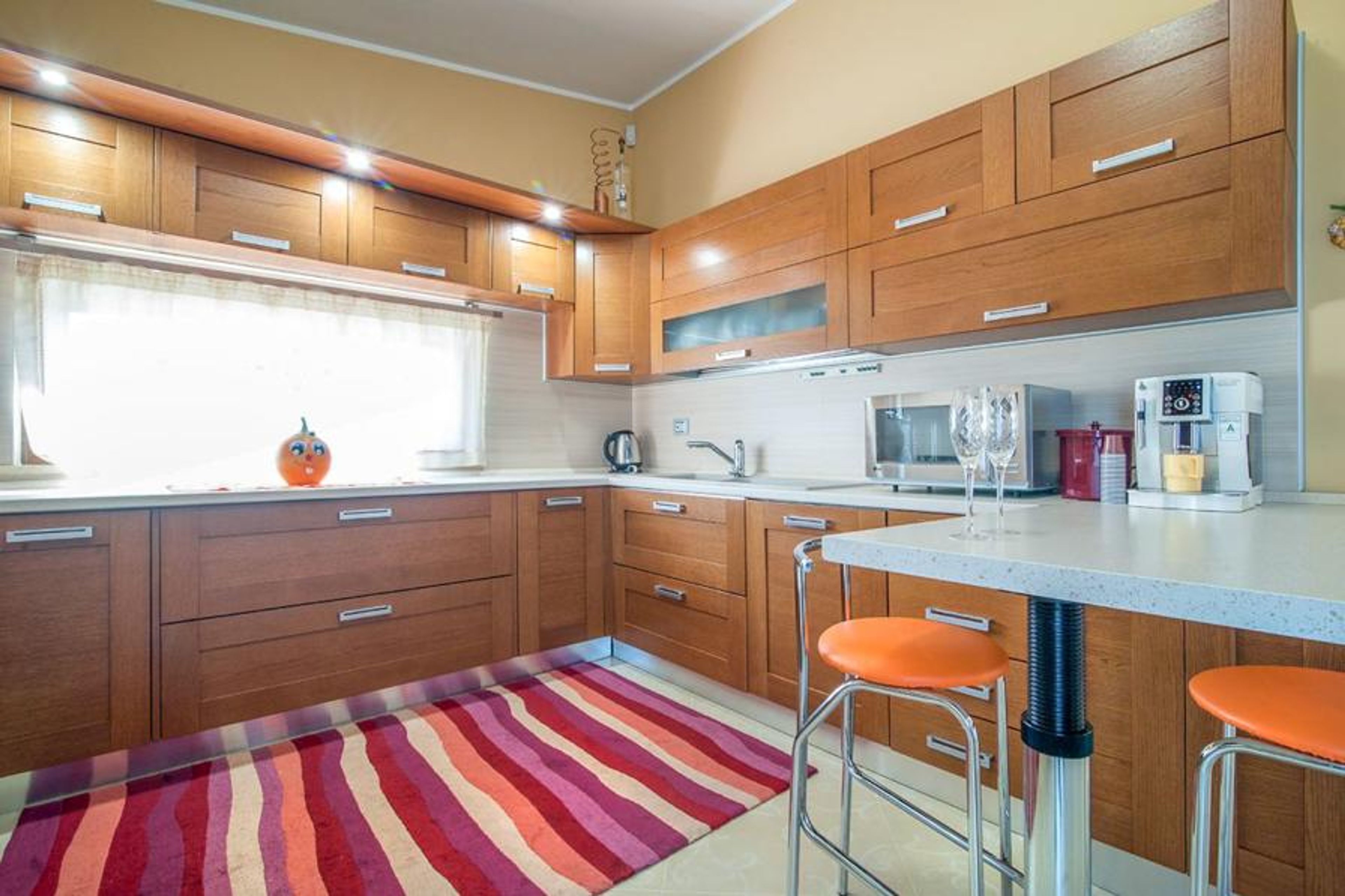 Inside, the villa blends rustic charm with home-like comfort. The open-plan living and dining area, framed by French windows, fosters a seamless indoor-outdoor flow. Traditional furnishings, exposed stone walls, and warm hues add character, while a well-equipped kitchen makes self-catering effortless.