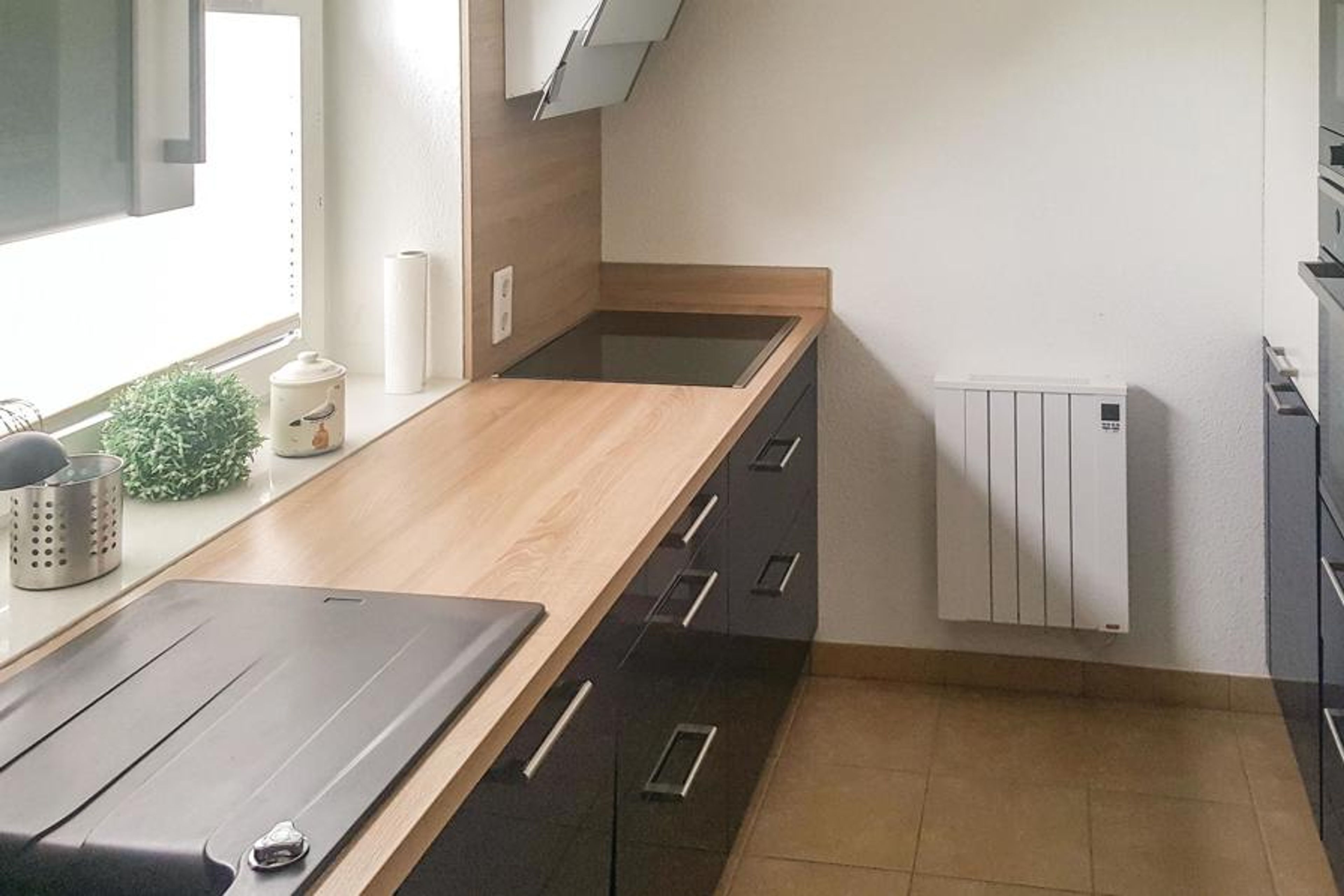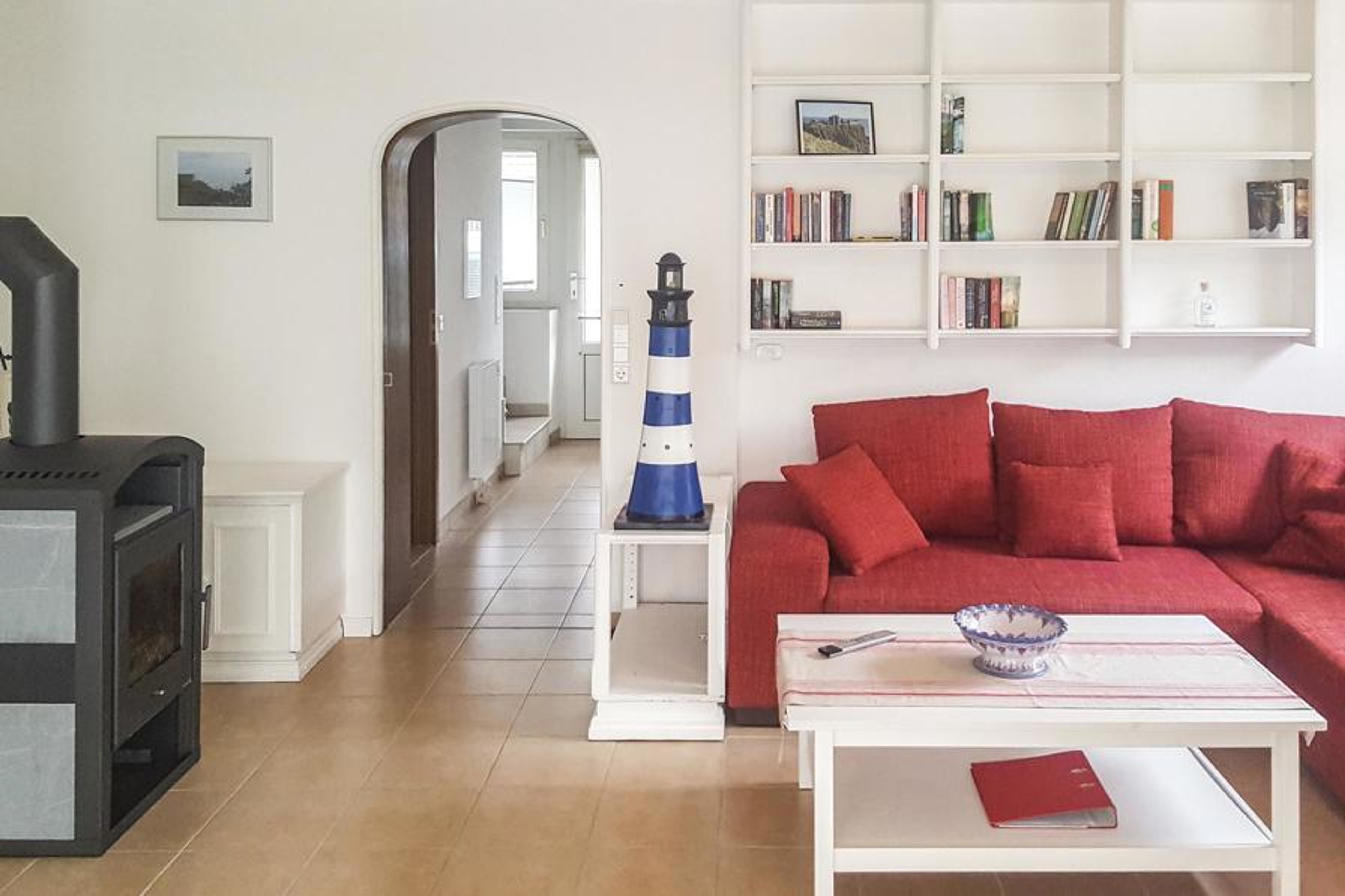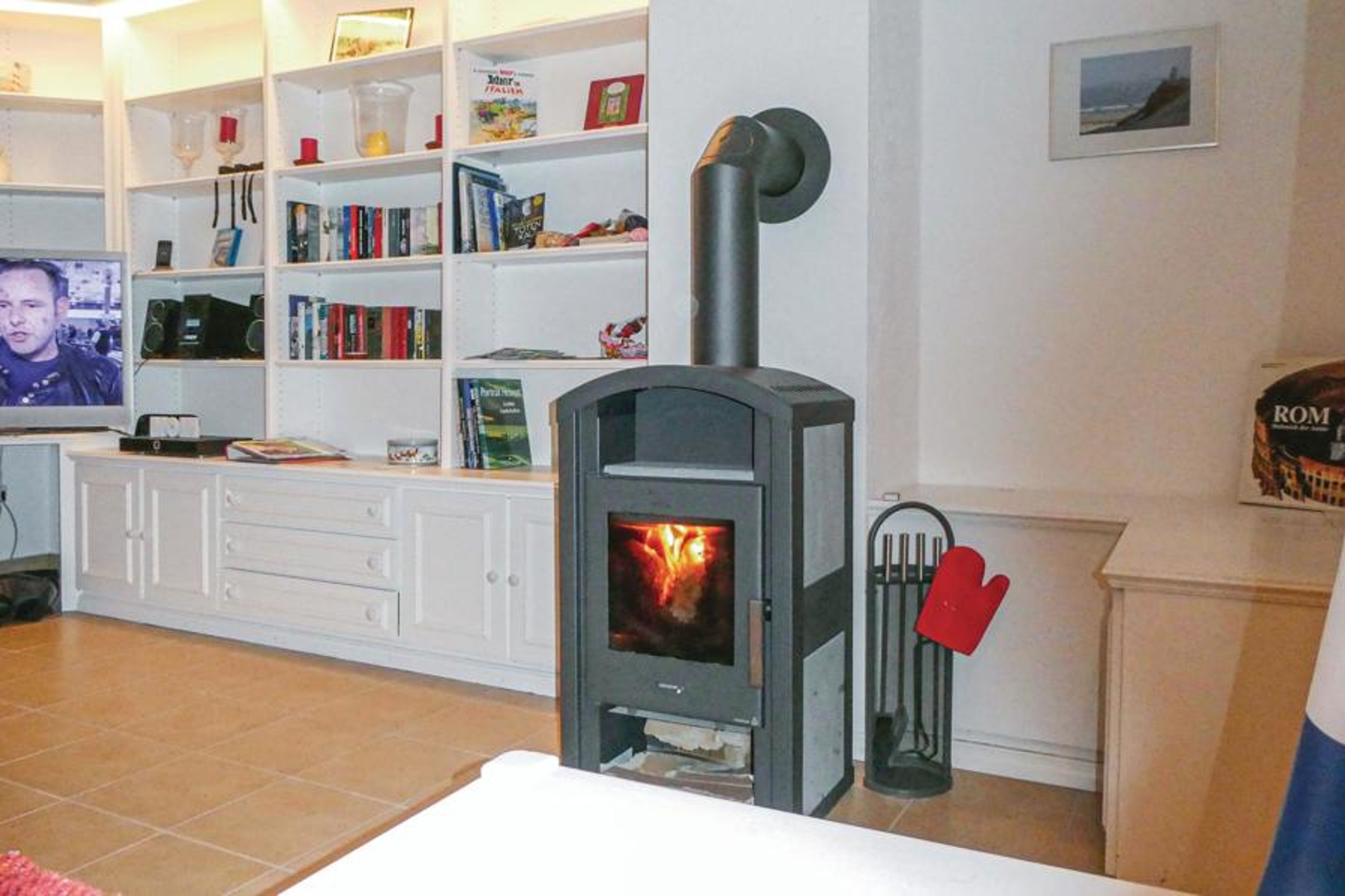 The holiday home has two separate bedrooms. In the spacious living room you can end the day with the whole family and make yourself comfortable in front of the wood-burning stove. There is also a Wii games console.