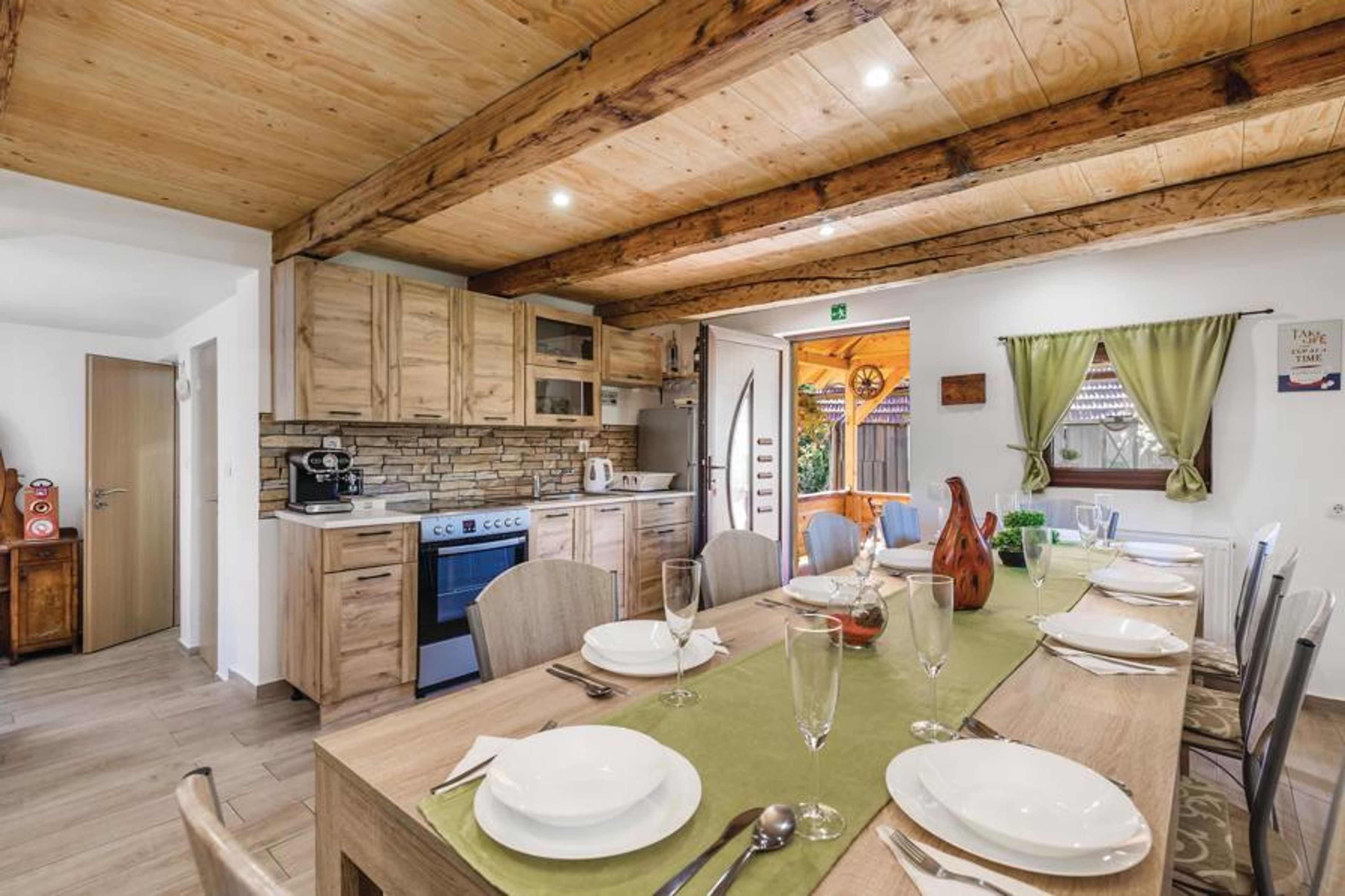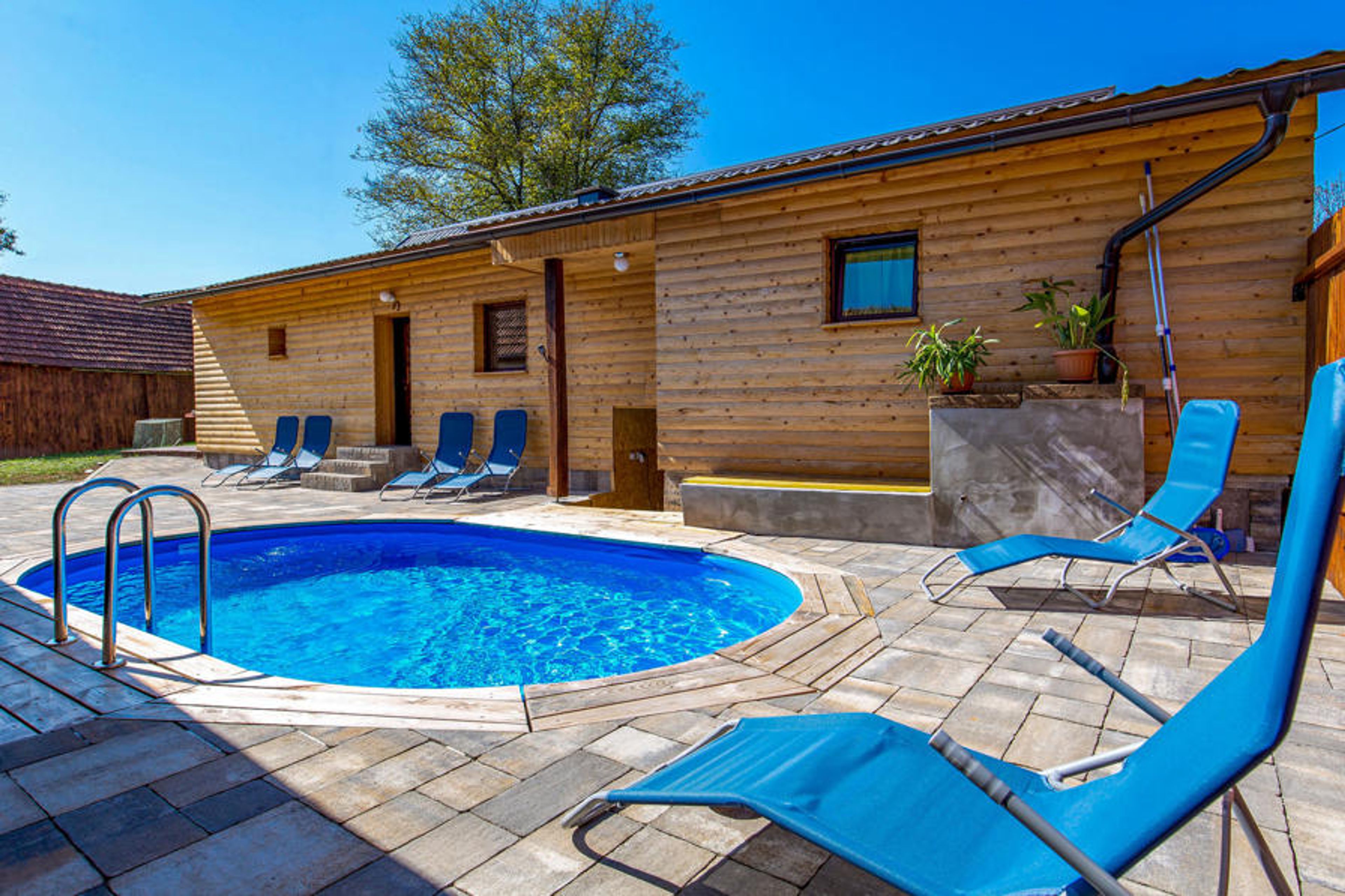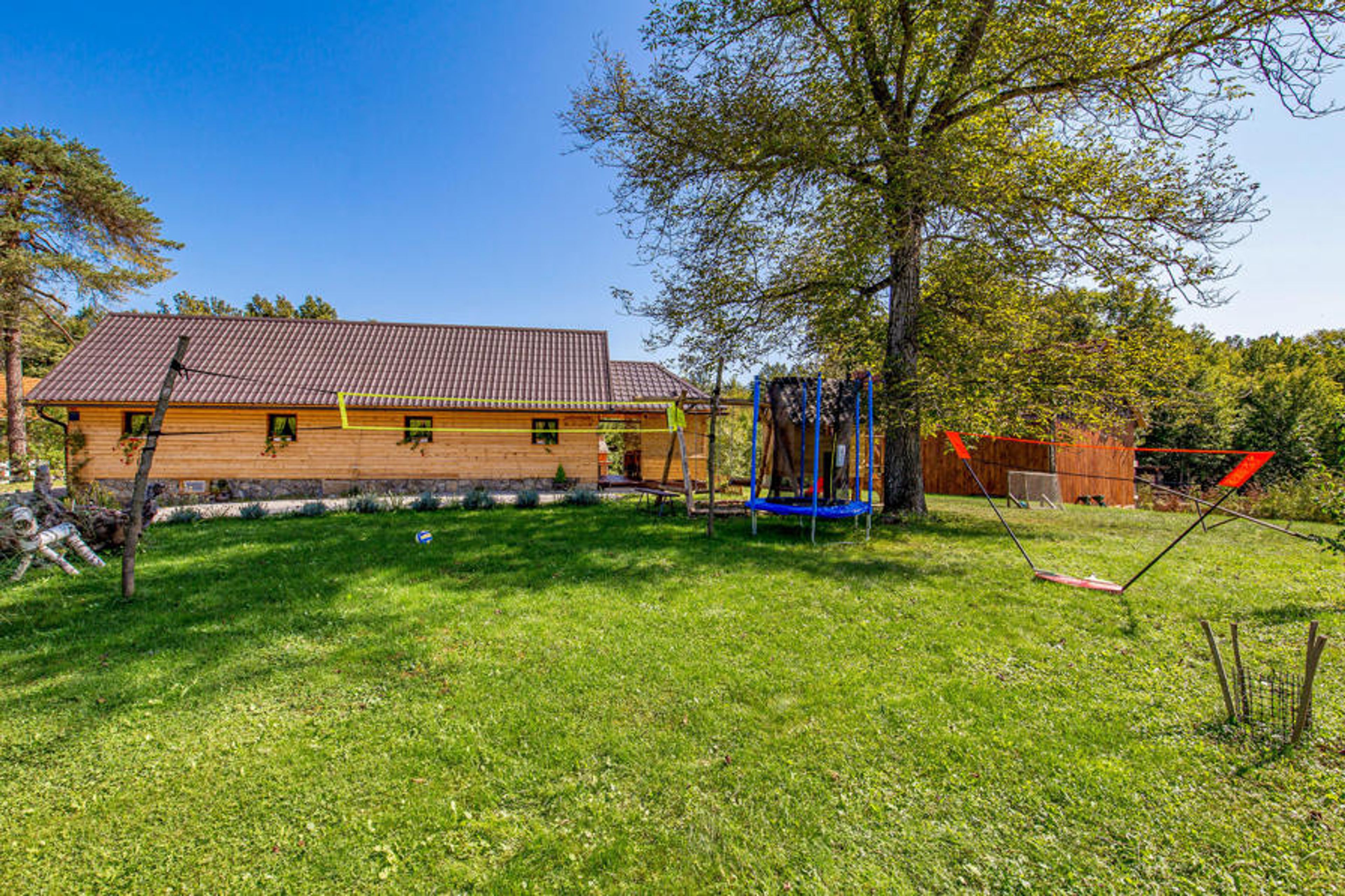 Spend your vacation in this pretty wooden country house in a beautiful landscape. Here you can spend both a relaxing and active vacation. Fun and refreshment await our guests in the swimming pool and in the shade of the forest you can rest and read a book. Take a trip to the town of Ogulin on the Klek and try rafting. The famous Plitvice lakes are also not far away as well as the beautiful waterfalls in Rastoke. The house is equipped so that you will not lack anything for a relaxing vacation. The cottage is accessible via a 300 m long unpaved road.