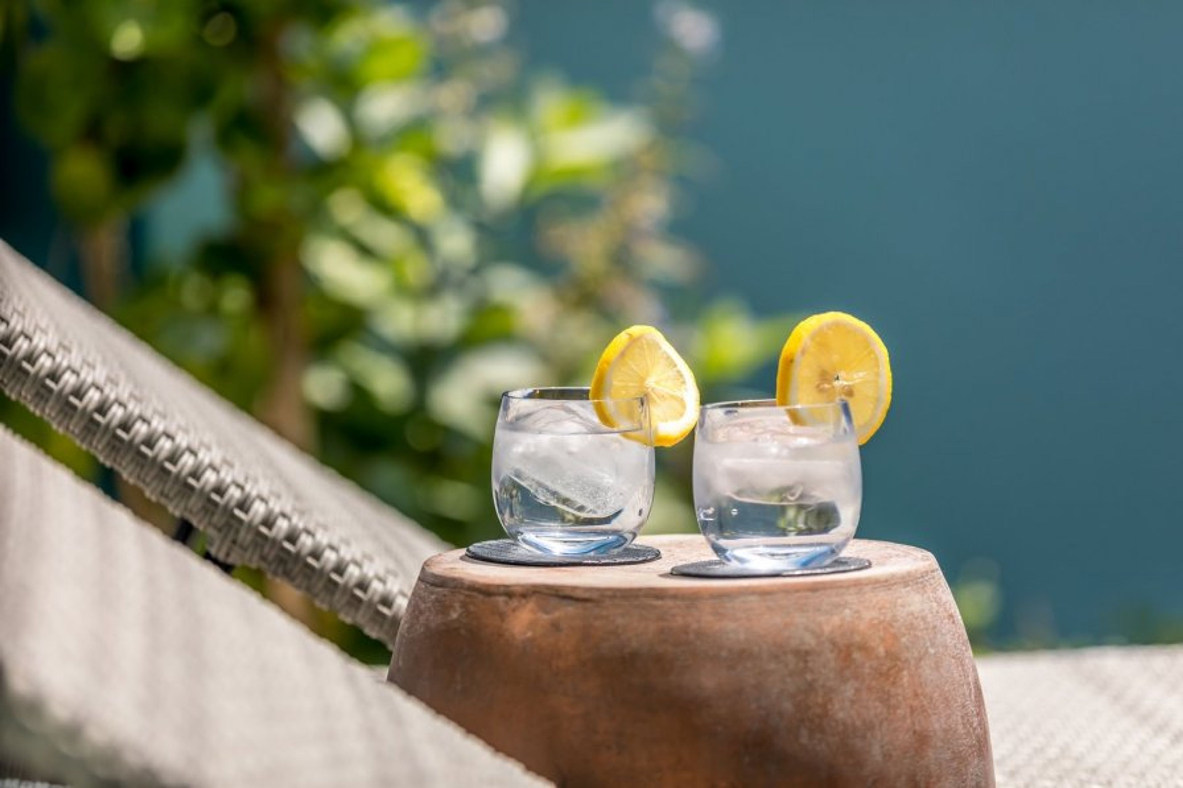 There is a wine fridge with a selection of reasonably priced wines. Complimentary teas, ground and instant coffee and unlimited water is available. A large selection of fruit is made available and fresh oranges and lemons are supplied at arrival time for morning juicing.